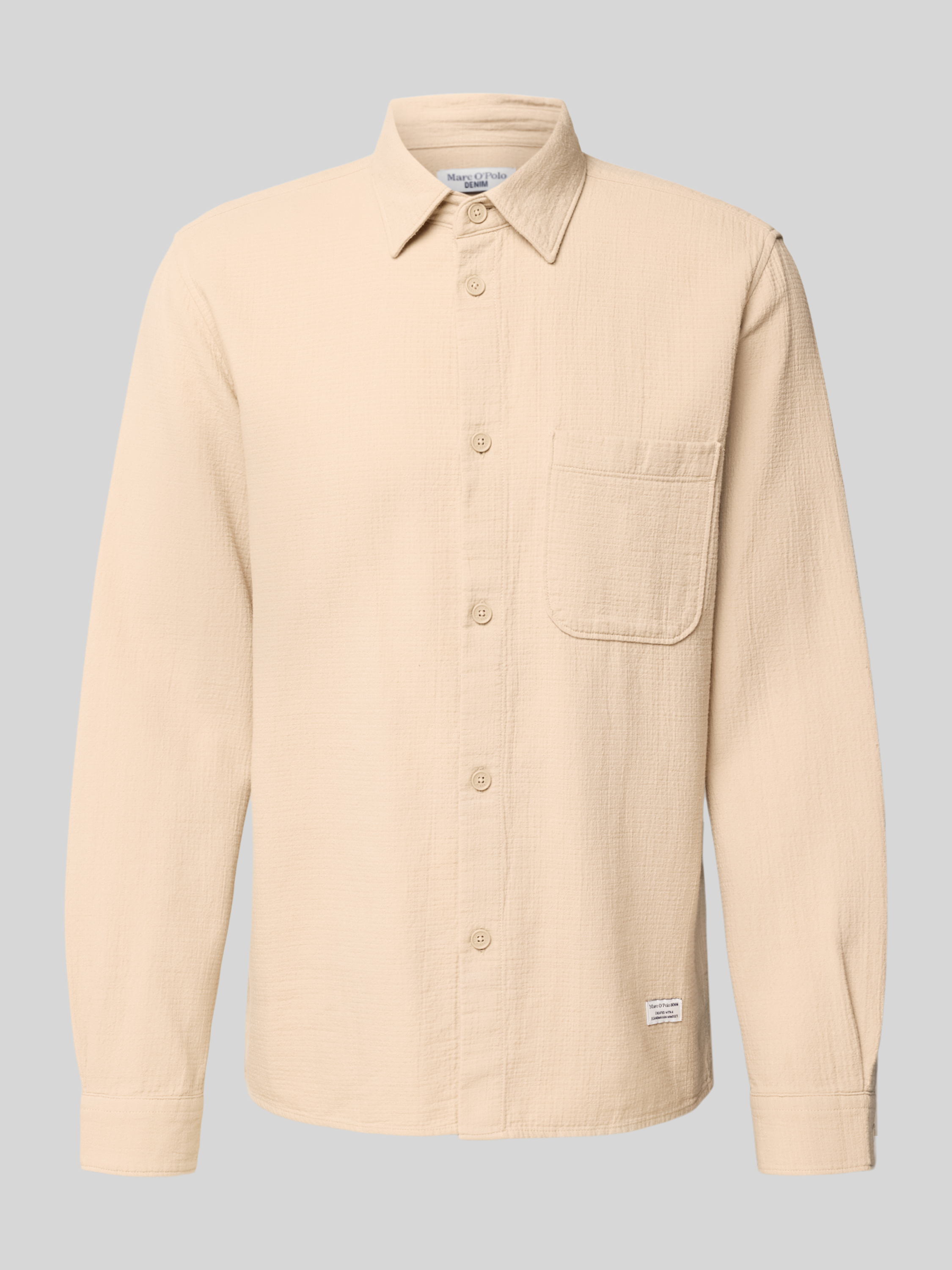 Das Herrenhemd von Marc O’Polo Denim zeigt sich in strukturierter, unifarbener Optik und kommt mit Kentkragen sowie klassischer Brusttasche. Durch den Regular Fit entsteht ein angenehmer Sitz, der Bewegungsfreiheit zulässt. Reine Baumwolle sorgt für ein komfortables Tragegefühl im Alltag.
