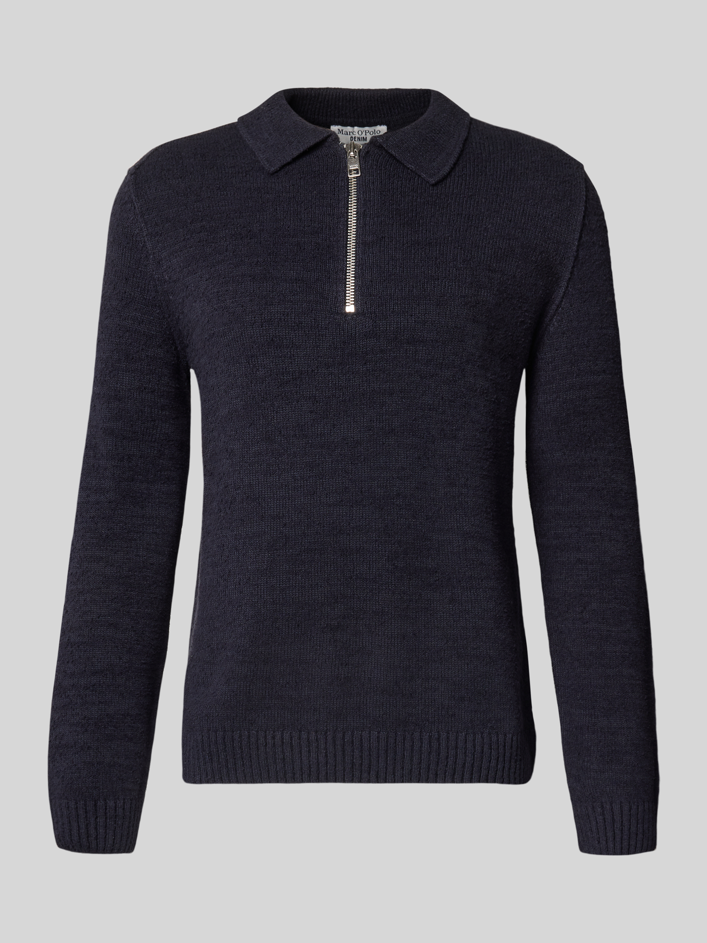 Marc O'Polo DenimRelaxed Fit Strickpullover im Polo-Stil aus Baumwoll-Mix in marine