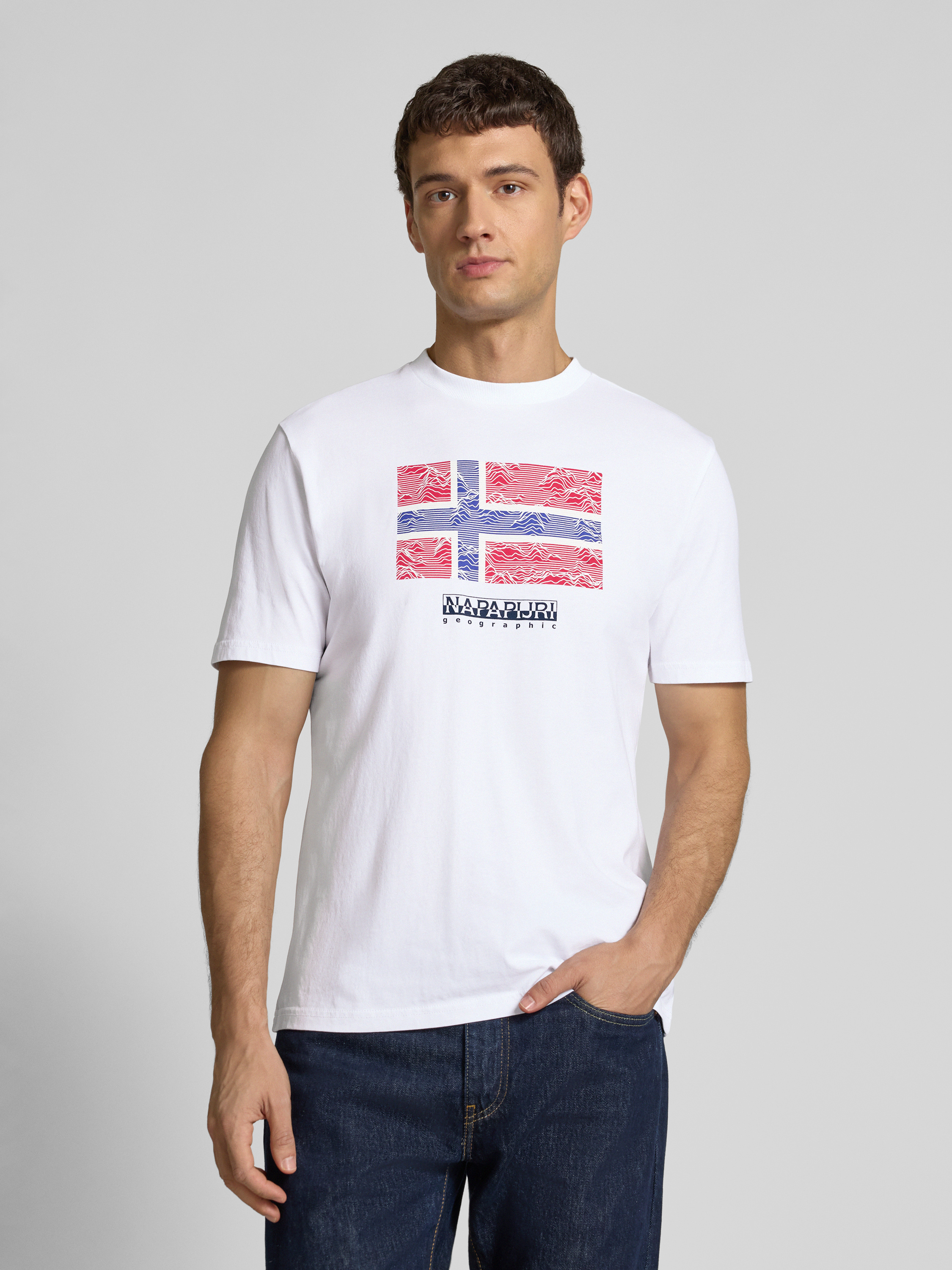 NapapijriT-Shirt mit Label-Print Modell 'DRAPEAU' in weiss