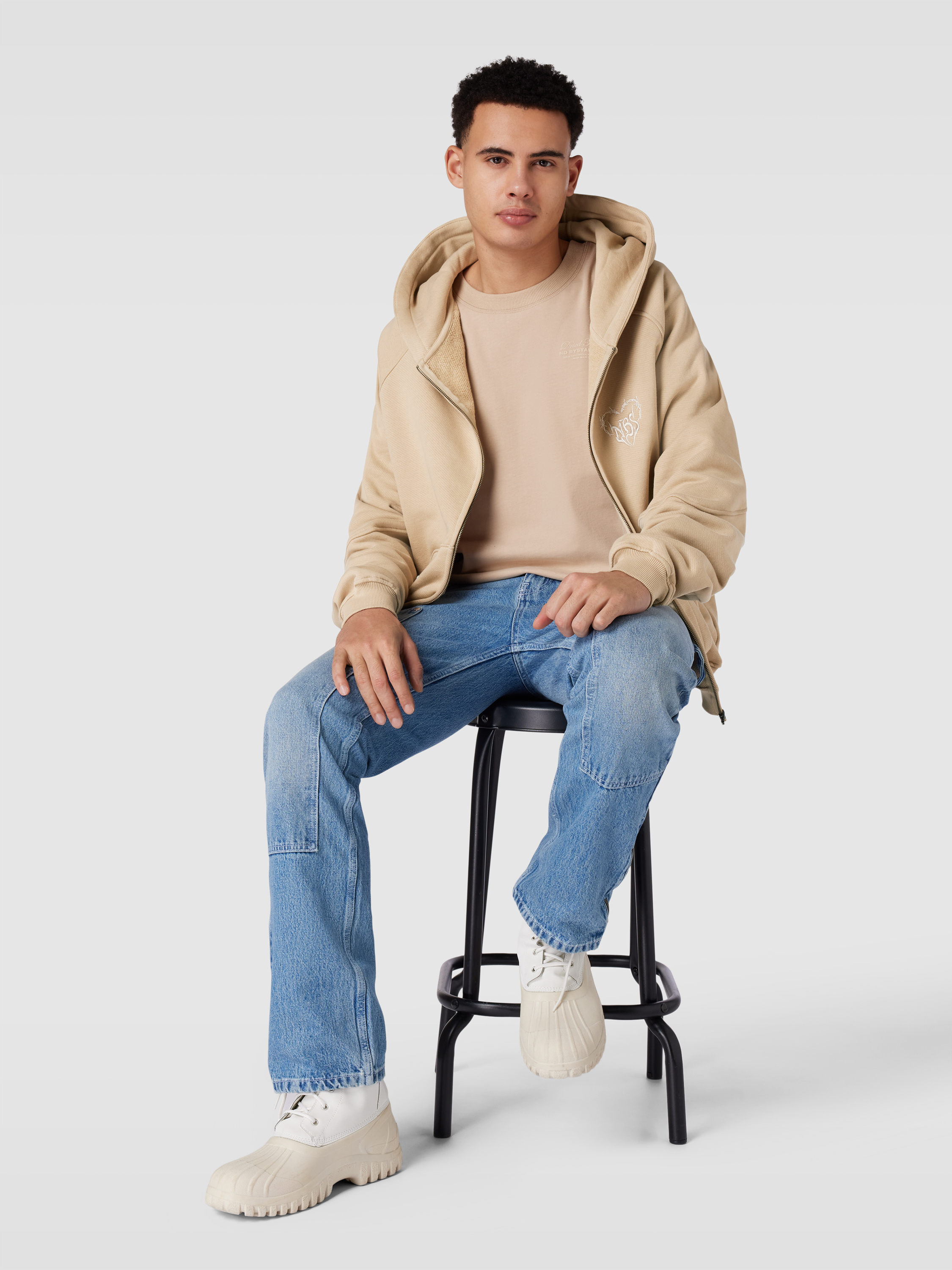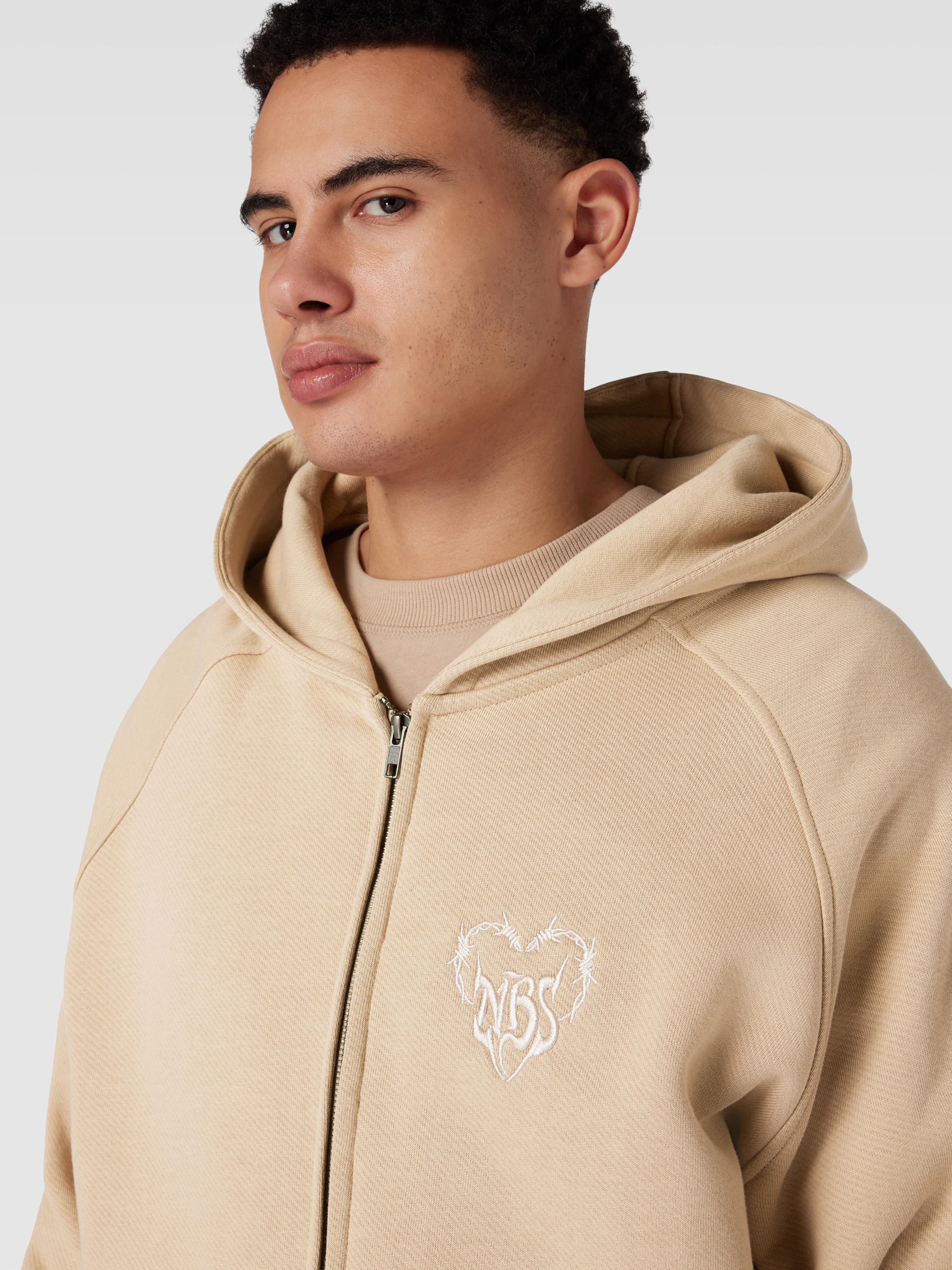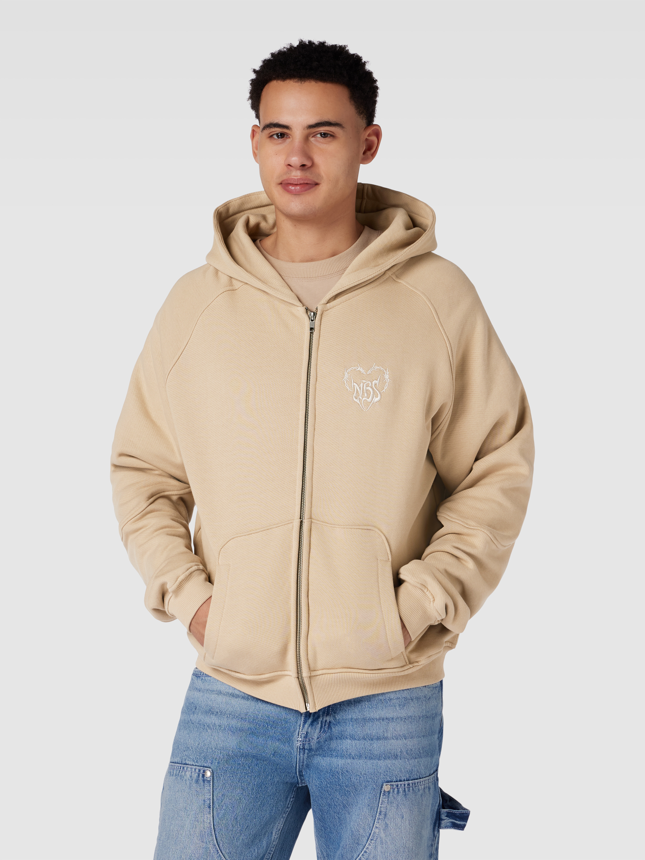 No BystandersHoodie mit durchgehendem Reißverschluss in camel
