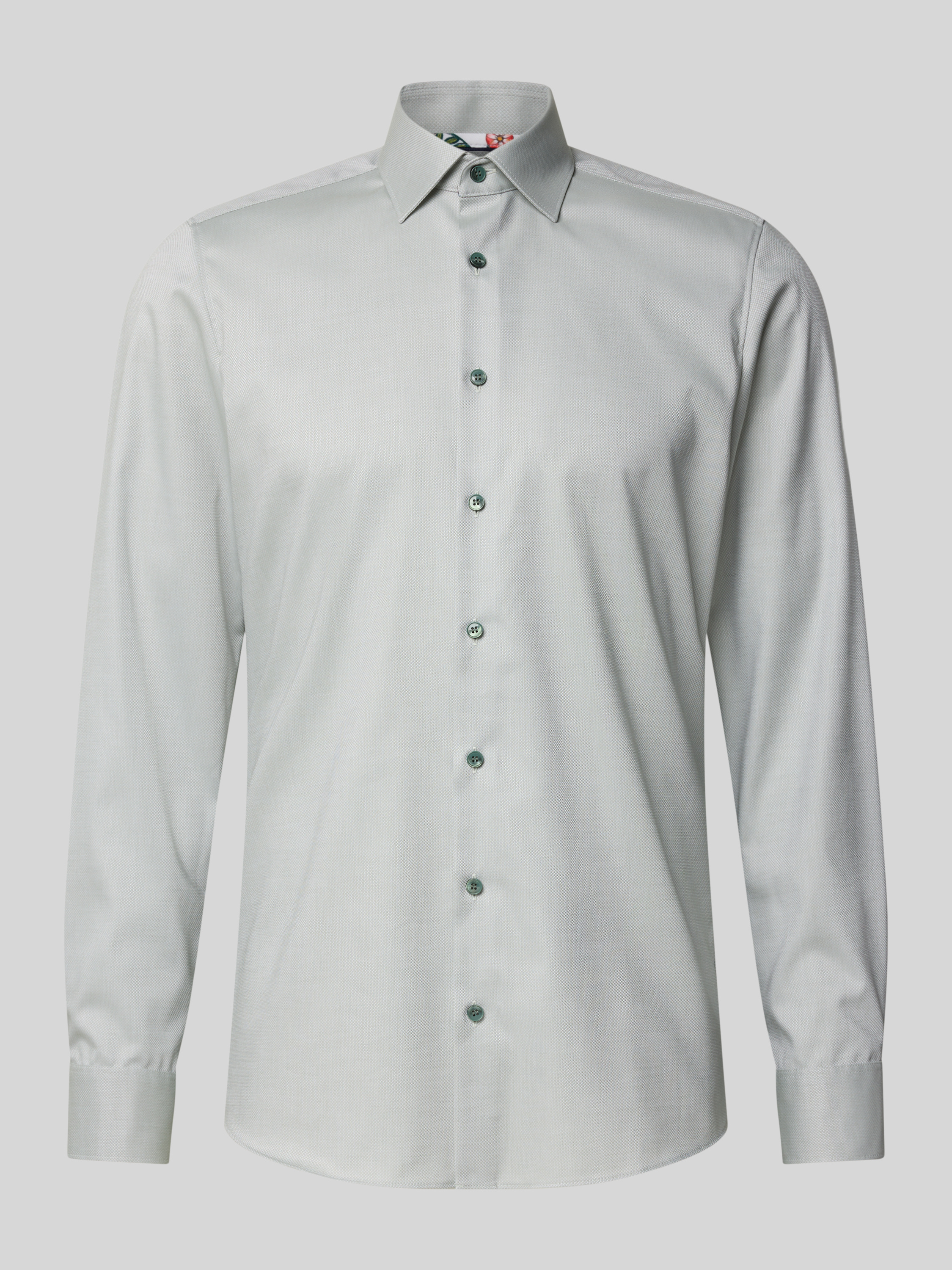 Das Herren Business-Hemd von OLYMP Level Five fällt durch seinen schmalen Schnitt auf, der eine moderne Silhouette unterstreicht. Dank des Baumwoll-Mix mit Stretch-Anteil bleibt Bewegungsfreiheit erhalten, während der Kentkragen einen klassischen Rahmen für formelle Looks schafft. Für den Büroalltag eignet sich dieses Slim Fit Business-Hemd mit Kentkragen ebenso wie für besondere Anlässe.
