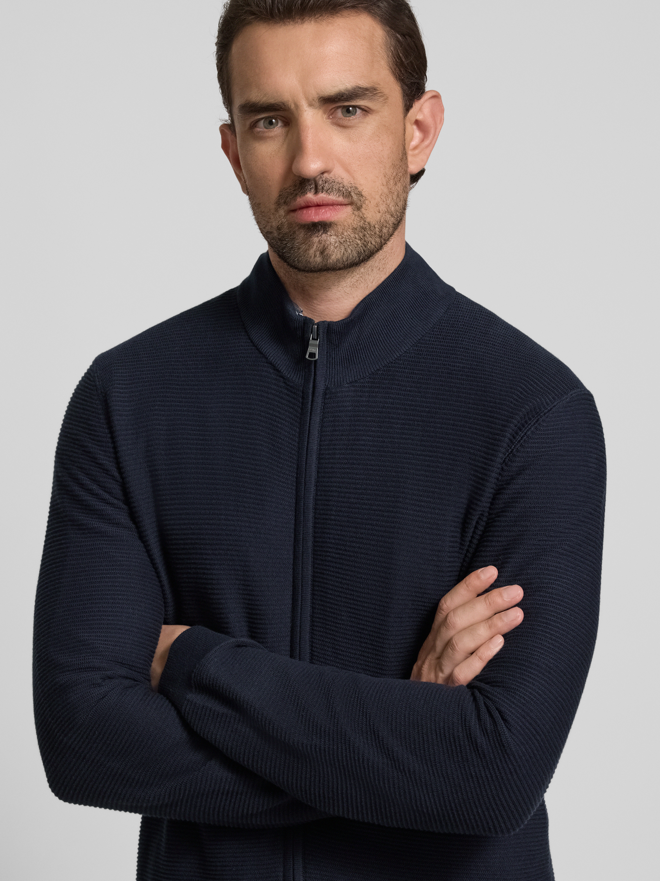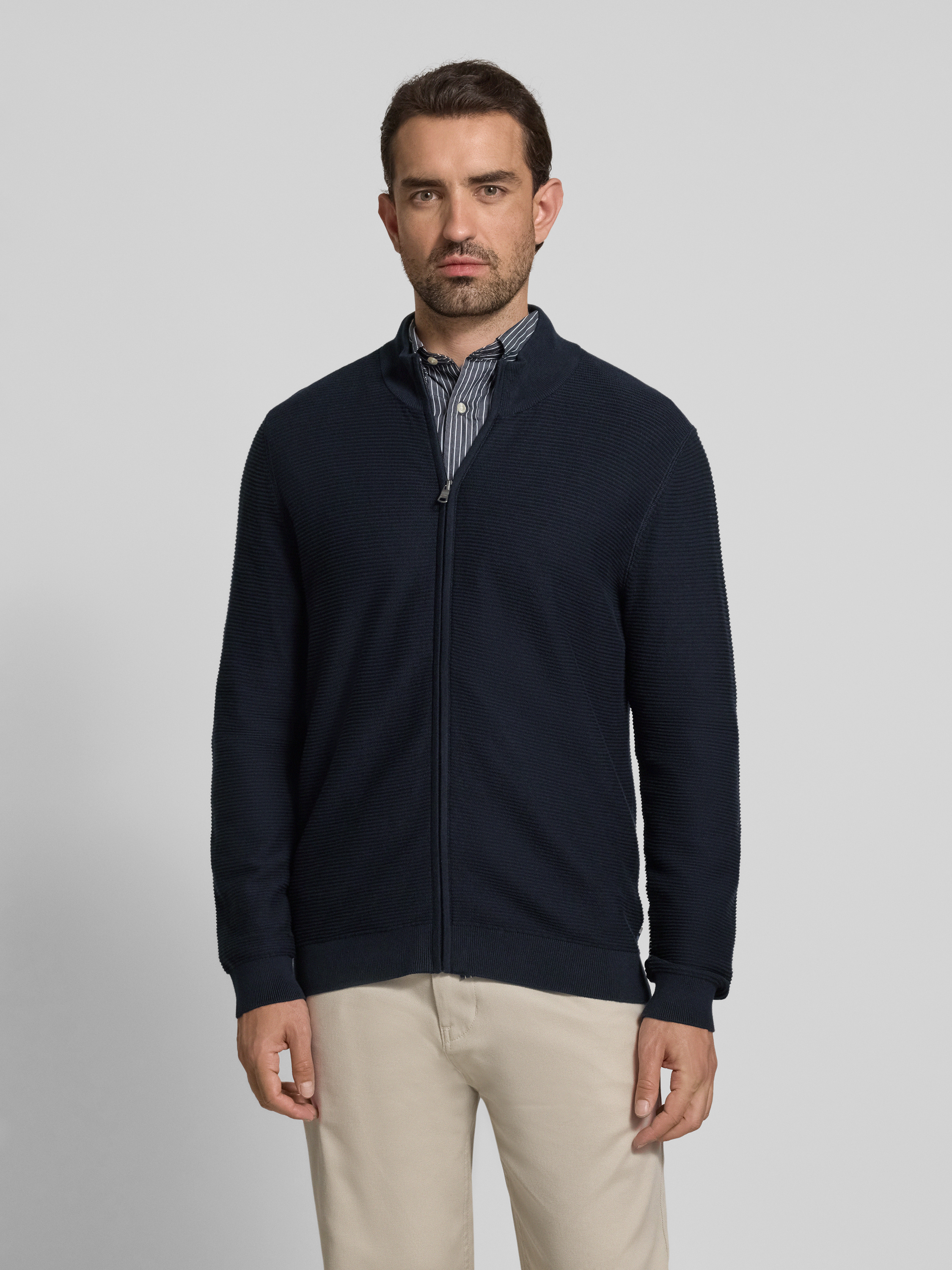 OLYMP Level FiveStrickjacke mit Strukturmuster in marine