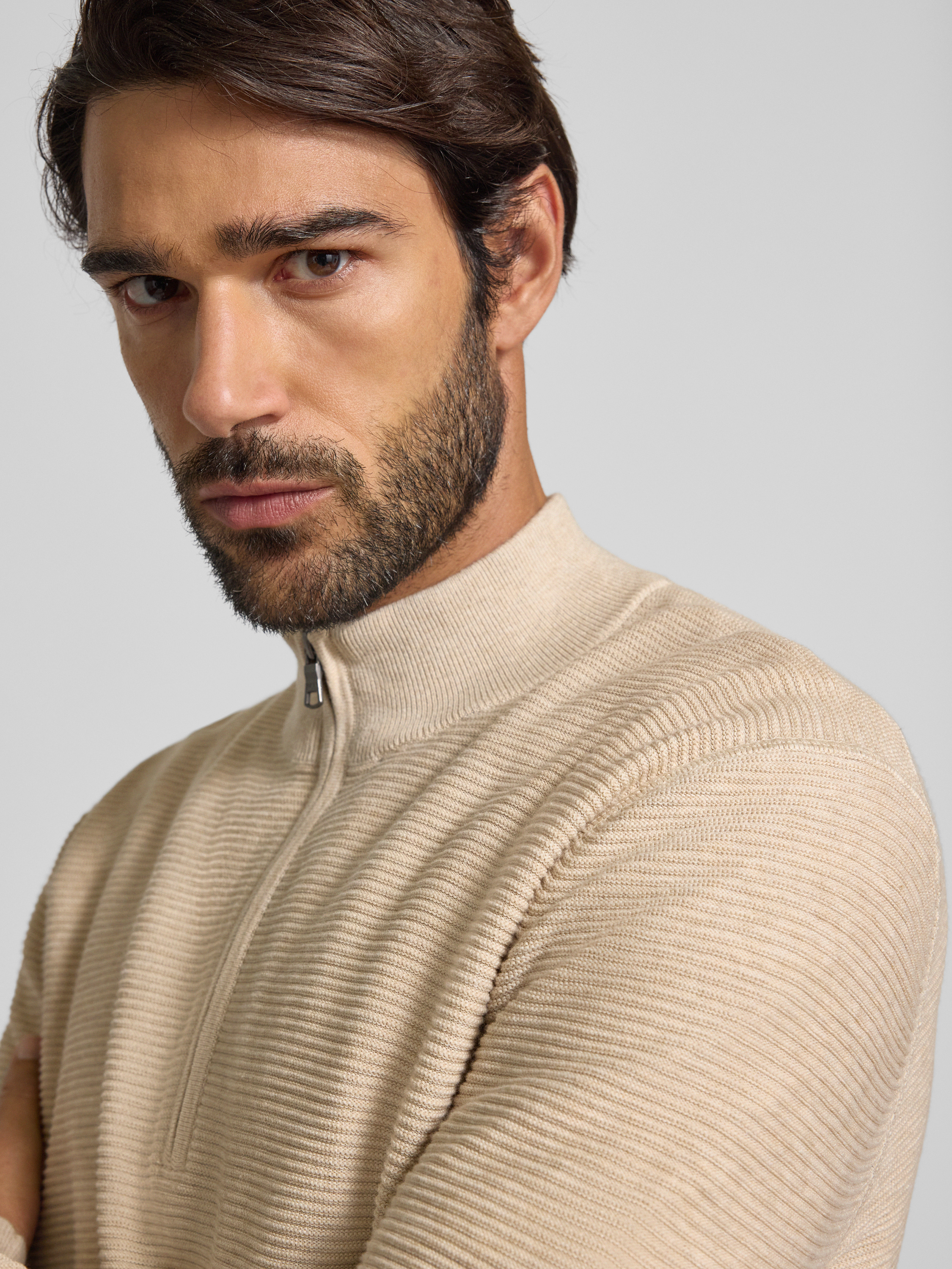 Der Herren Strickpullover von OLYMP Level Five aus reiner Baumwolle schmiegt sich angenehm an den Körper und sorgt für ein ausgewogenes Tragegefühl. Durch den markanten Troyer-Kragen entsteht ein dezenter Akzent, der den Alltag vielseitig begleitet. Dezente Details unterstreichen die schlichte, gepflegte Optik.