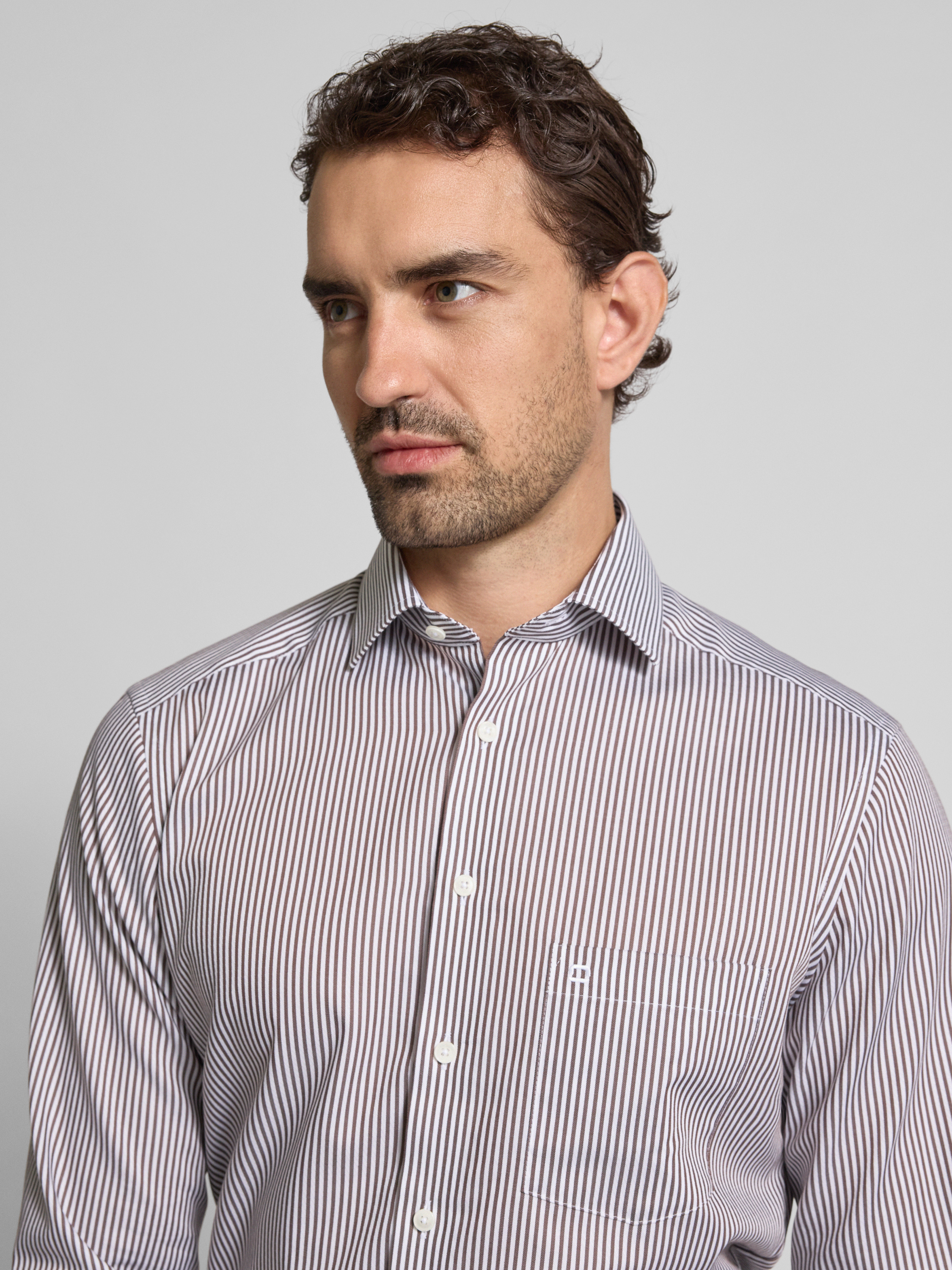 • OLYMP Modern Fit Business-Hemd mit Kentkragen Modell 'Global Kent' Mittelbraun