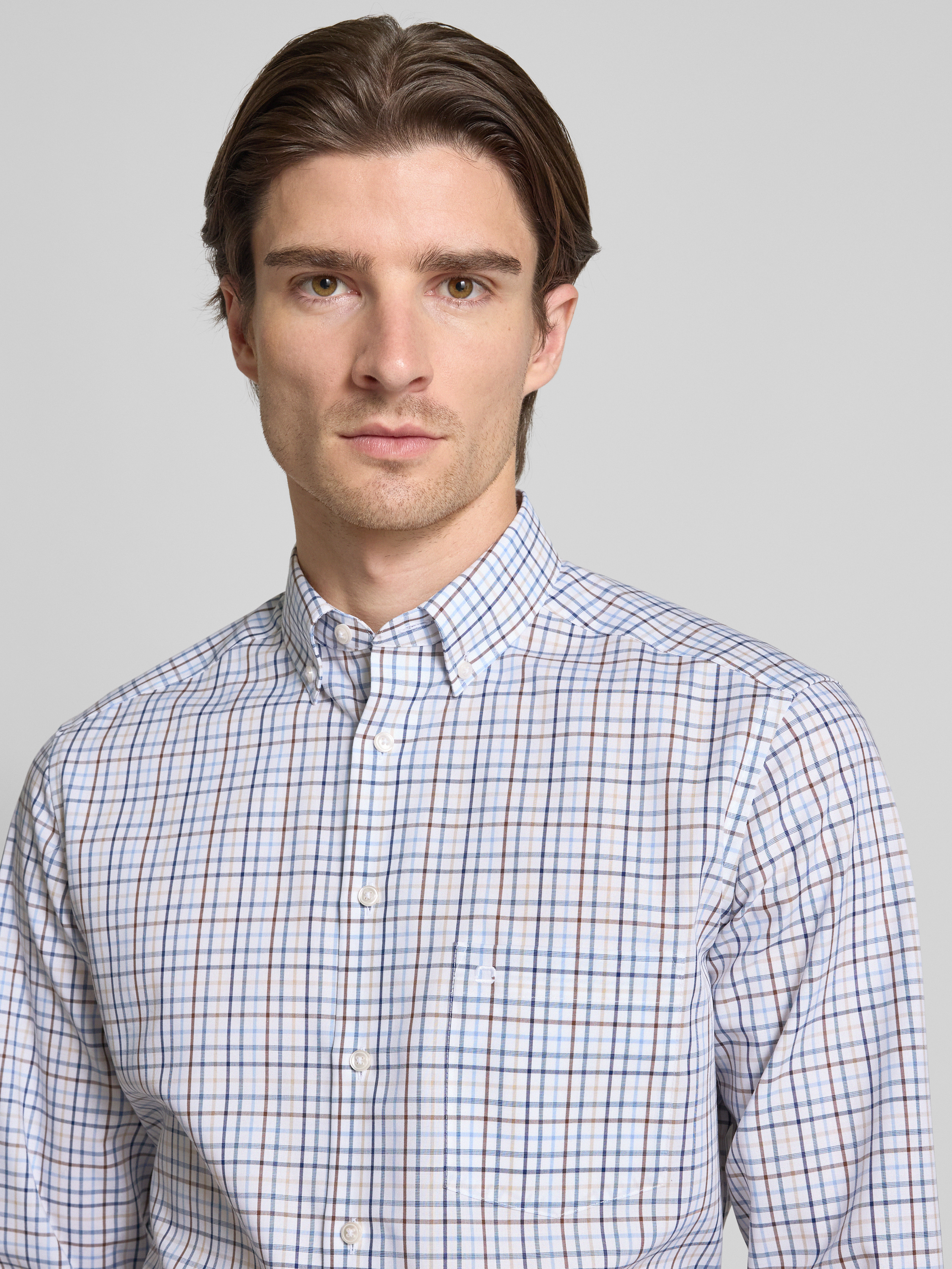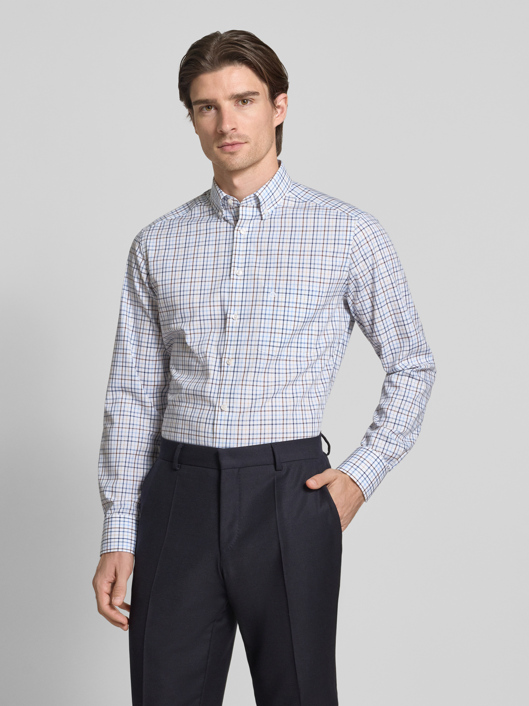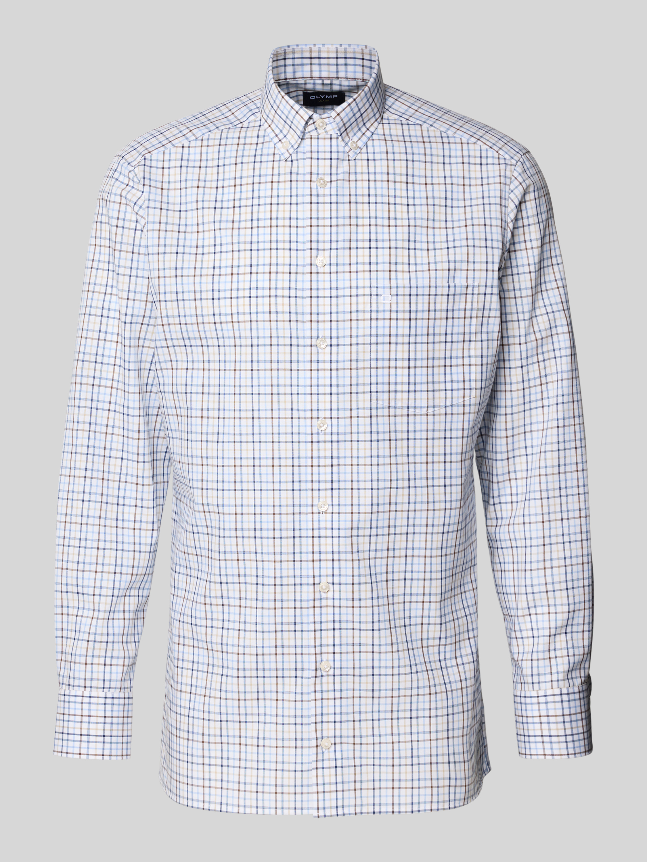OLYMPModern Fit Business-Hemd mit Knopfleiste in mittelbraun