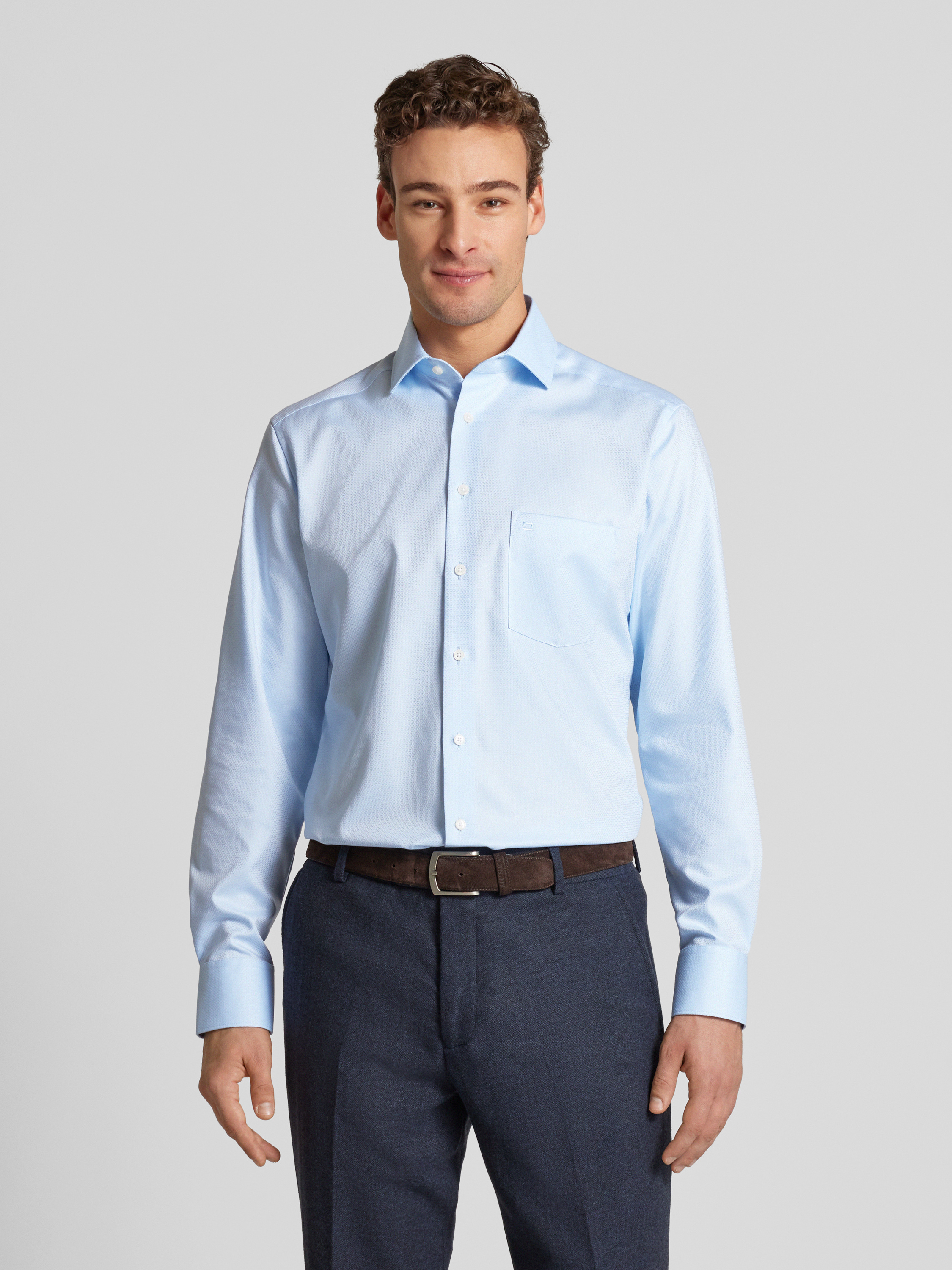 OLYMPRegular Fit Businesshemd mit Kentkragen in hellblau