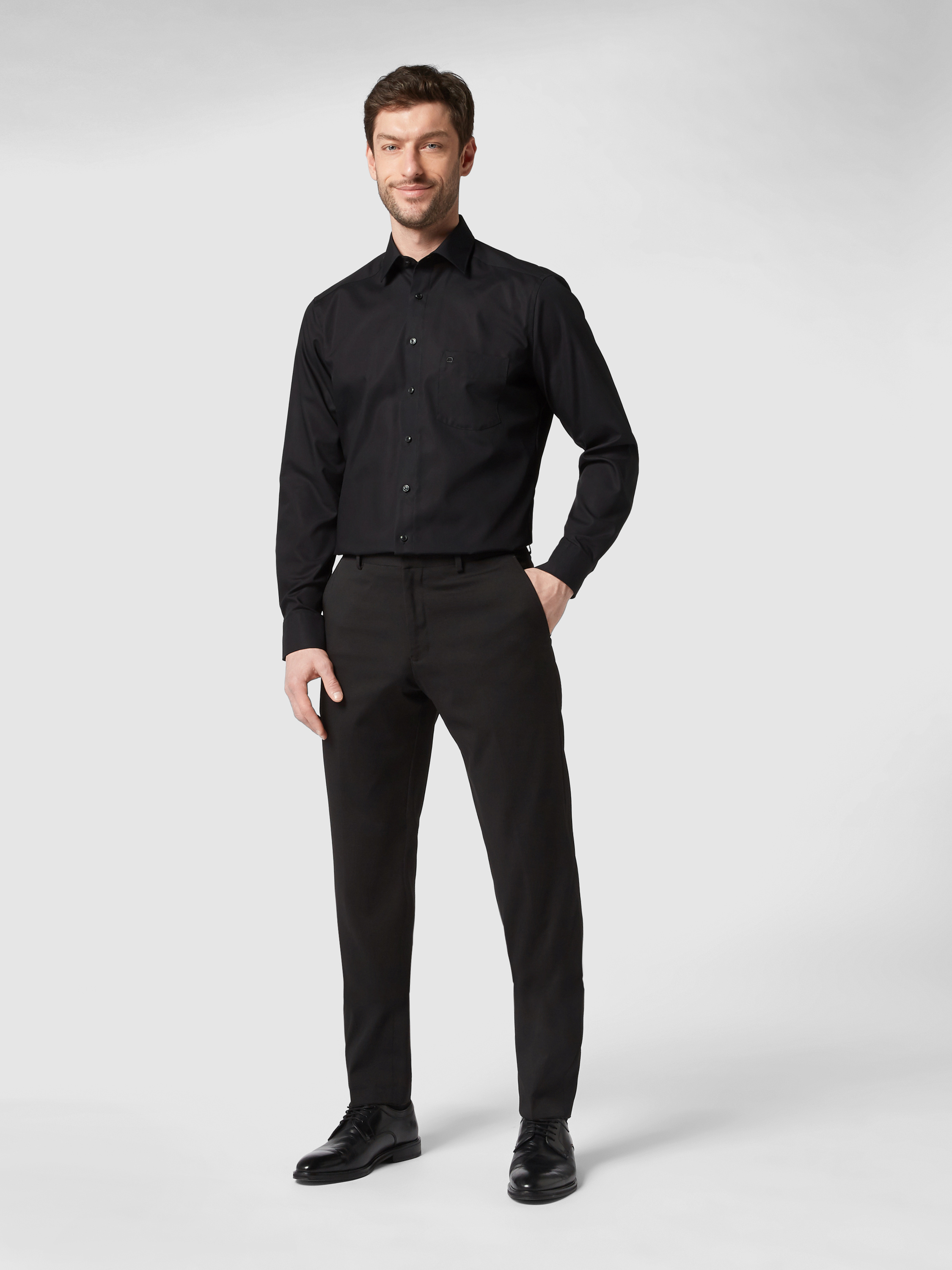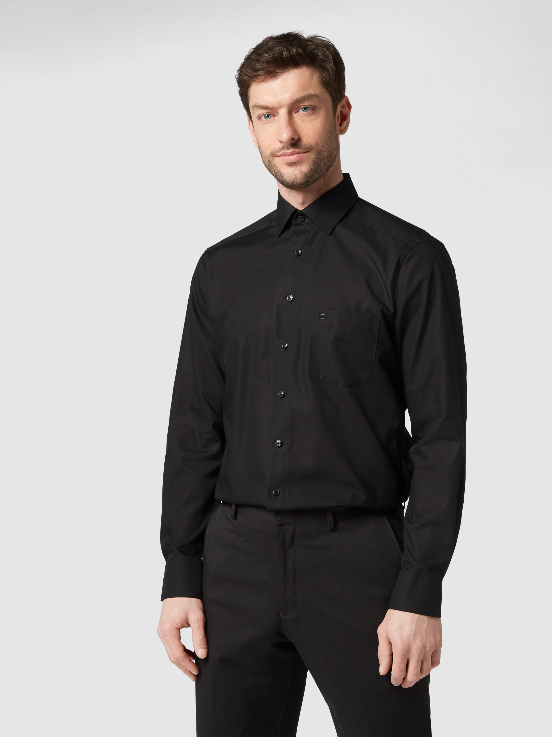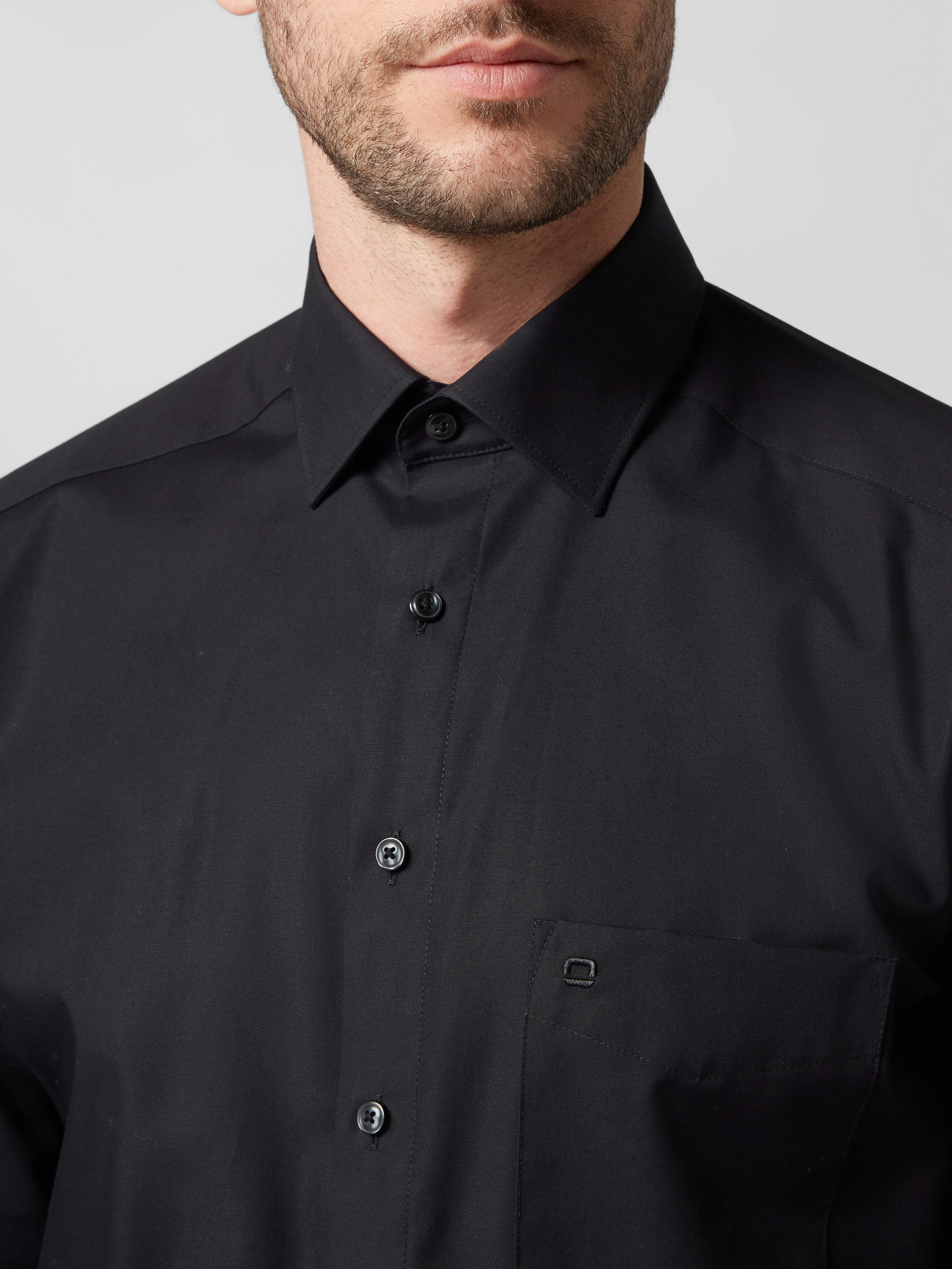 OLYMPRegular Fit Freizeithemd mit Logo-Stitching Modell 'New' in black
