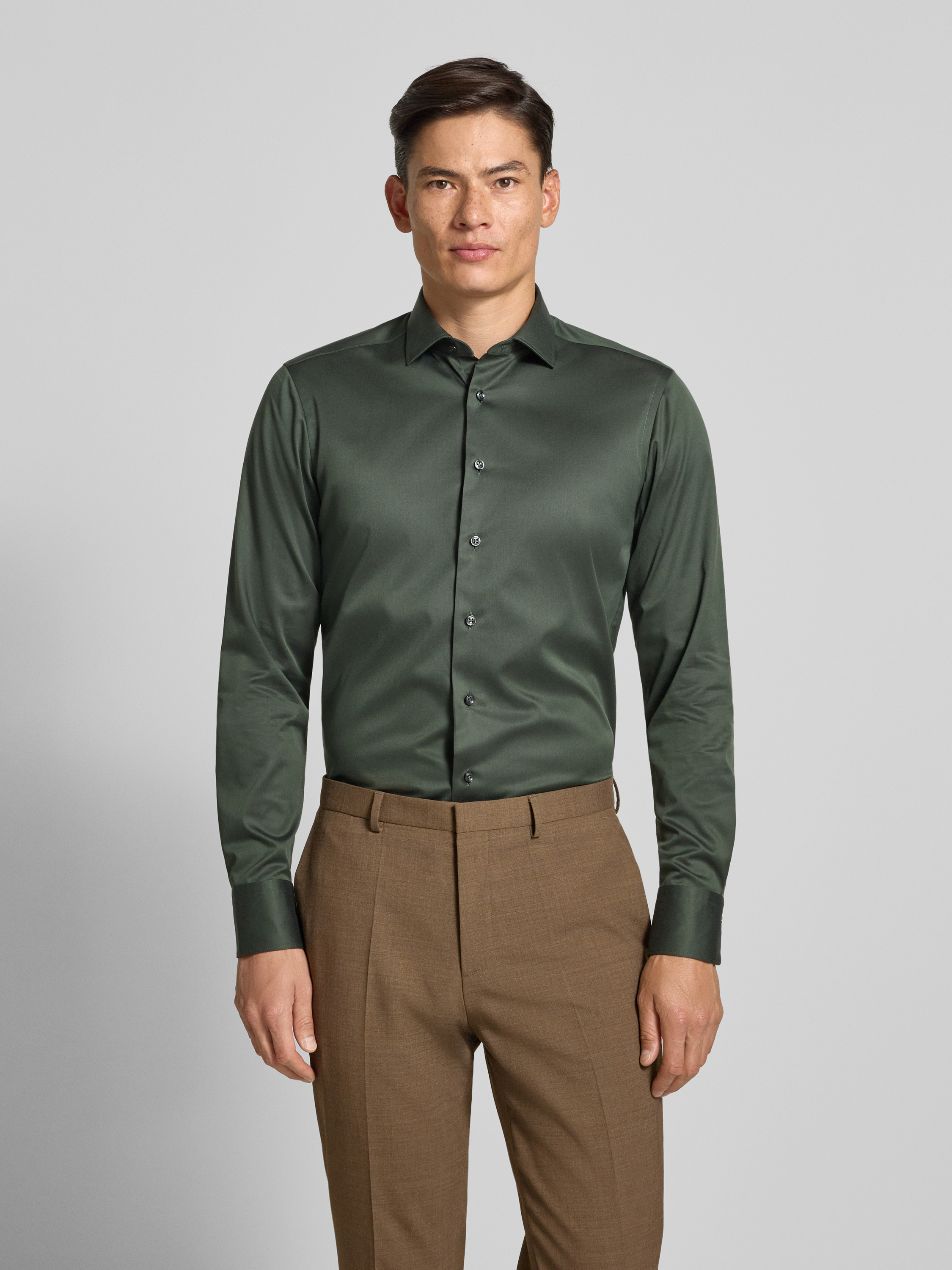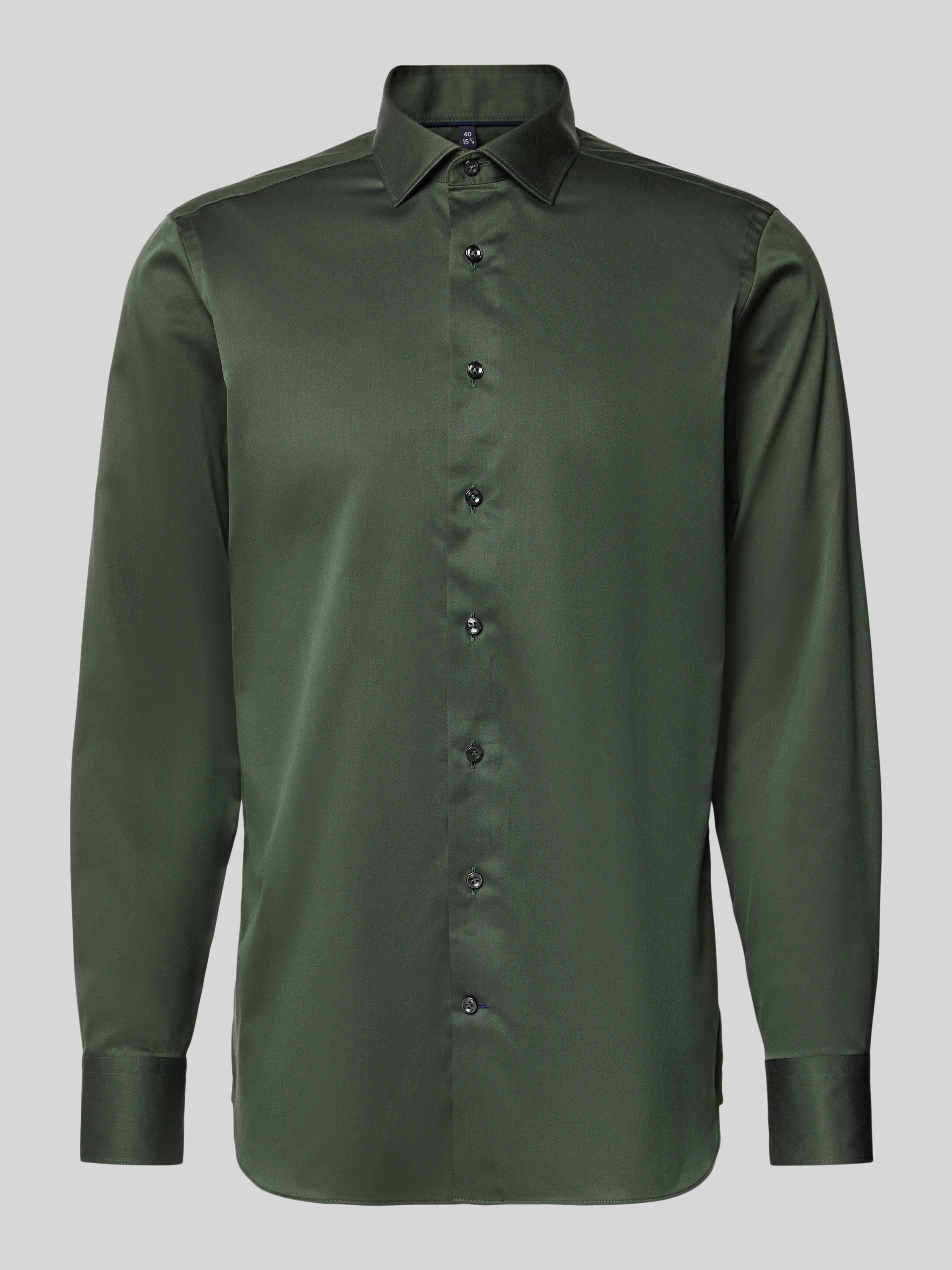 Das Herrenhemd von OLYMP SIGNATURE präsentiert sich im schmalen Slim Fit und liegt angenehm an, ohne einzuengen. Gefertigt aus reiner Baumwolle, punktet es durch ein natürliches Tragegefühl. Der klassische Kentkragen unterstreicht die elegante, gepflegte Ausstrahlung im Geschäftsalltag.