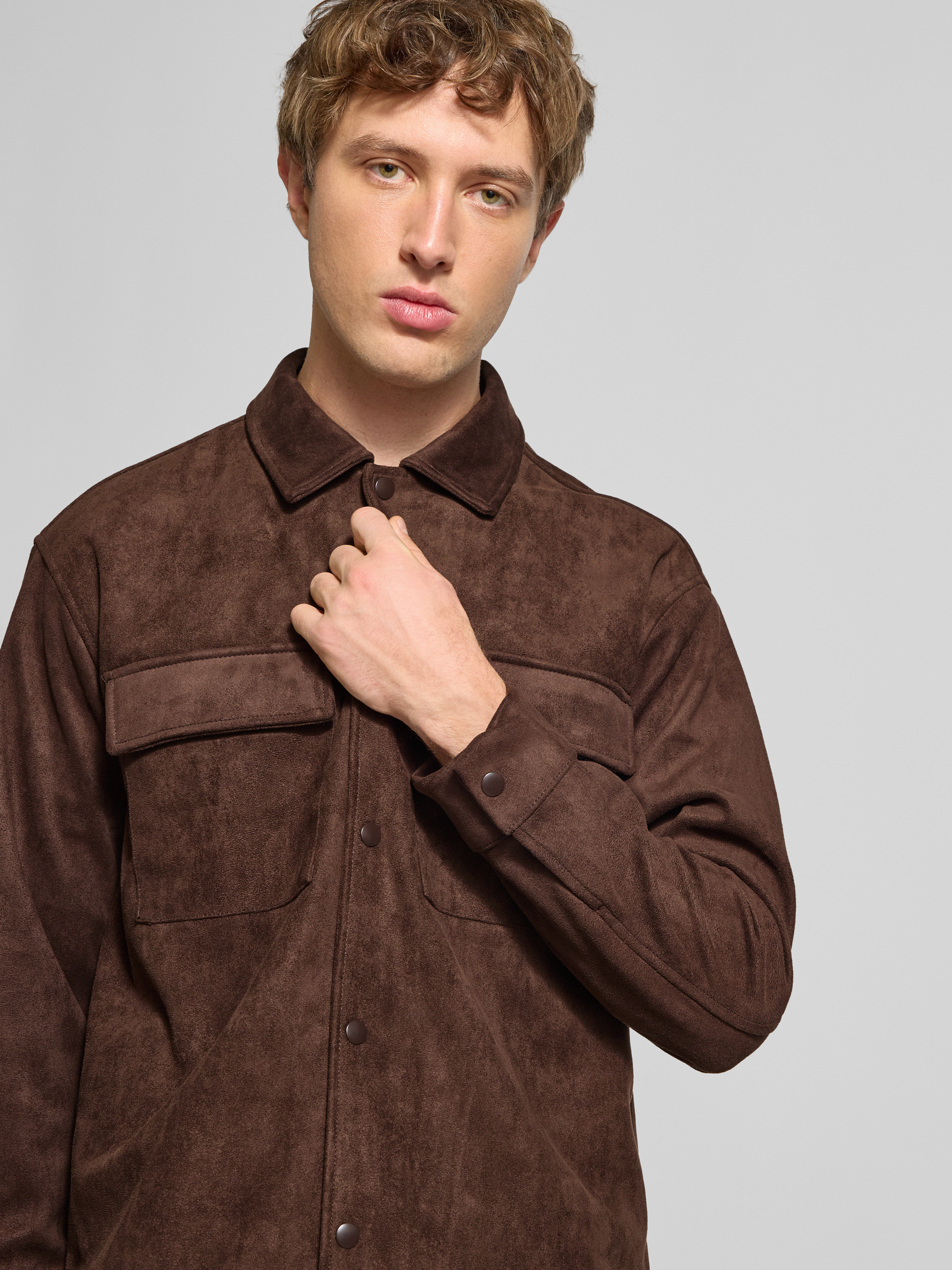 Only & SonsRegular Fit Jacke in Velourslederoptik mit Brustpattentaschen Modell 'RAVI' in dunkelbraun