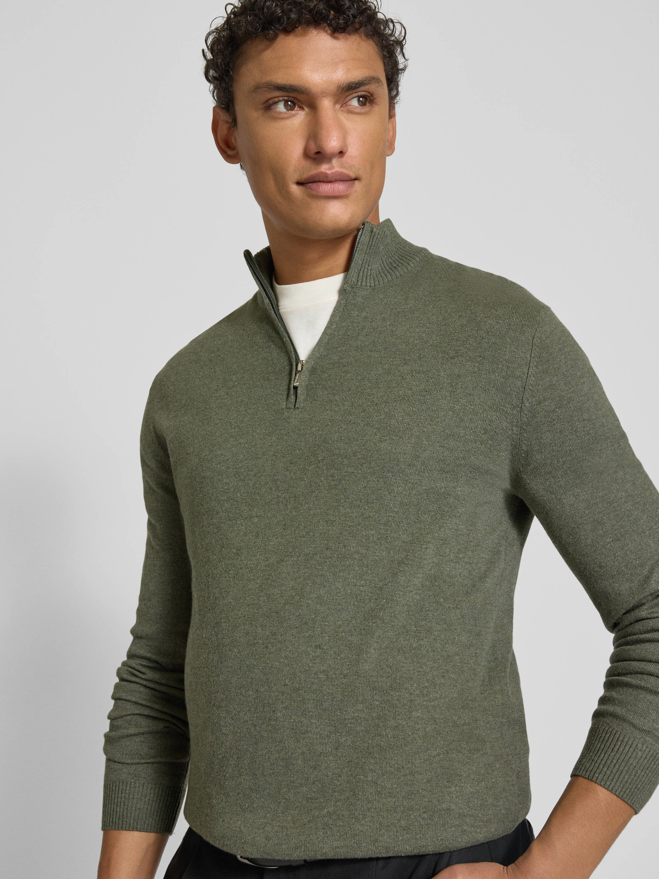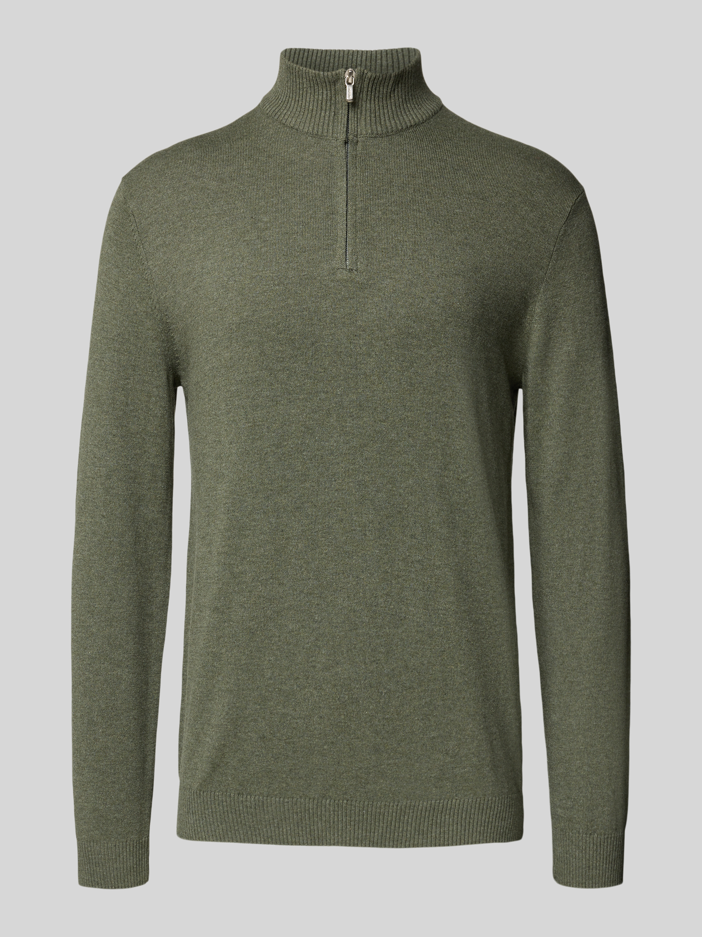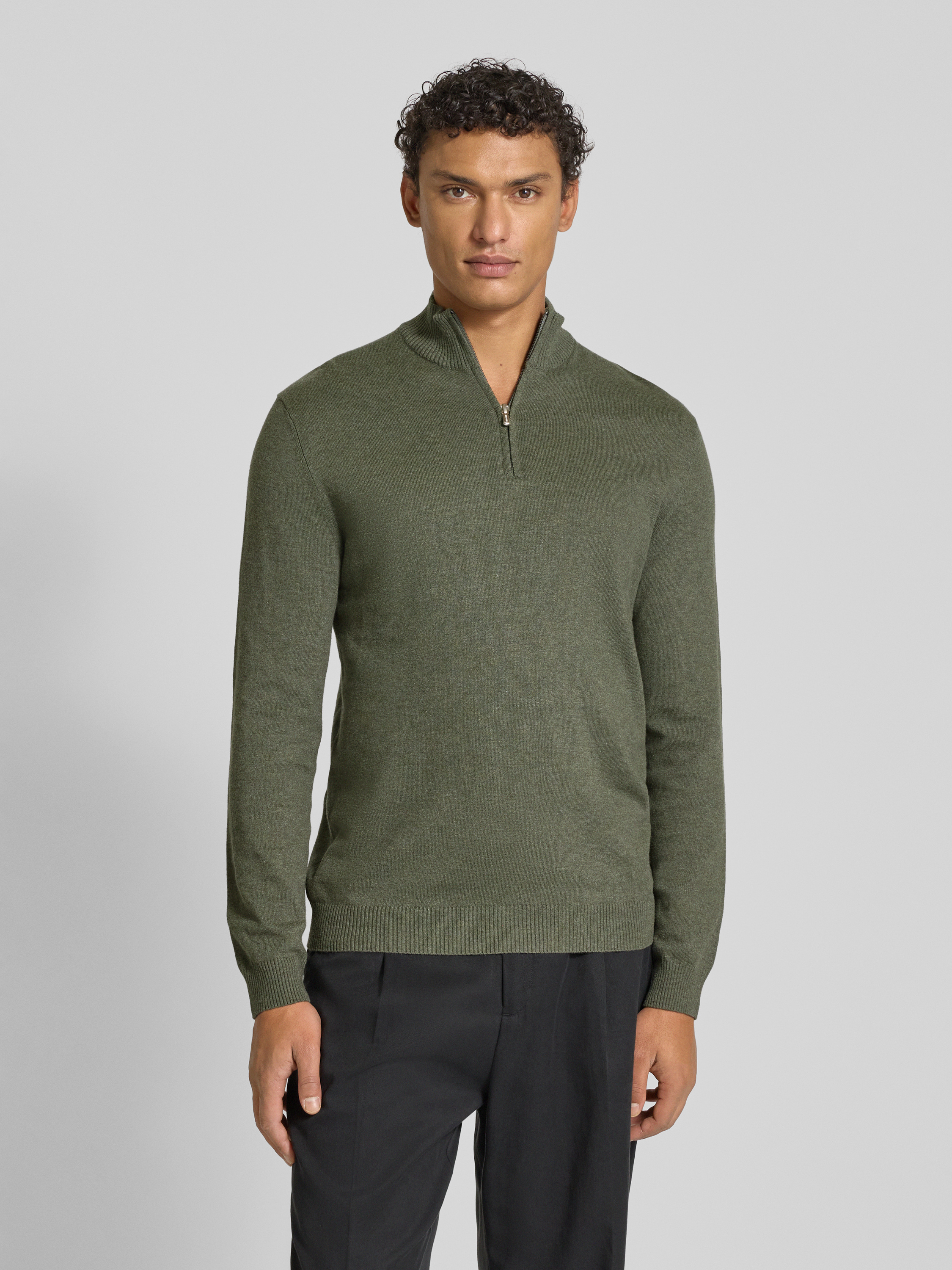 Der Herren-Troyer von Only & Sons, Modell Loui, fällt durch seinen melierten Look auf und überzeugt im Regular Fit mit einer klassischen Troyer-Kragenform. Durch die feine Rippstrick-Verarbeitung entsteht ein angenehmes Tragegefühl, das sich vielseitig kombinieren lässt. Der Baumwoll-Viskose-Mix sorgt für eine weiche Haptik.