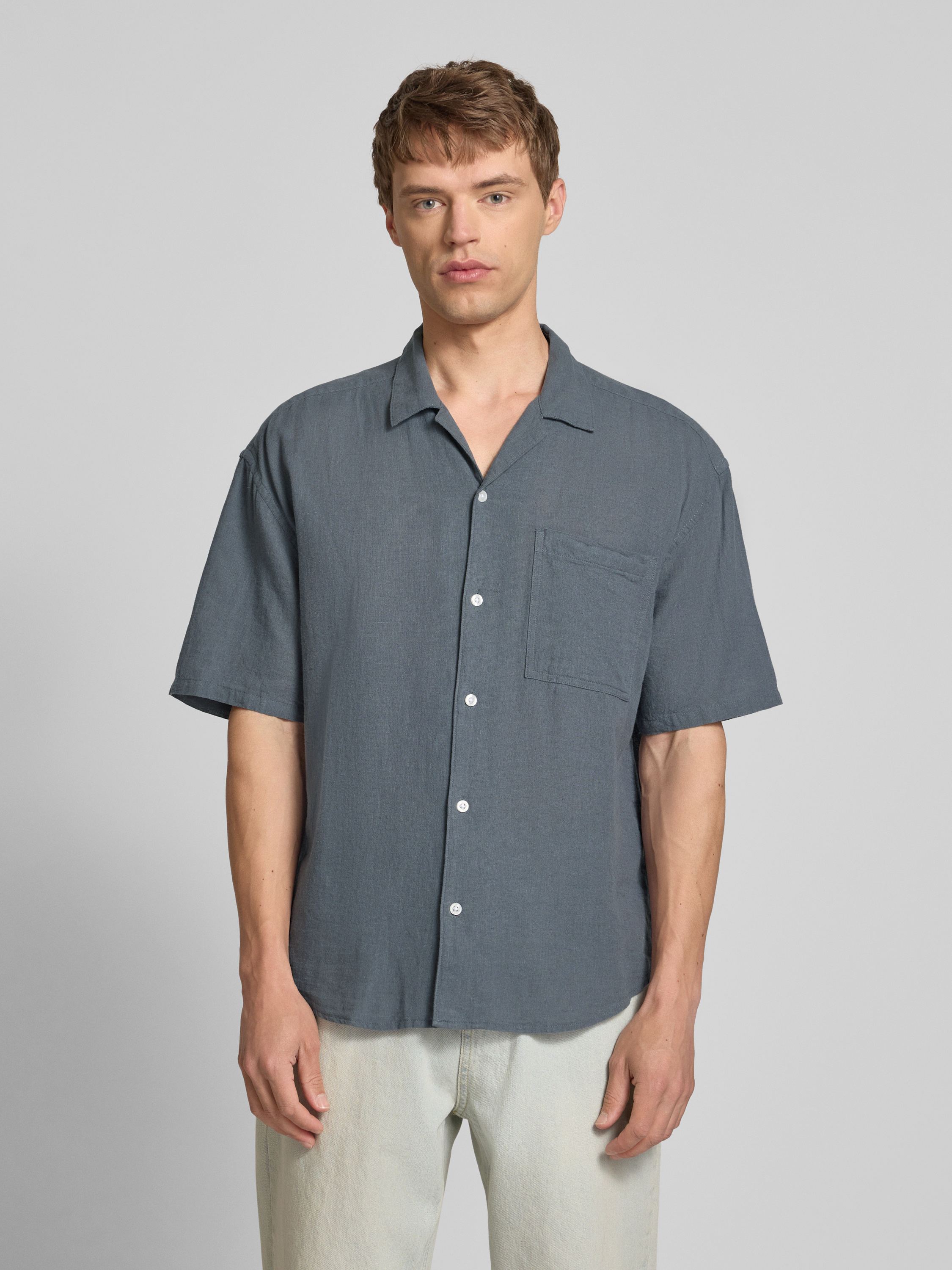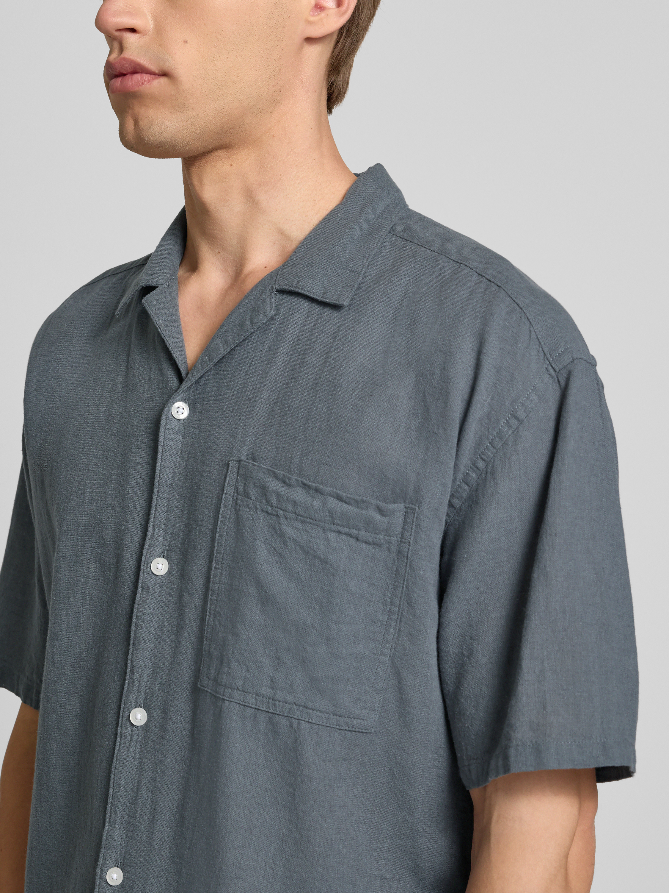 Das Relaxed Fit Freizeithemd 'CAIDEN' von Only & Sons vereint die Leichtigkeit eines Baumwoll-Leinen-Mix mit einem lässigen Schnitt. Der Resortkragen und die praktische Brusttasche machen es zu einer vielseitigen Wahl für warme Tage. Ideal für einen entspannten, stilvollen Auftritt.