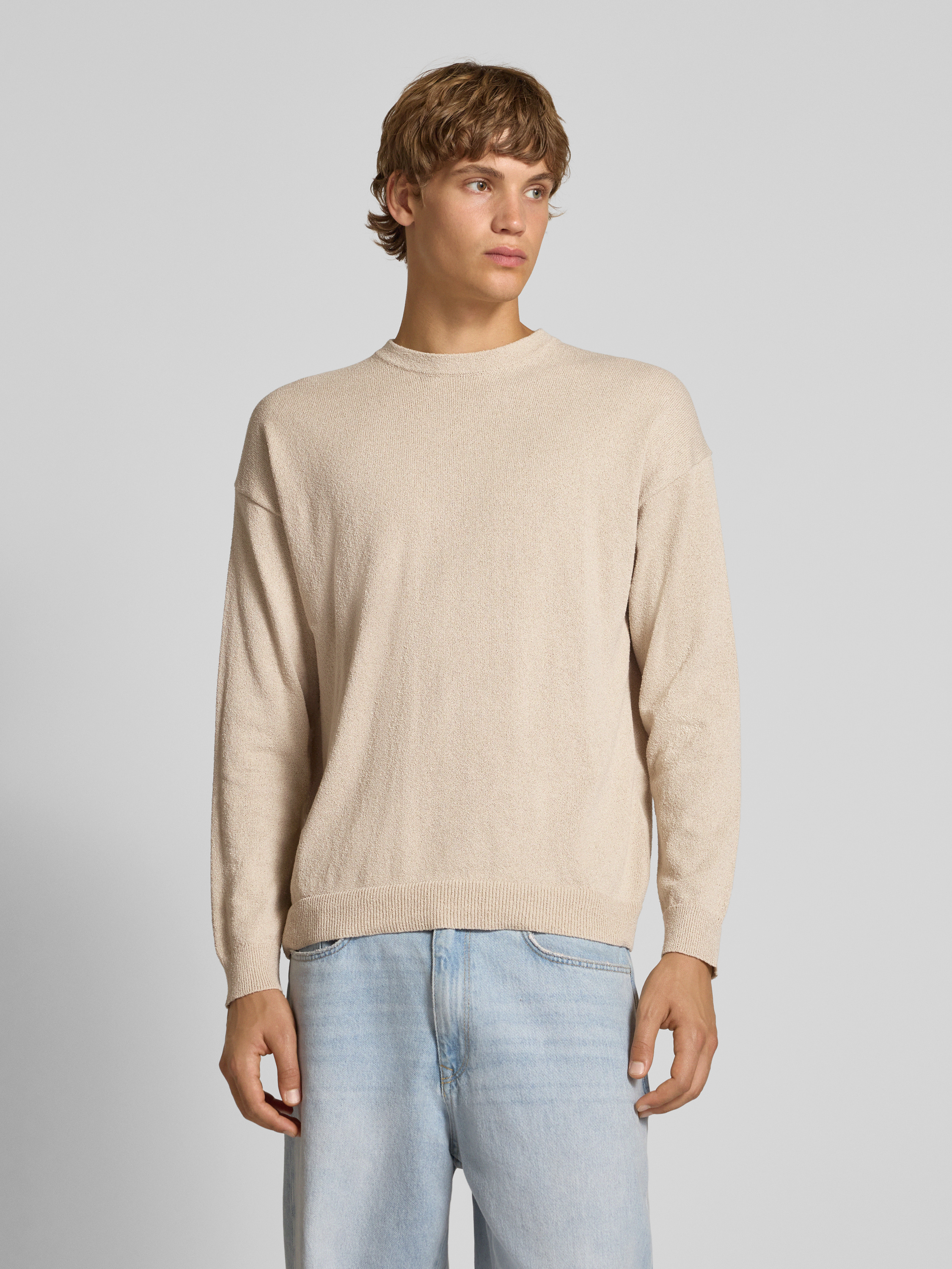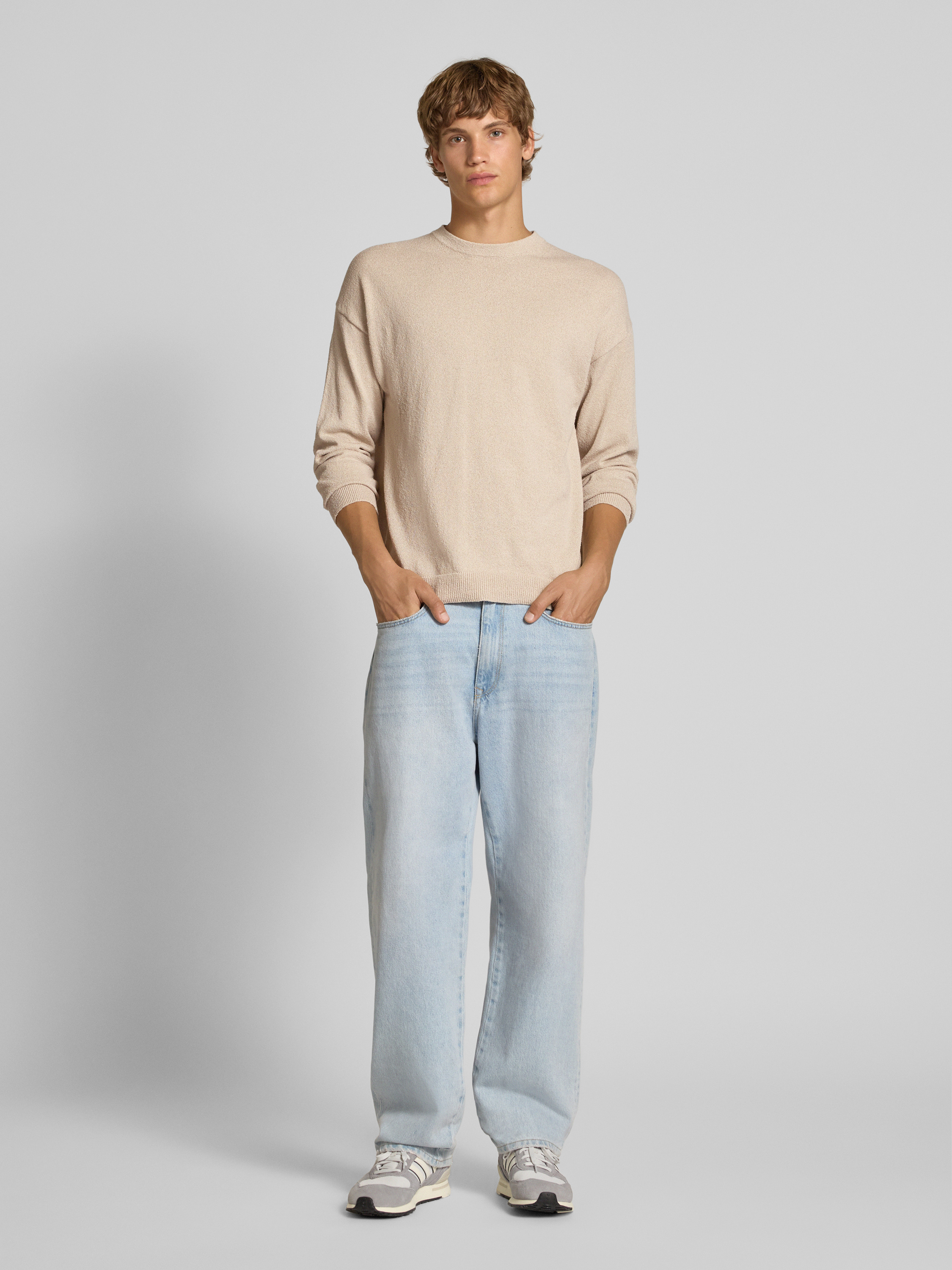 Der Herrenpullover von Only & Sons, Modell Job, zeichnet sich durch seinen entspannten Schnitt und die melierte Bouclé-Optik aus. Dank Relaxed Fit und Rundhalsausschnitt liegt er angenehm locker an und sorgt für Bewegungsfreiheit. Für entspannte Tage eignet sich der Strickpullover vielseitig.