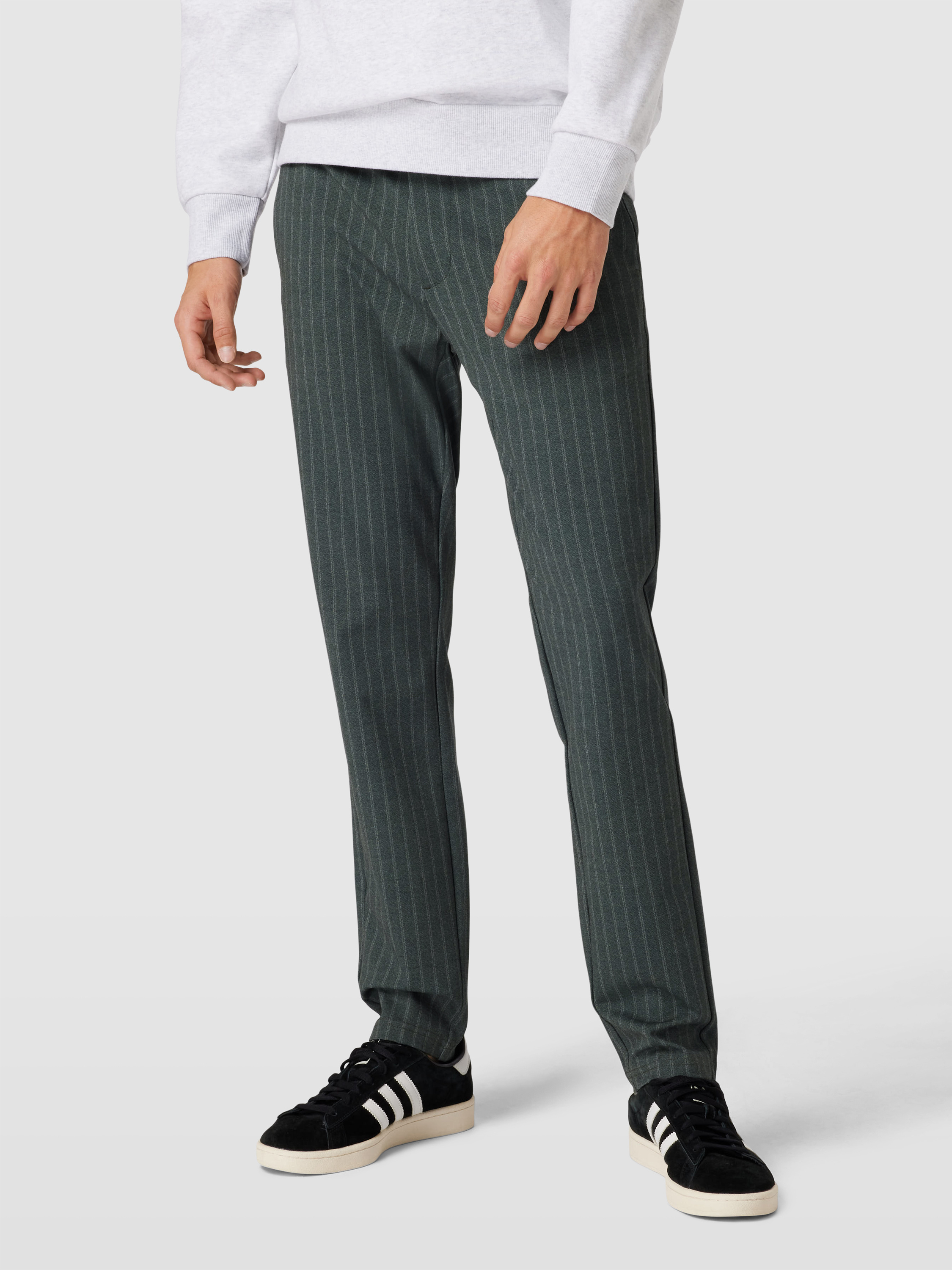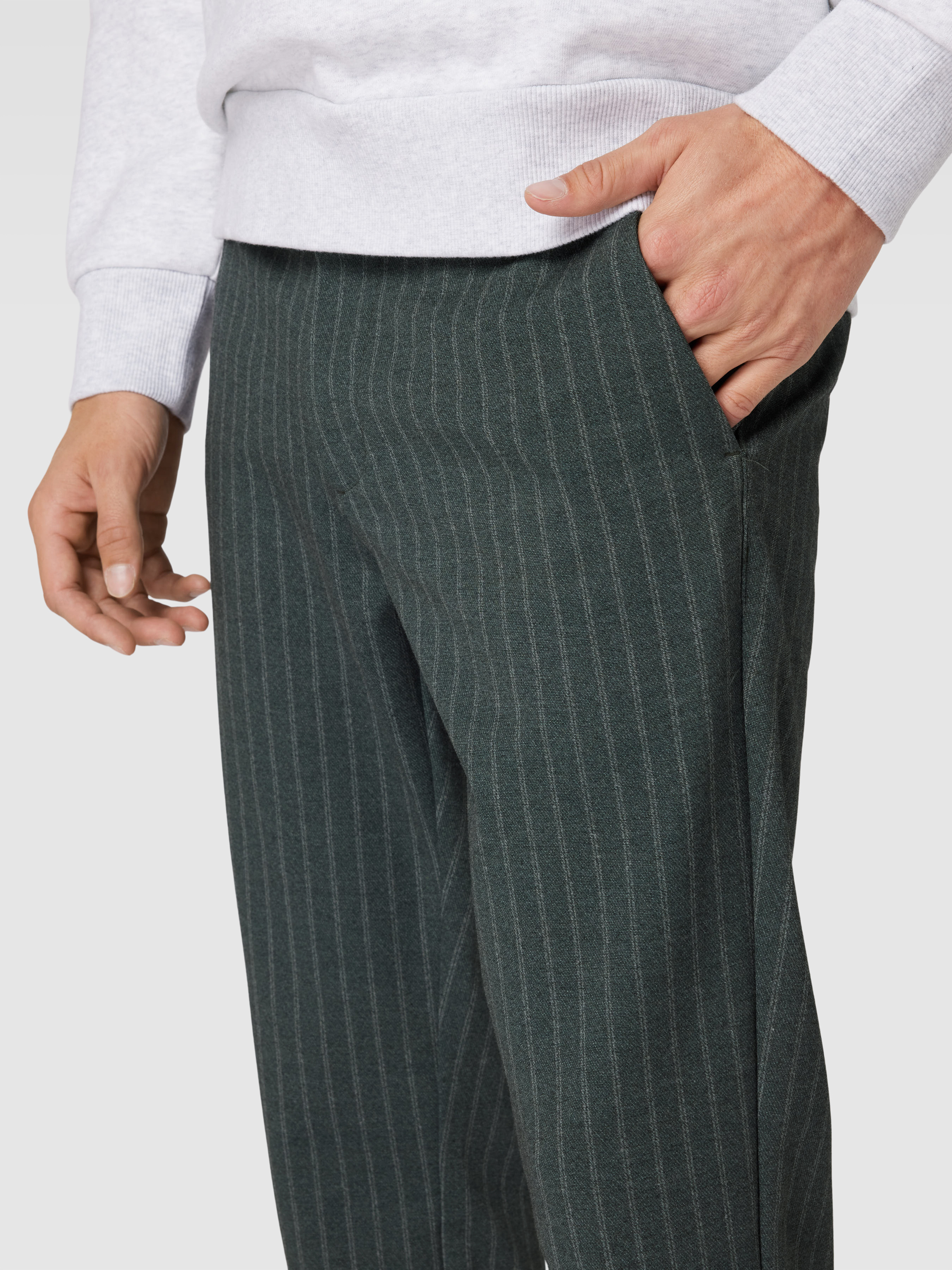 Die Slim Fit Anzughose 'MARK' von Only & Sons vereint einen eleganten Look mit hohem Tragekomfort. Dank des Viskose-Mixes mit Stretch-Anteil passt sie sich optimal an und bietet Bewegungsfreiheit. Das dezente Streifenmuster verleiht jedem Outfit eine stilvolle Note.