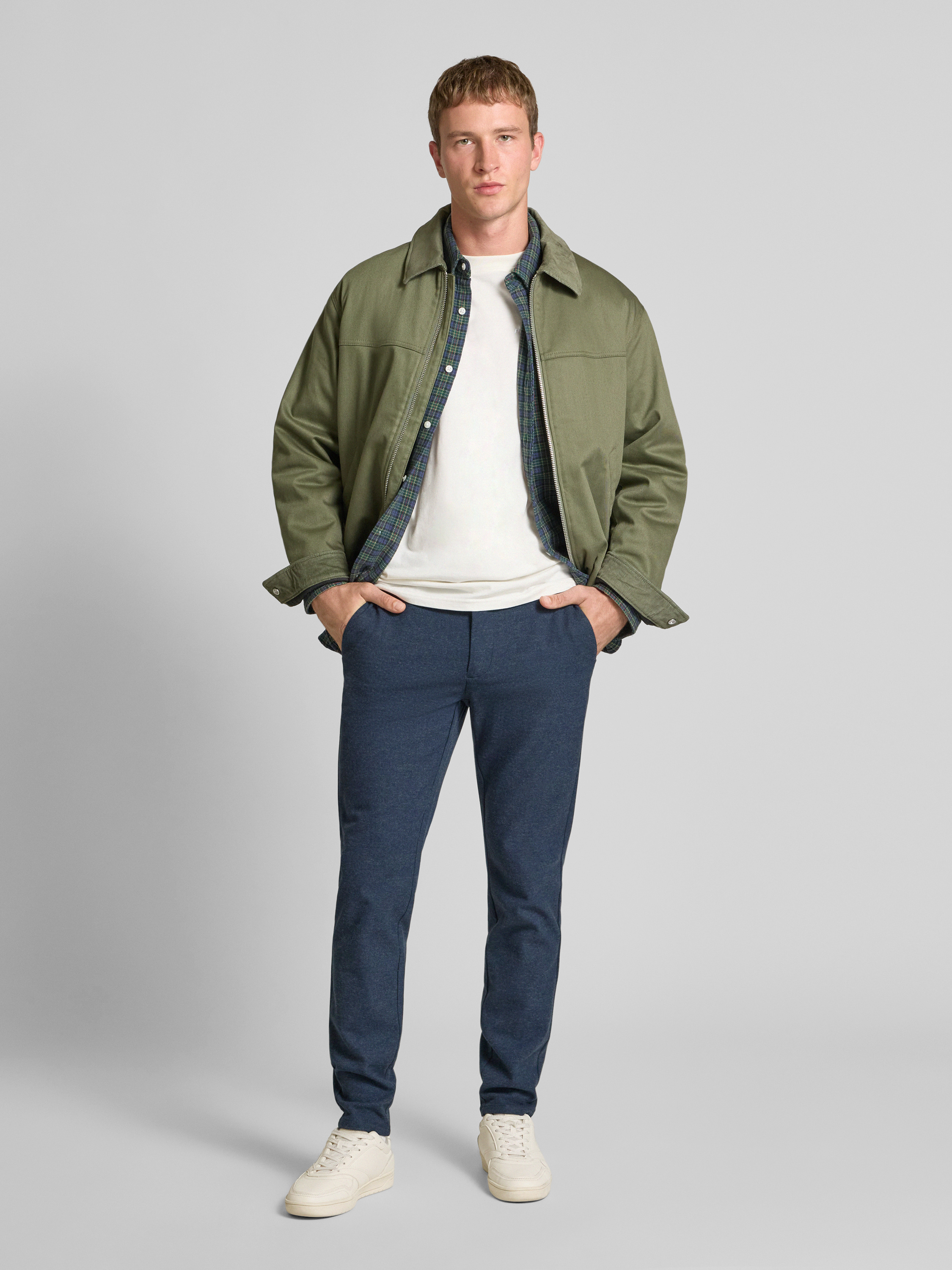 Die Herren Slim Fit Brushed Chino von Only & Sons, Modell Mark, bringt mit ihrem melierten Piqué-Gewebe eine dezente Struktur ins Outfit. Die schmale Passform sorgt für eine moderne Silhouette, während praktische Taschen ausreichend Platz für Alltagsgegenstände schaffen. Gürtelschlaufen bieten zusätzlichen Gestaltungsspielraum.