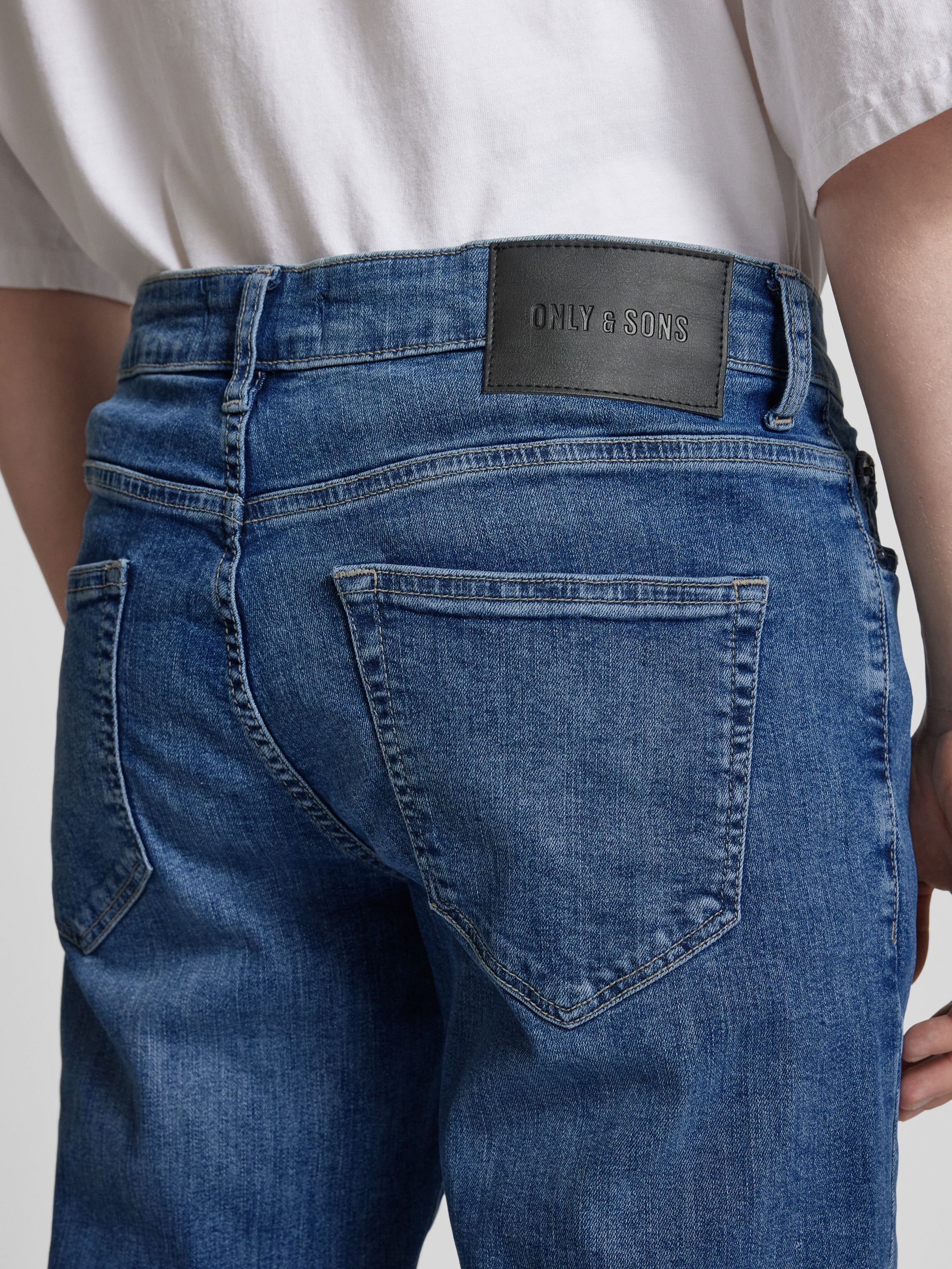 Die Jeans im 5-Pocket-Design von Only & Sons kombiniert einen klassischen Stil mit einem modernen Loom Slim Fit, der sich angenehm an den Körper anpasst. Der Baumwoll-Elasthan-Mix bietet Flexibilität und Komfort im Alltag. Ein vielseitiges Kleidungsstück, das vielfältige Kombinationsmöglichkeiten eröffnet.