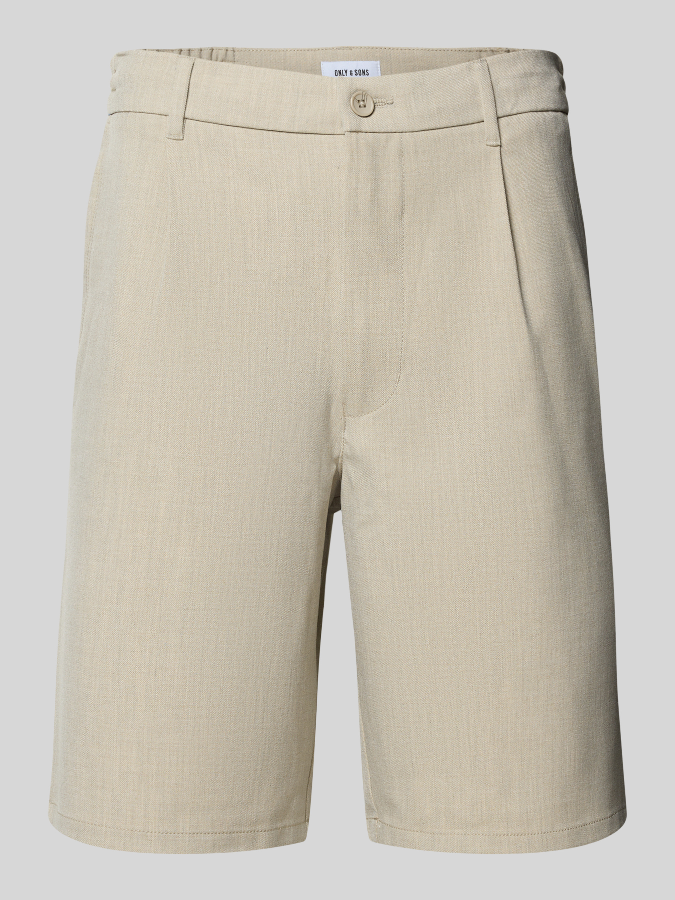 Der Schnitt der Slim Fit Shorts 'LOU' von Only & Sons verleiht eine moderne Silhouette, die durch Bundfalten elegant akzentuiert wird. Ausgestattet mit praktischen Gesäßtaschen, eignet sich die Shorts ideal für warme Tage. Der leichte Stoff bietet angenehmen Tragekomfort.
