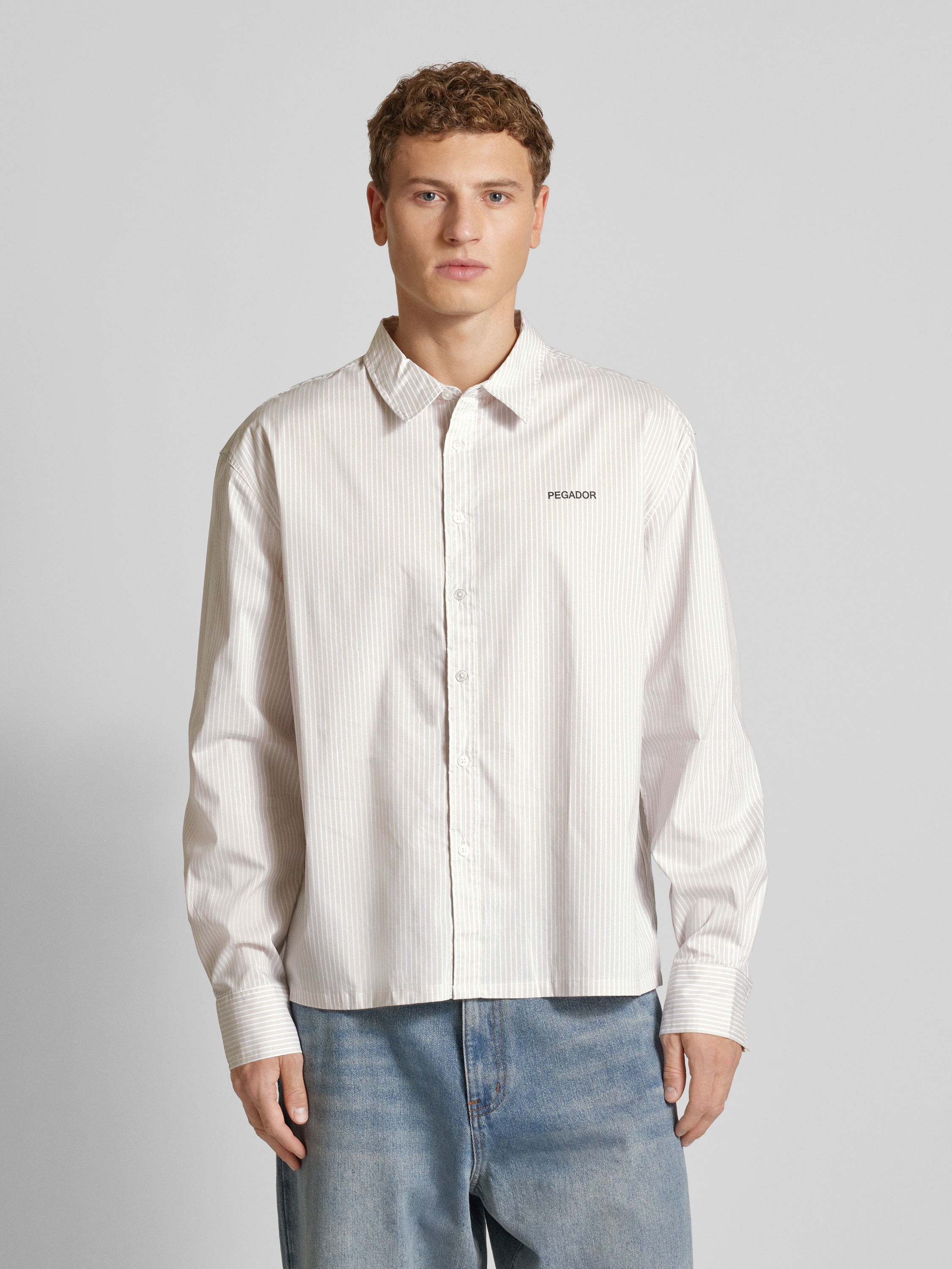 PegadorOversized Freizeithemd mit Label-Print Modell 'MARO' in offwhite