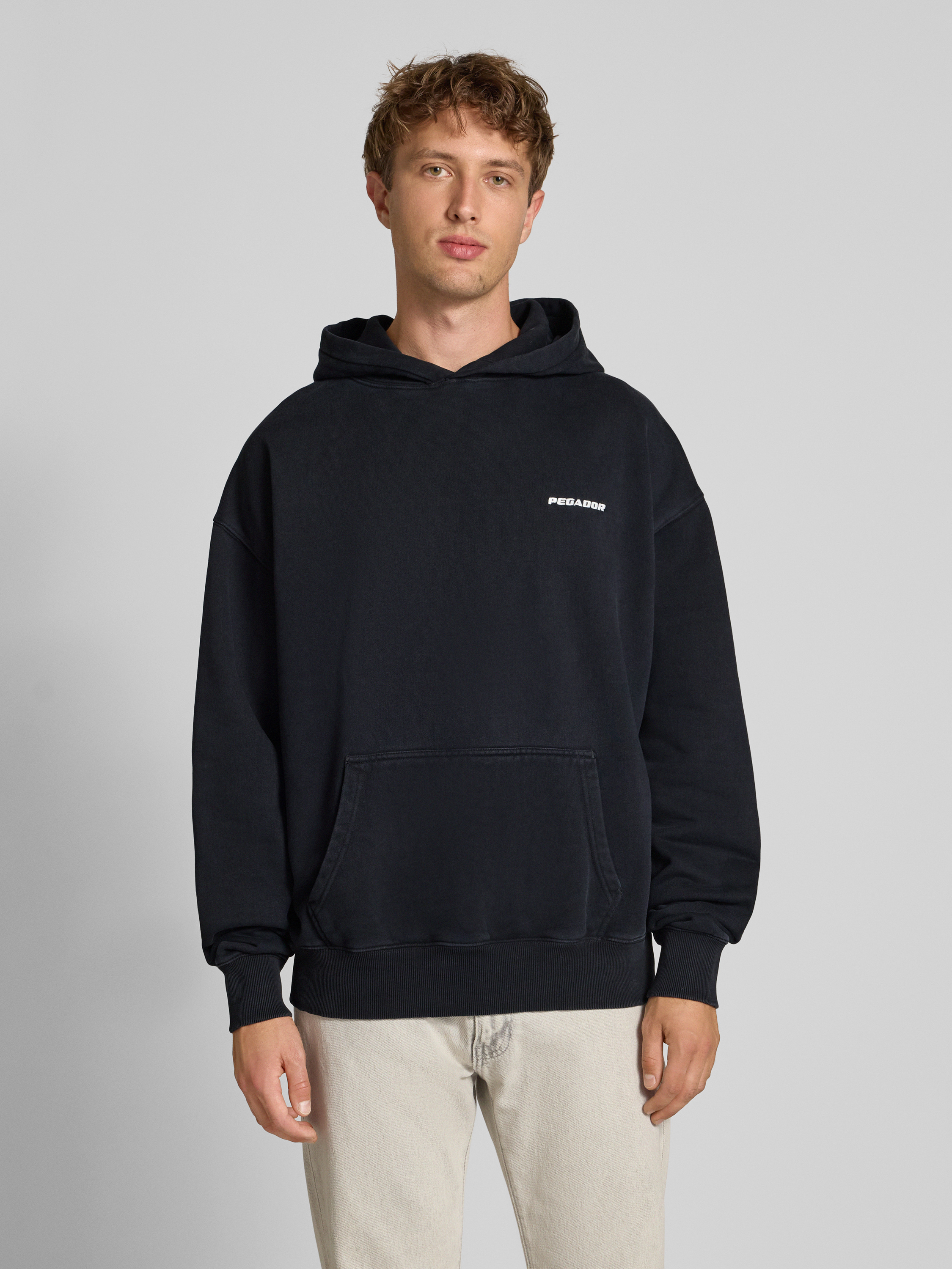 Der Herren Hoodie von Pegador aus weichem Baumwoll-Mix fällt durch seinen Oversized Fit angenehm lässig. Die überschnittenen Schultern unterstreichen den entspannten Charakter, während das Logo-Stitching und die praktische Känguru-Tasche dezente Akzente setzen. Mit Kapuze und gerippten Abschlüssen eignet er sich für viele Gelegenheiten.