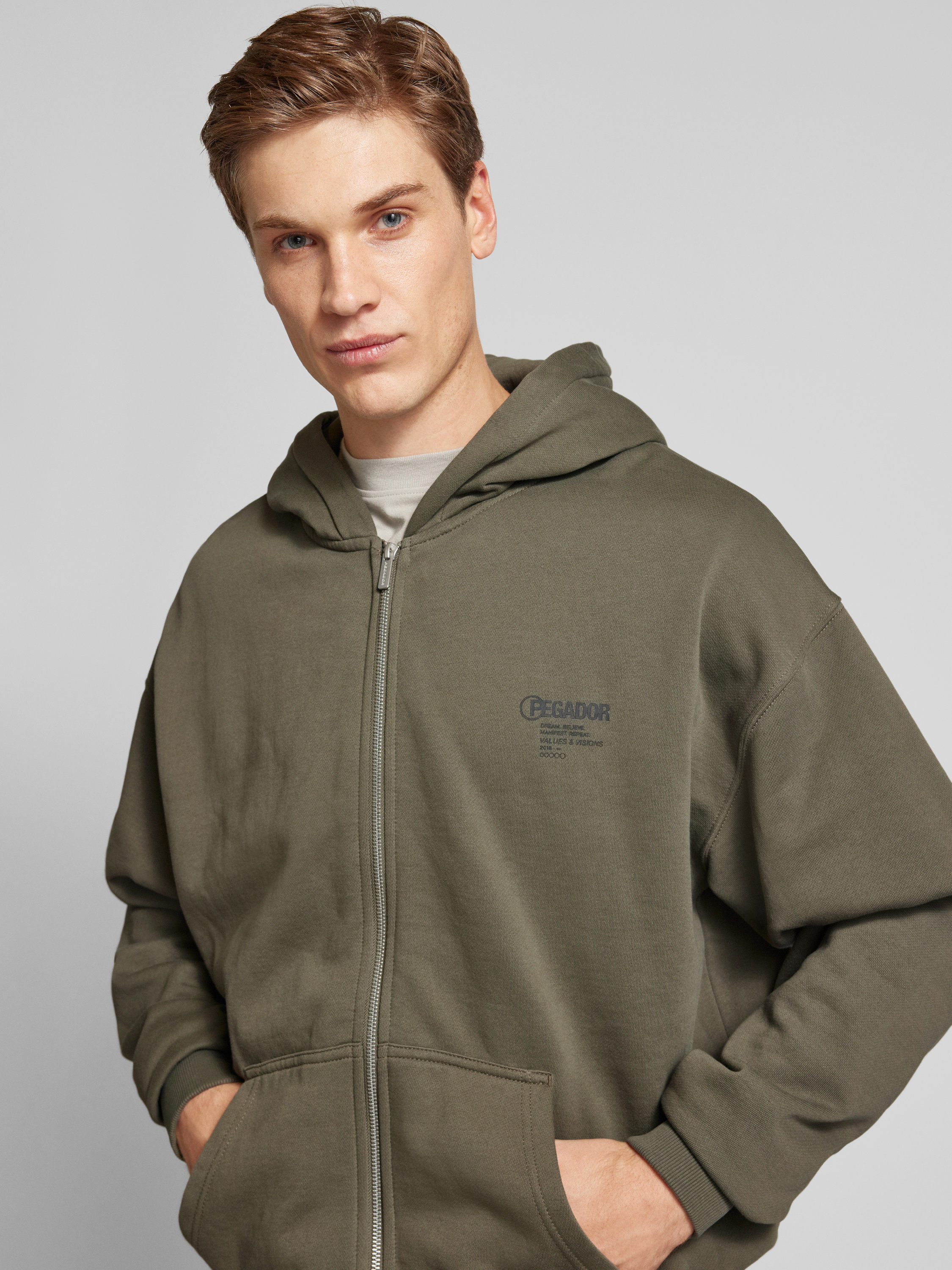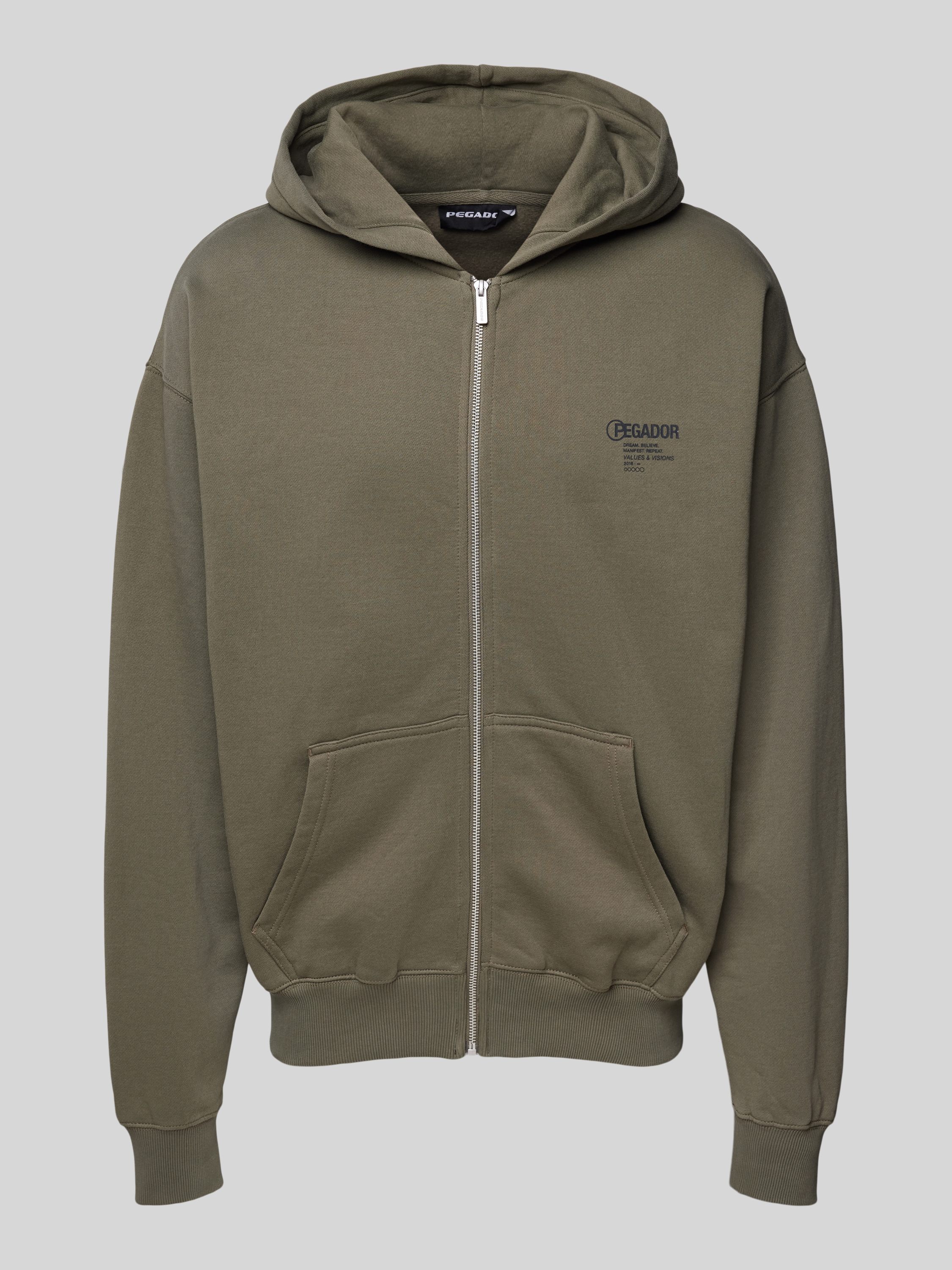 PegadorOversized Sweatjacke mit Label-Print Modell 'MAHAN' in oliv