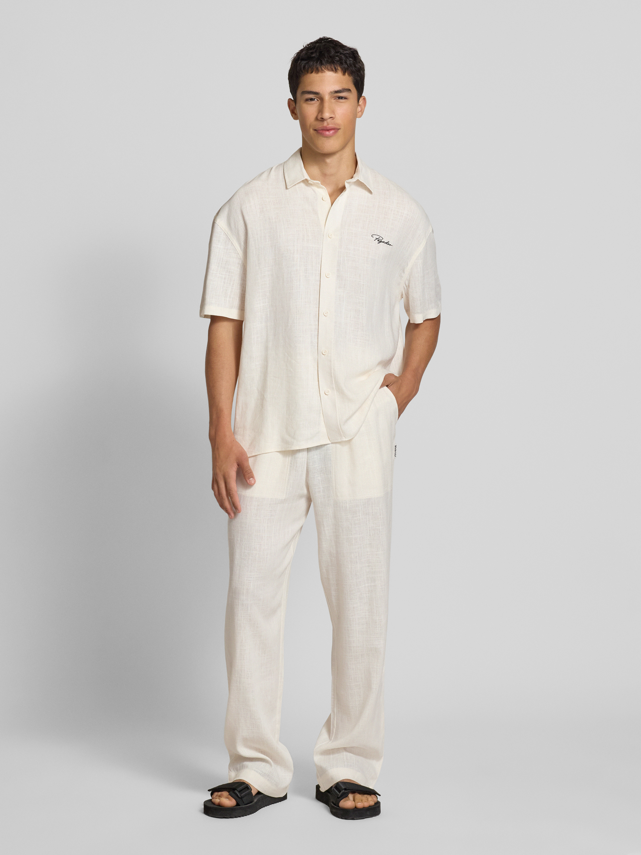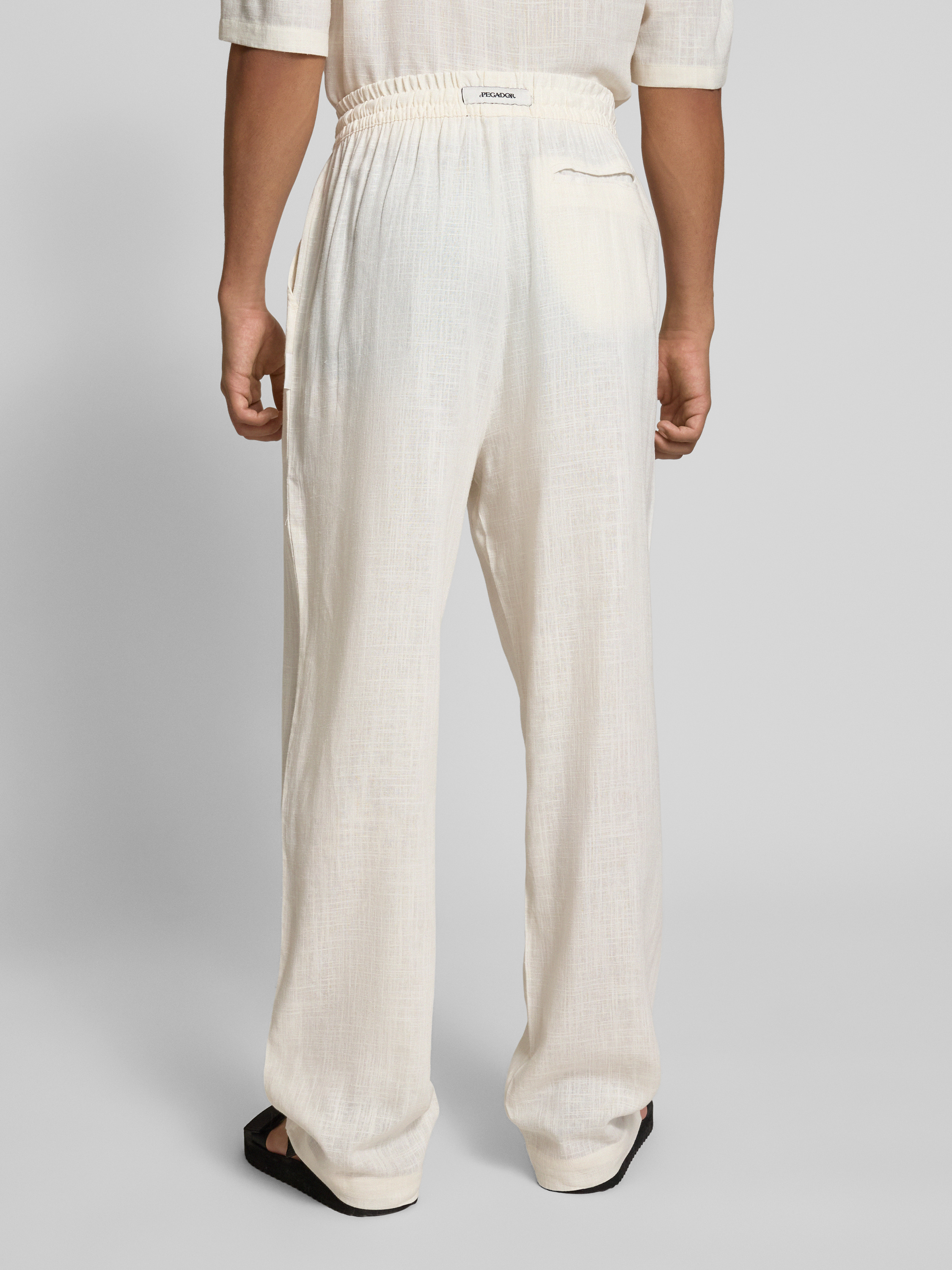 Die Herren-Stoffhose von Pegador im Modell 'Lavus' vereint durch den Viskose-Leinen-Mix Leichtigkeit und Eleganz. Der Wide-Leg-Schnitt bietet Bewegungsfreiheit, während der elastische Bund mit Tunnelzug für individuellen Tragekomfort sorgt. Praktische Eingrifftaschen ergänzen den lässigen, aber stilvollen Look.