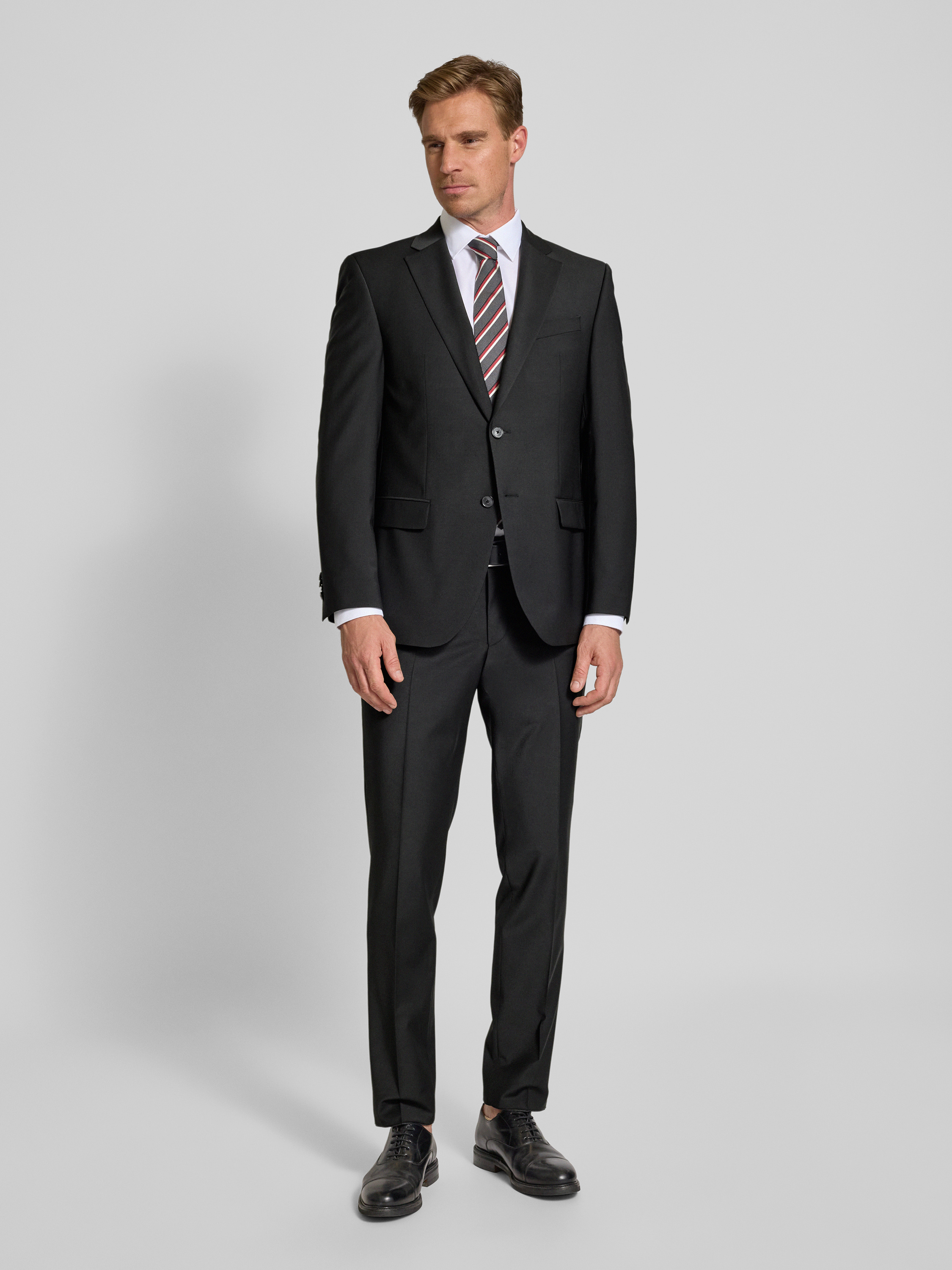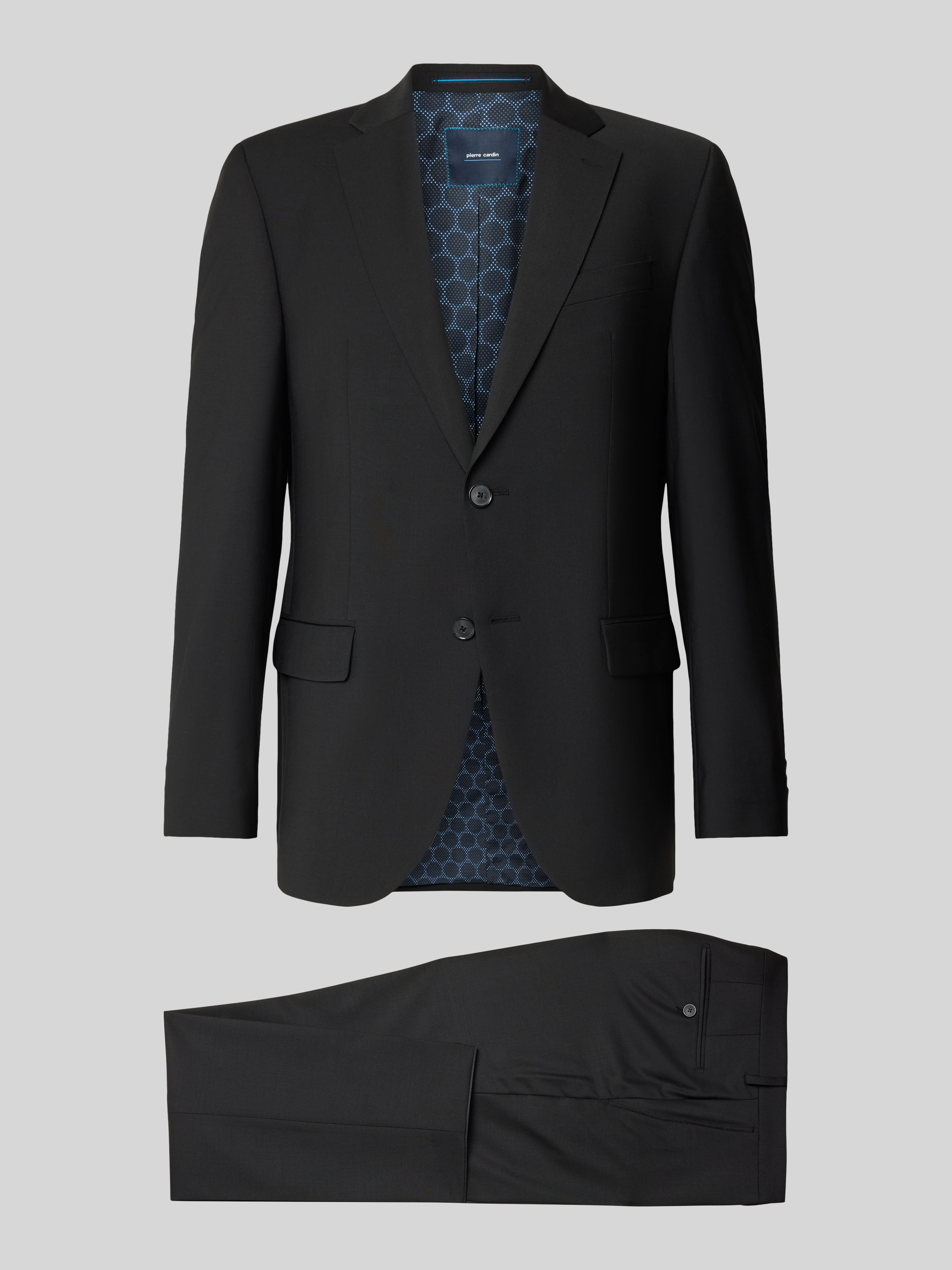 Der Herrenanzug von Pierre Cardin kombiniert einen klassischen Reverskragen mit einem edlen Material-Mix, der Schurwolle enthält und so für ein angenehmes Tragegefühl sorgt. Der Regular Fit passt sich harmonisch an, während praktische Taschen ausreichend Stauraum für alltägliche Utensilien bieten.