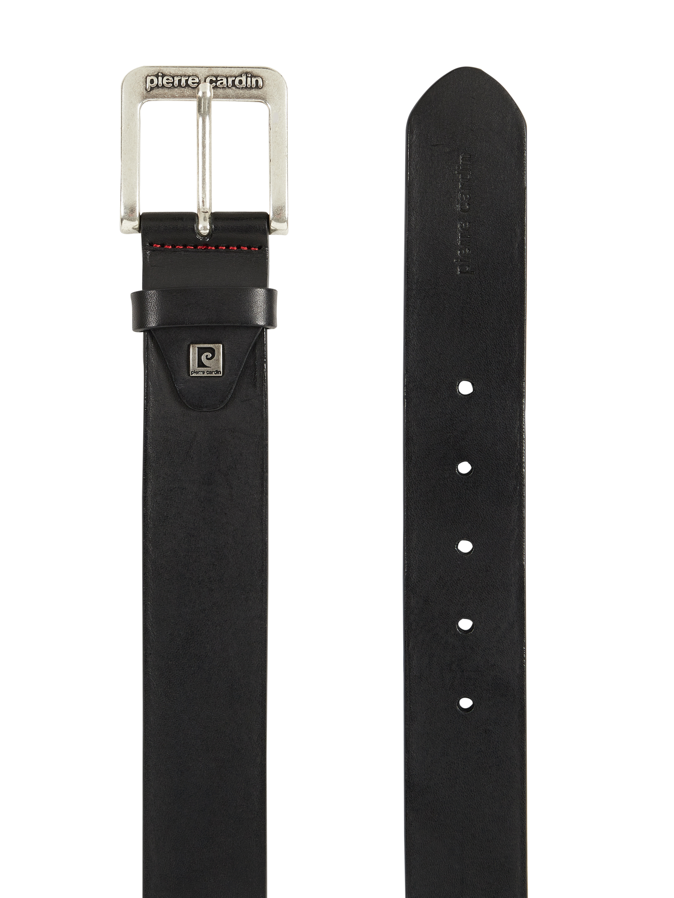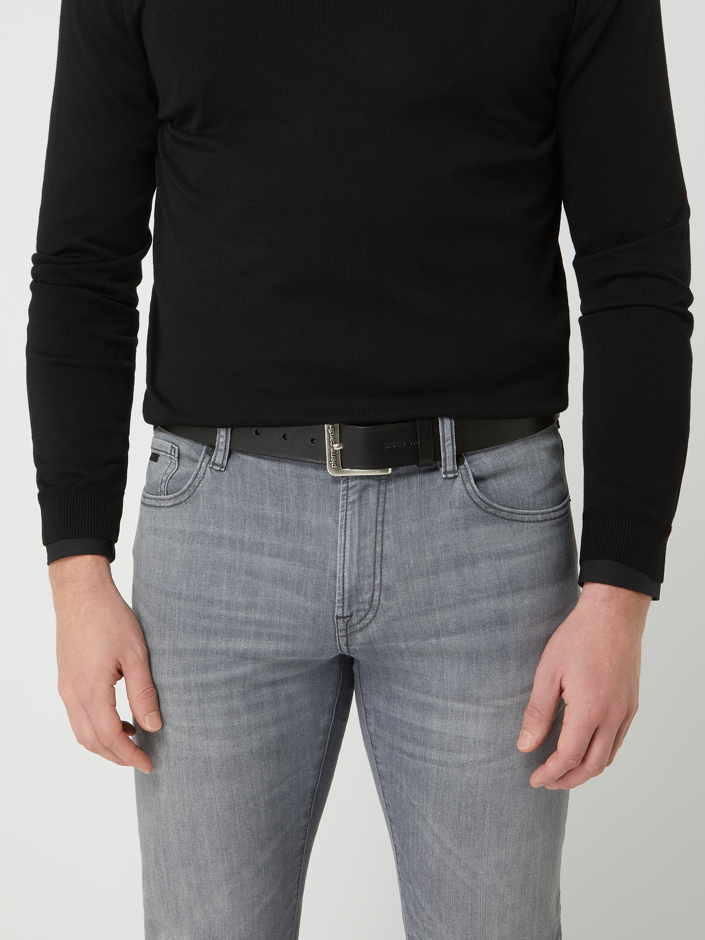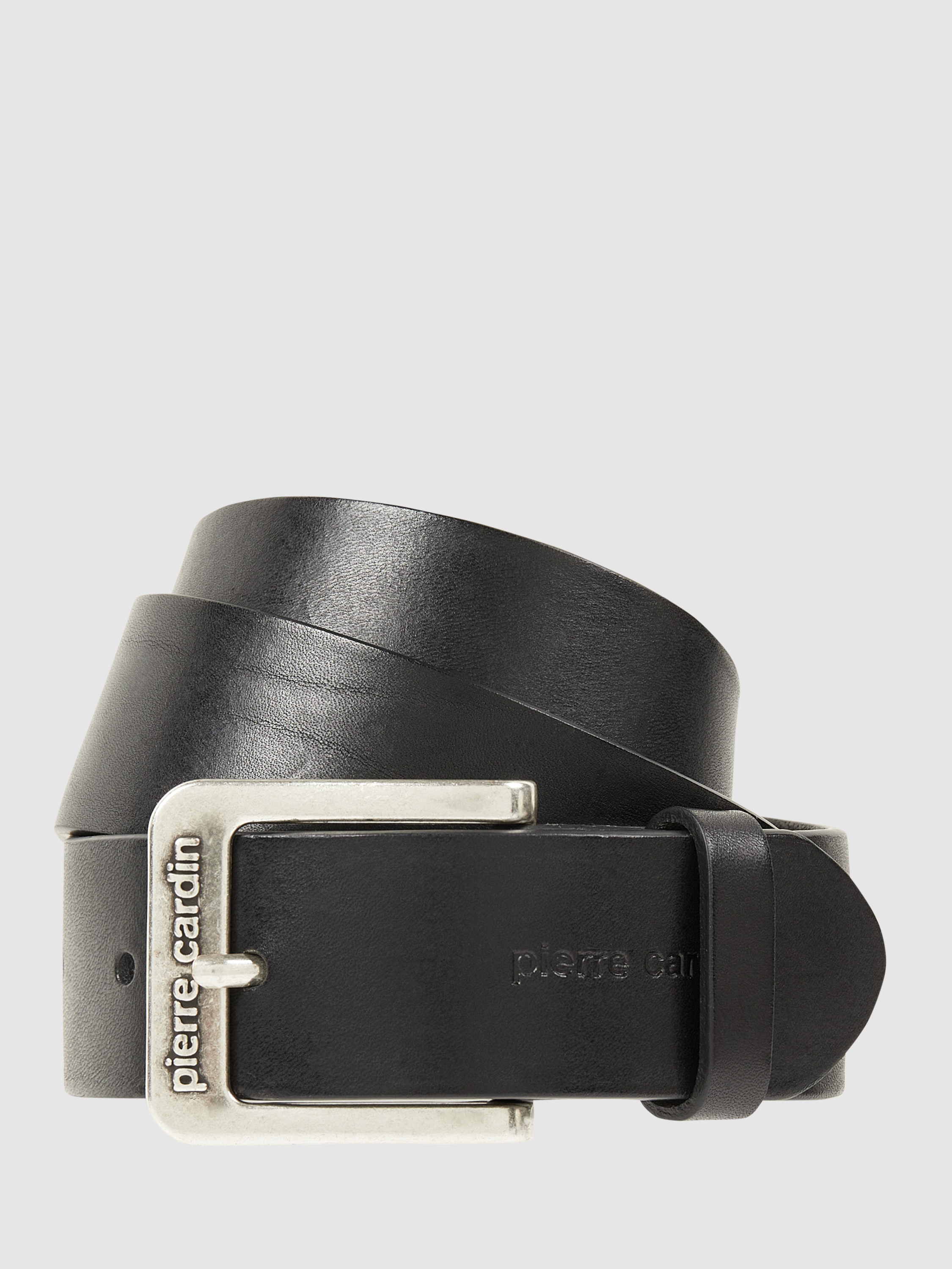 Der Gürtel von Pierre Cardin ist aus Leder gefertigt. Er kommt mit Dornschließe, fixierter Gürtelschlaufe und Logo.