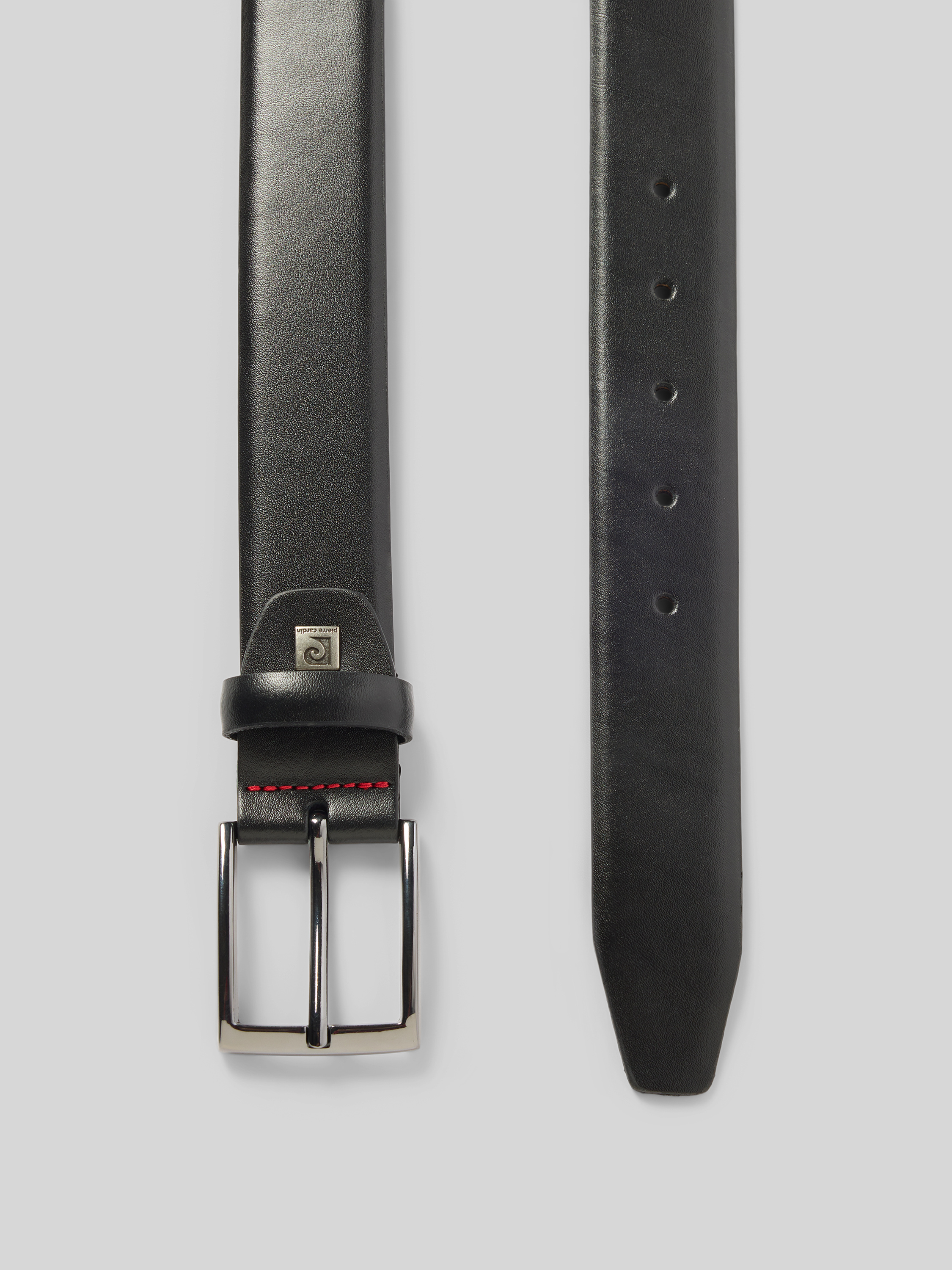 Pierre CardinLedergürtel mit Dornschließe und Label-Detail in black