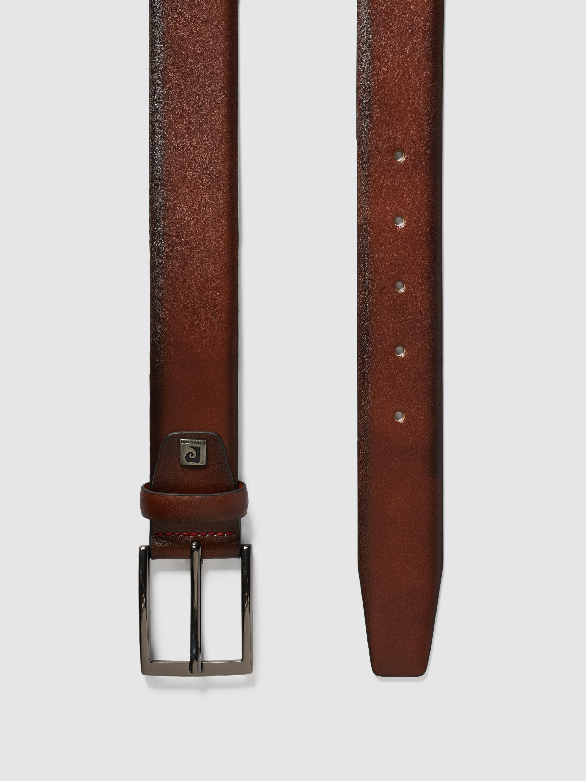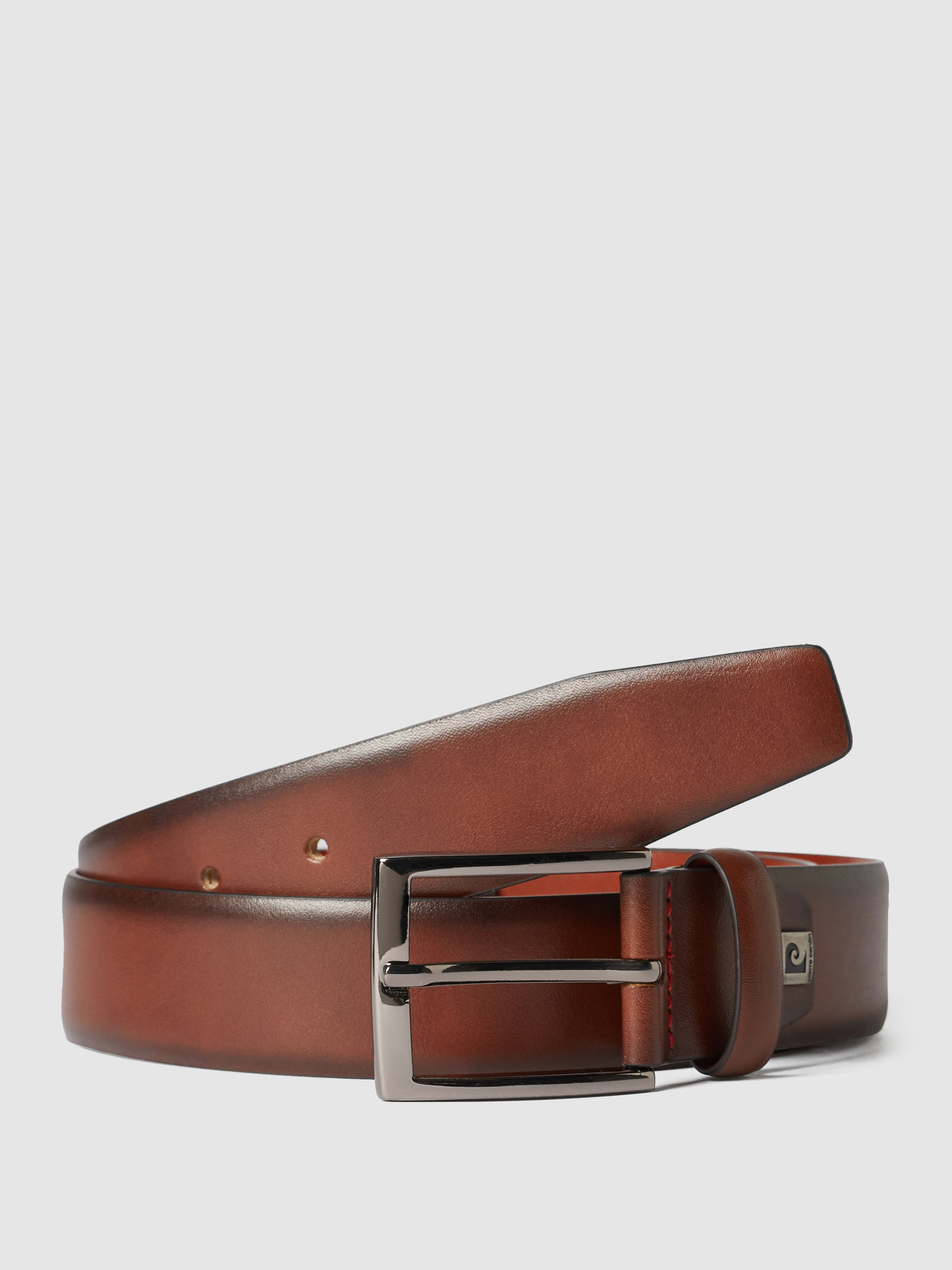 Pierre CardinLedergürtel mit Dornschließe und Label-Detail in cognac