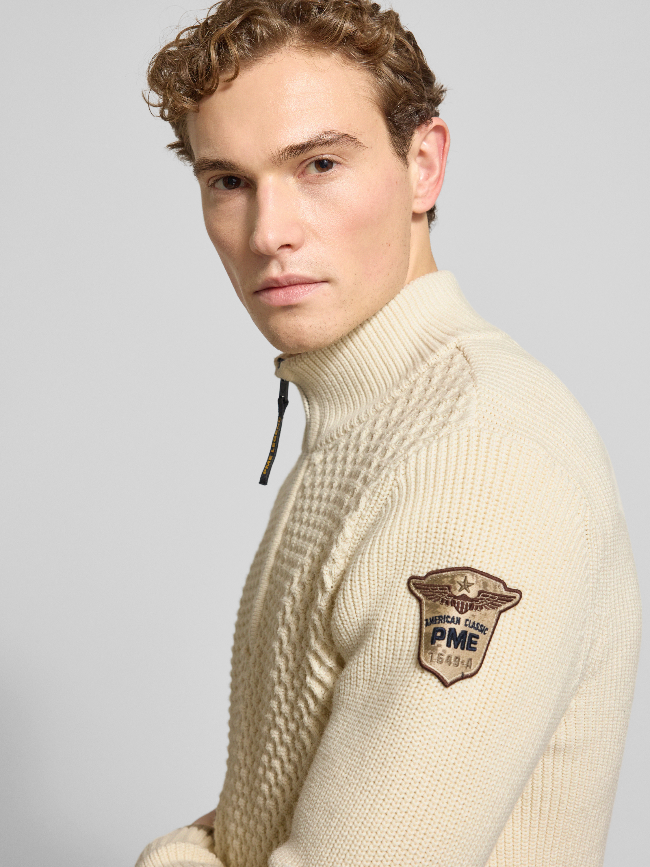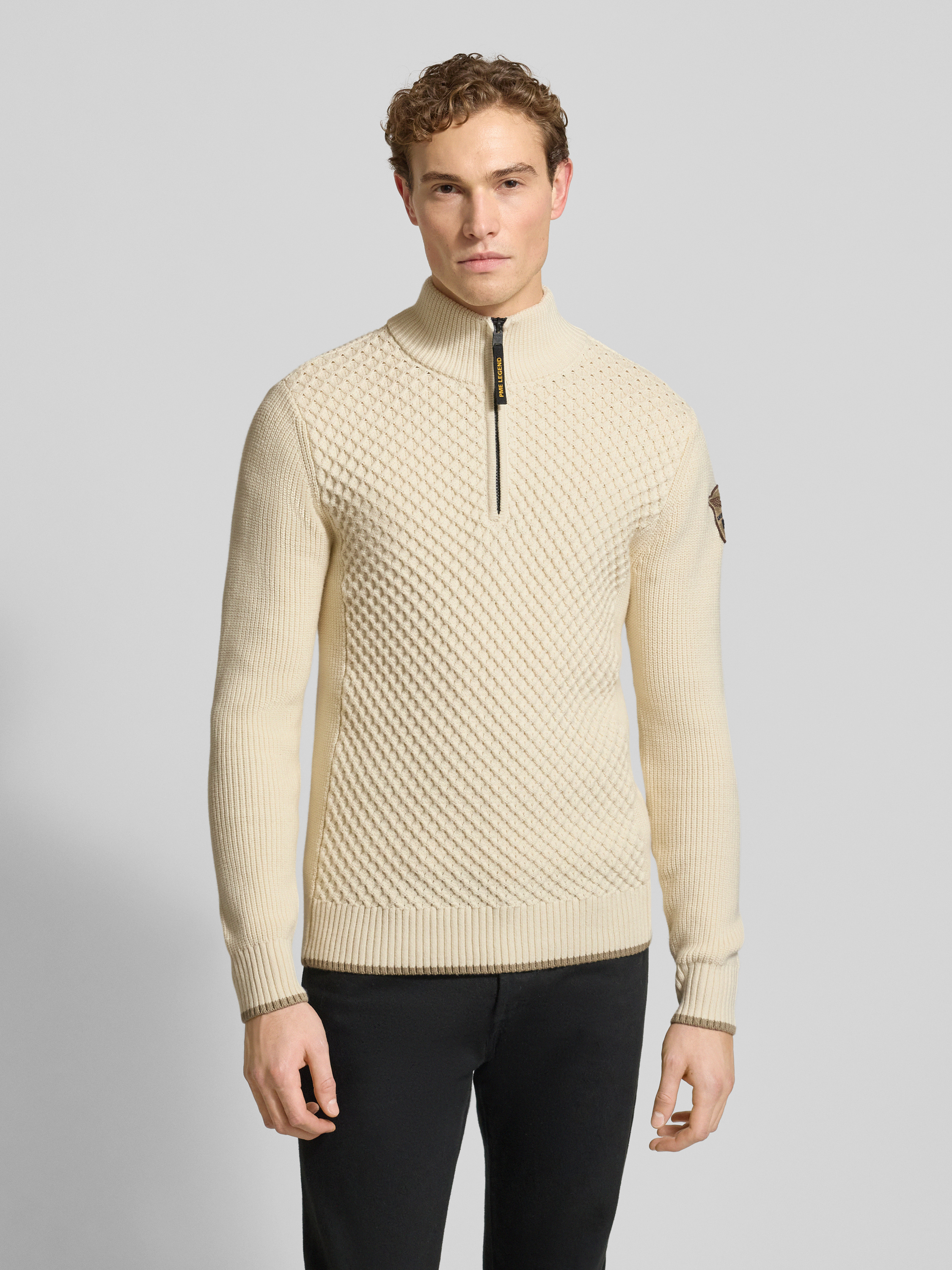 PME LegendStrickpullover mit gerippten Abschlüssen in offwhite