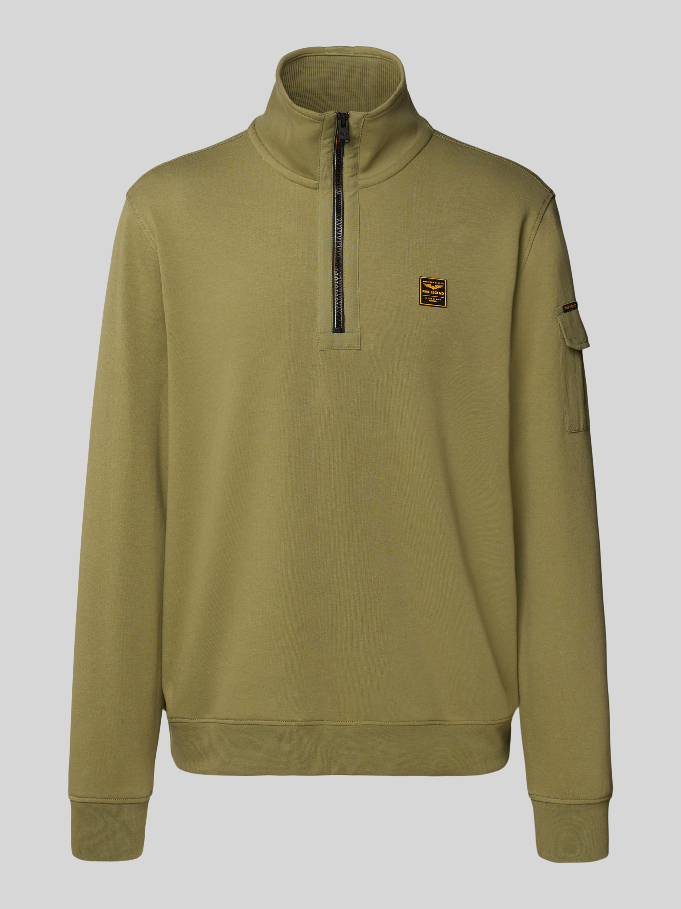 PME LegendSweatshirt mit Troyer-Kragen und Label-Detail in oliv