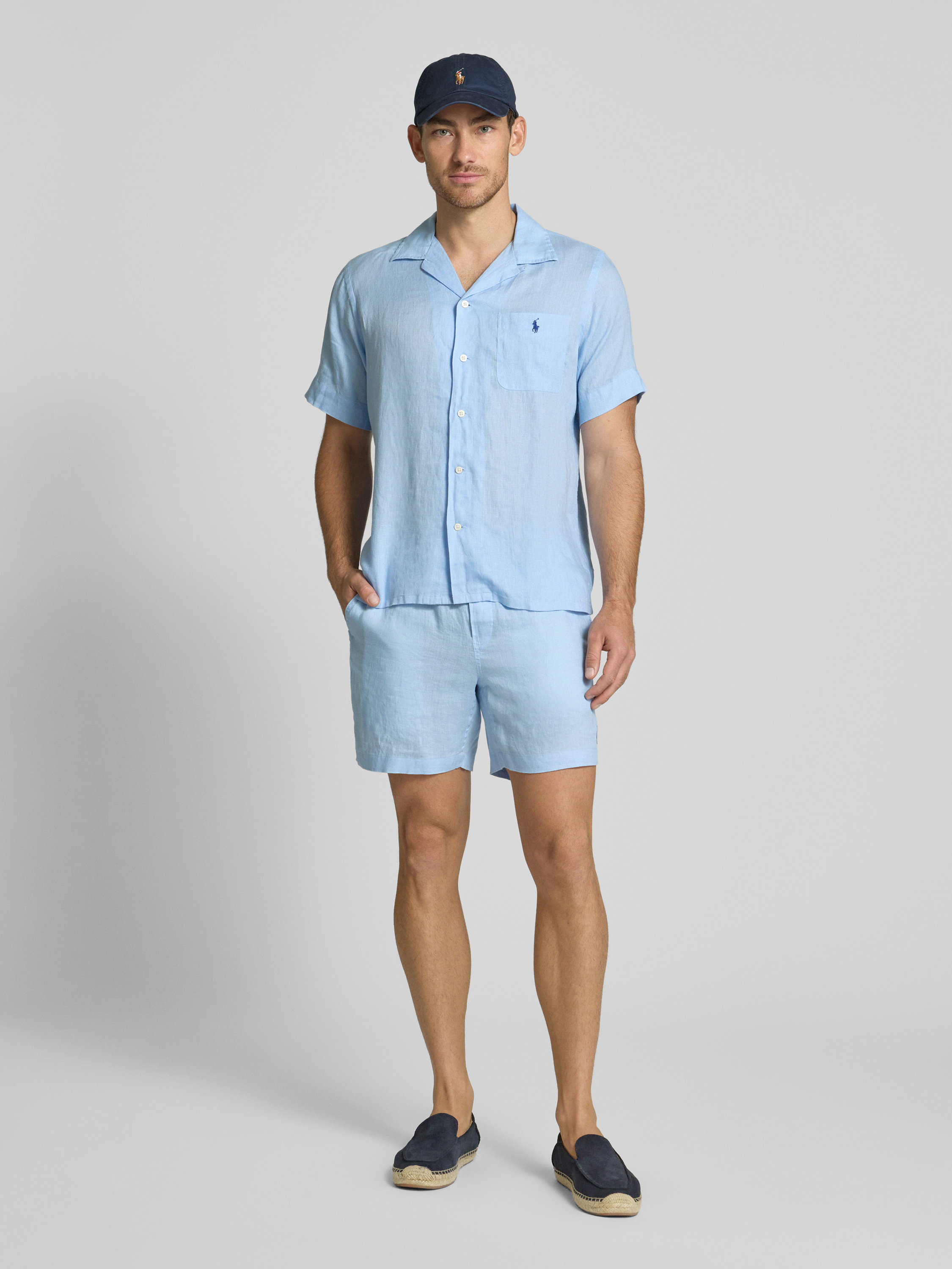 Polo Ralph LaurenCustom Fit Leinenhemd mit Resortkragen in hellblau