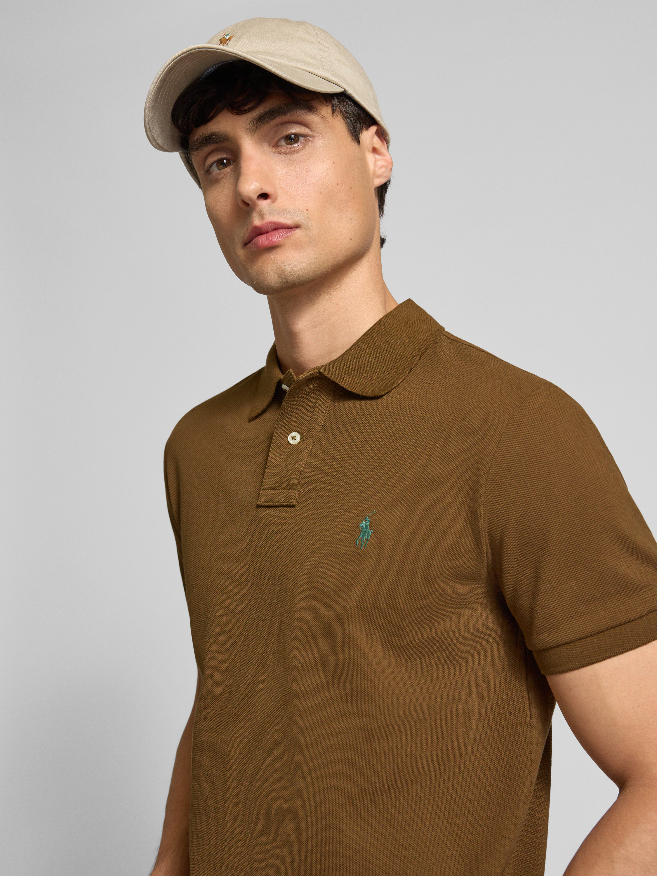 Polo Ralph LaurenCustom Slim Fit Poloshirt mit Label-Stitching in mittelbraun