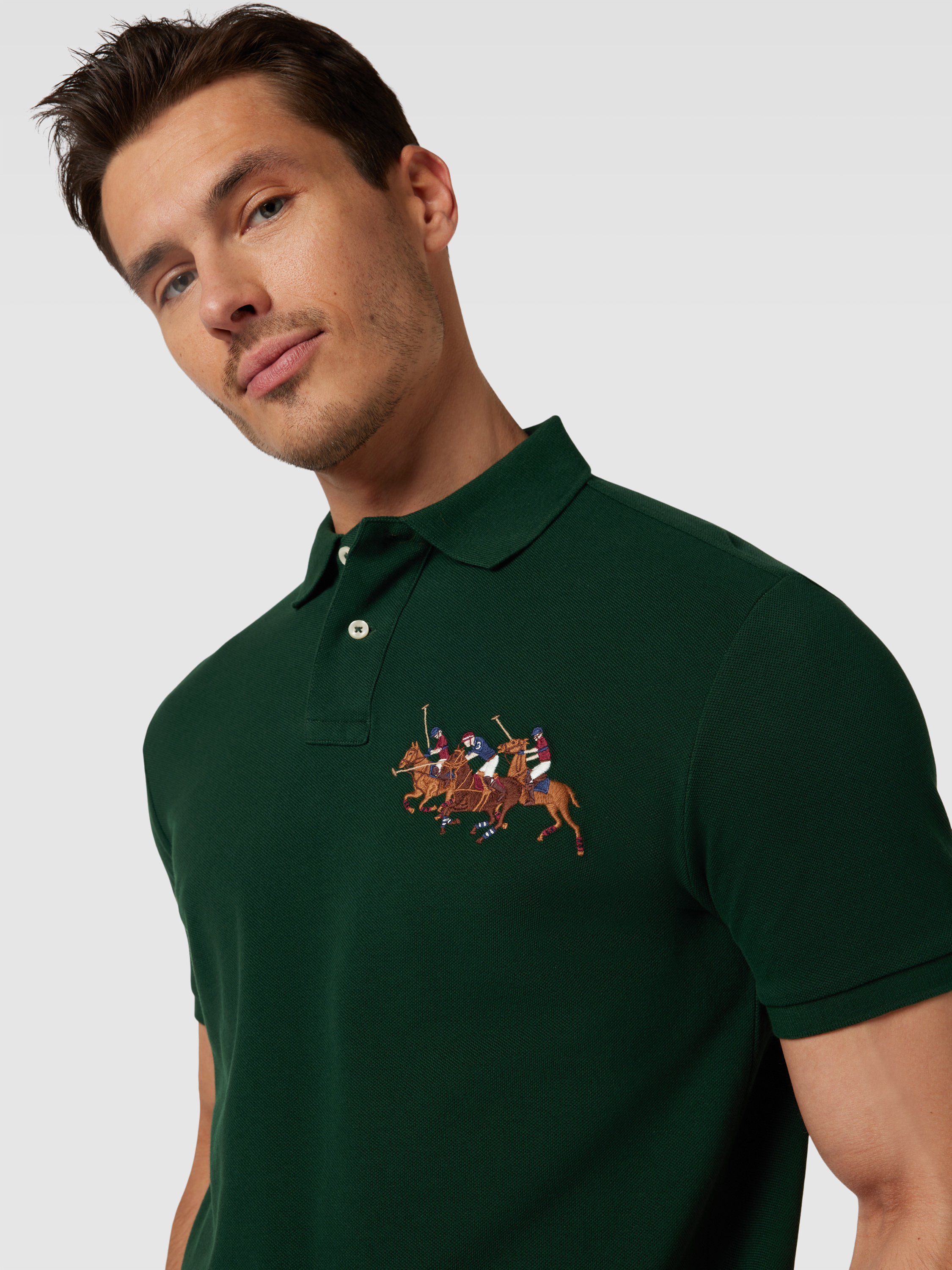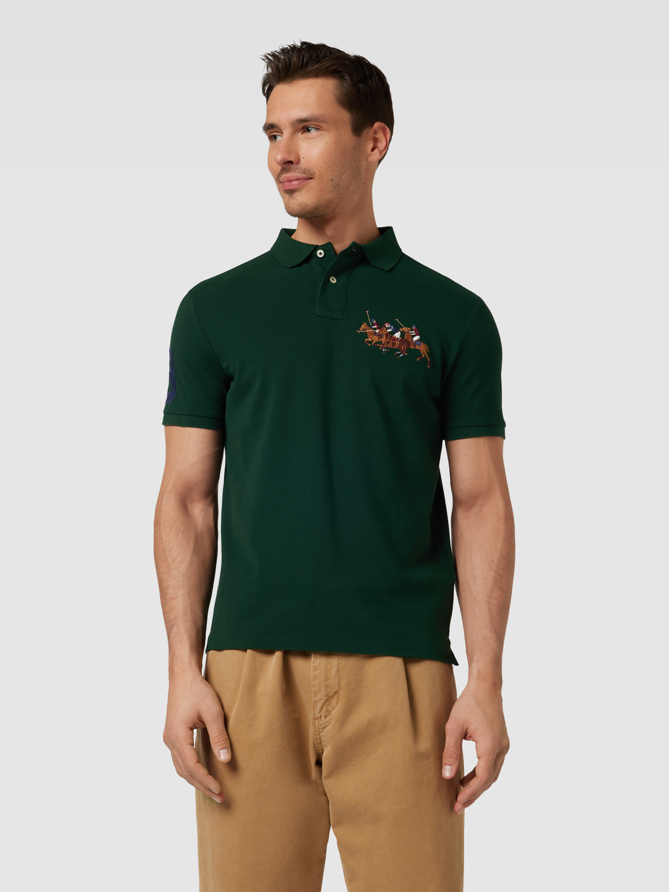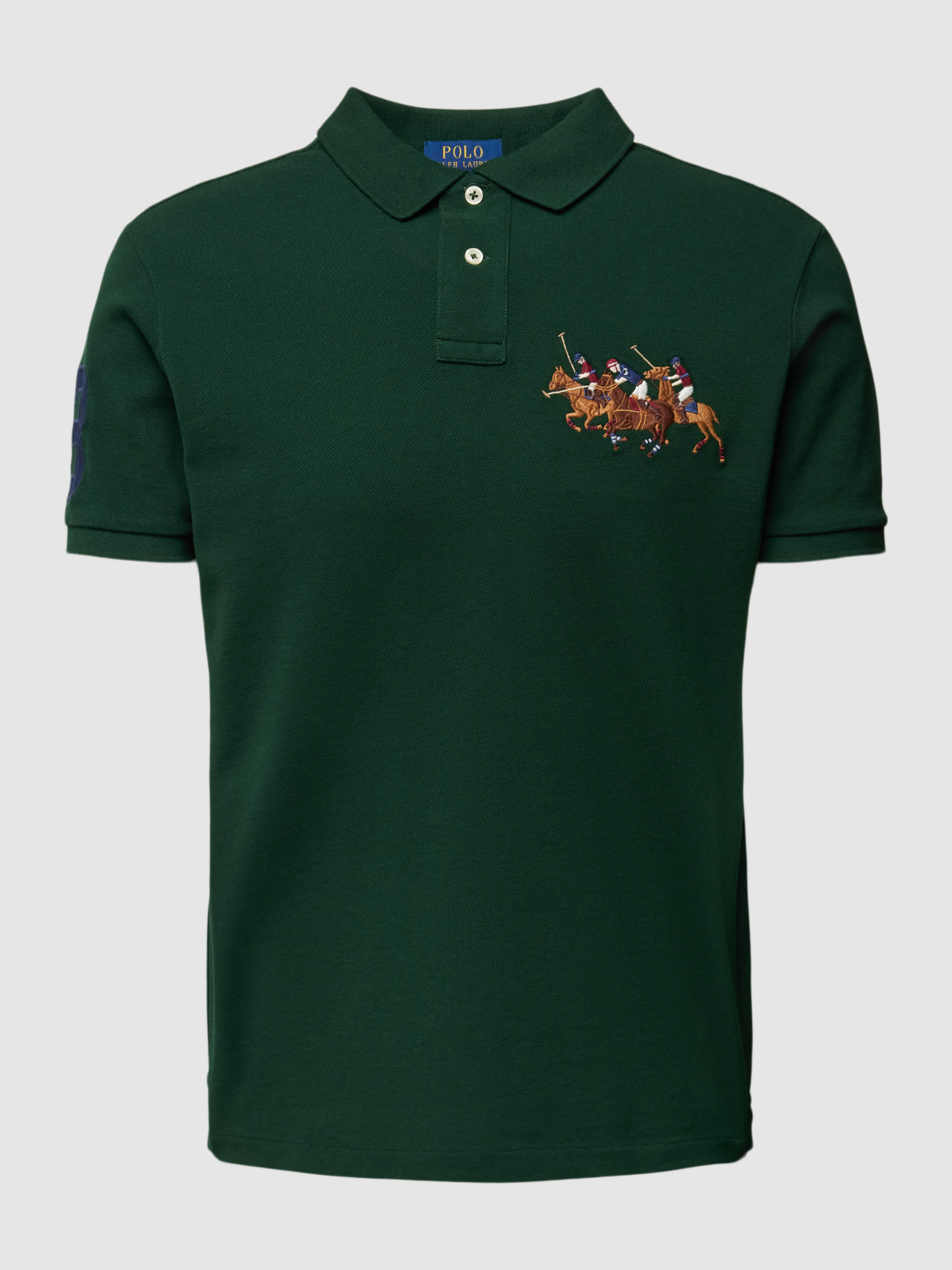 Polo Ralph LaurenCustom Slim Fit Poloshirt mit Motiv-Stitching in dunkelgruen