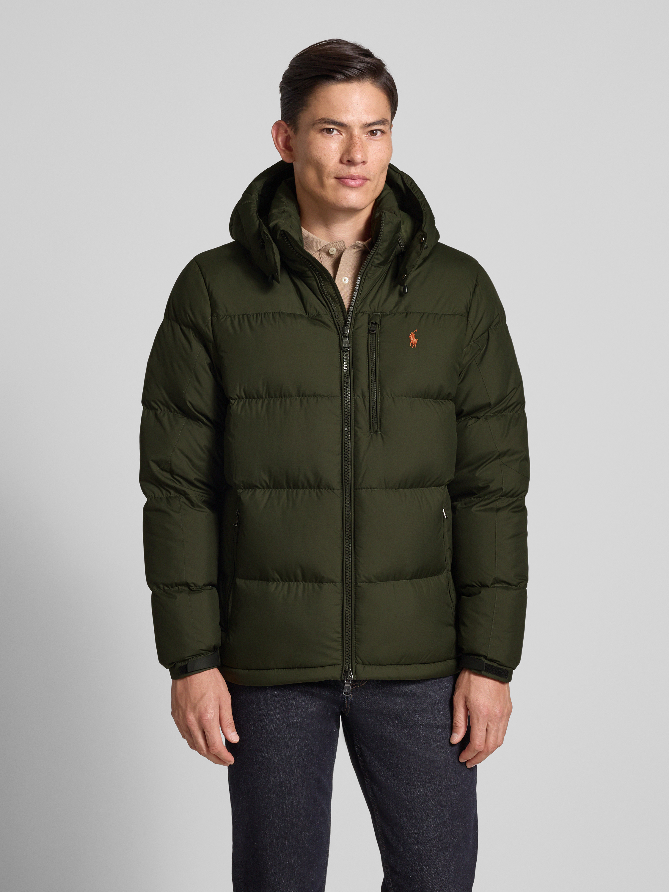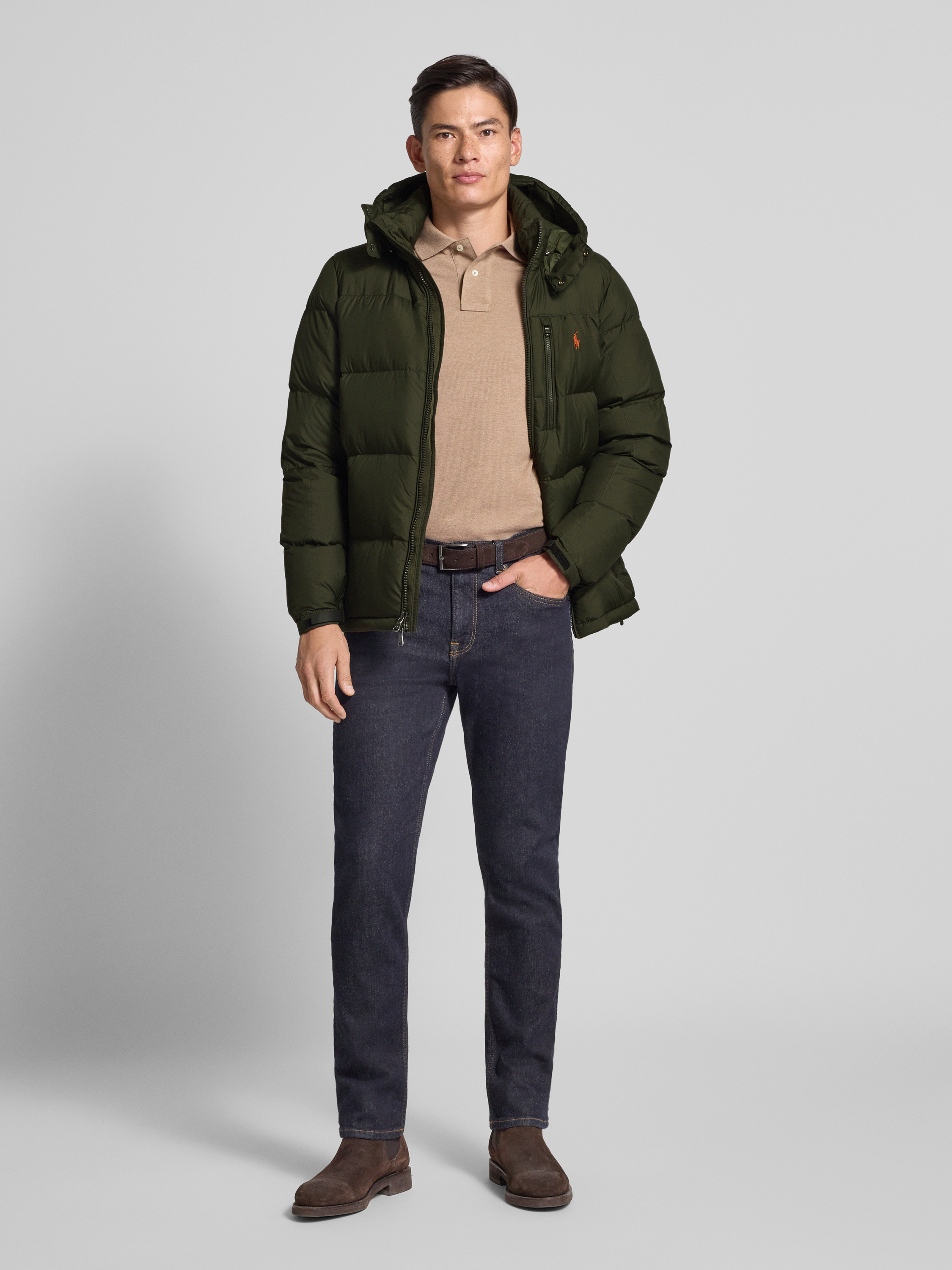Die Herrenjacke von Polo Ralph Lauren fällt durch die Daunen-Feder-Füllung angenehm leicht aus und sorgt für wohlige Wärme an kühlen Tagen. Der gerade Schnitt ermöglicht viel Bewegungsfreiheit, während die Kapuze mit Tunnelzug zusätzlichen Schutz bietet. Dezentes Logo-Stitching unterstreicht den sportiven Stil.