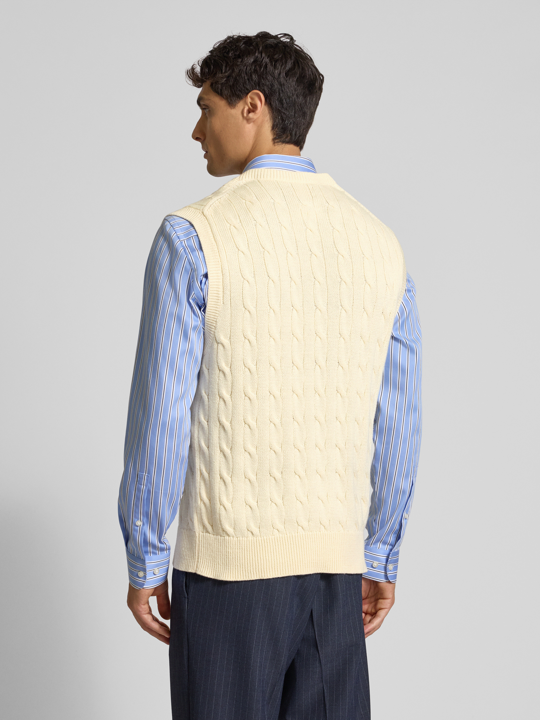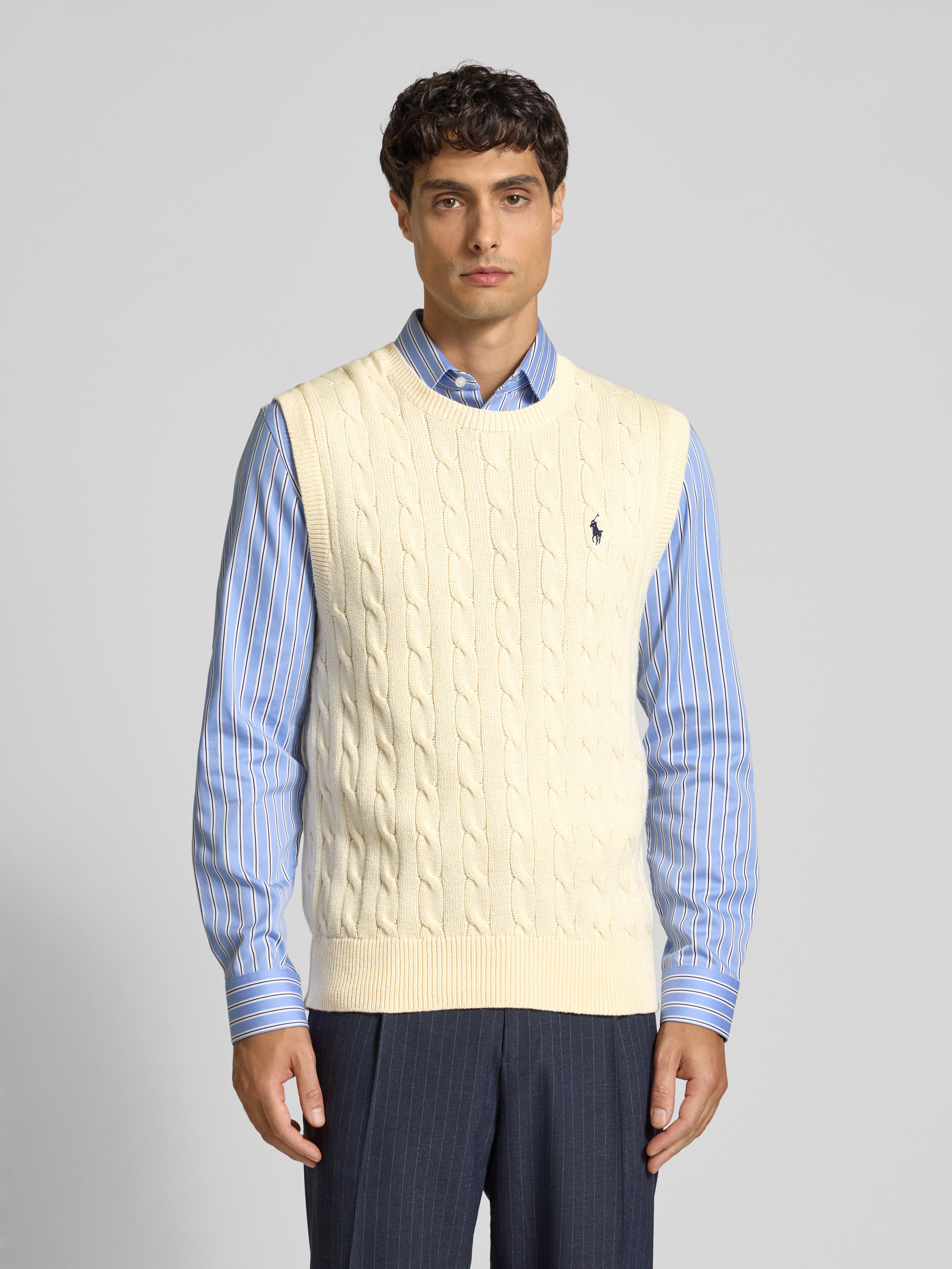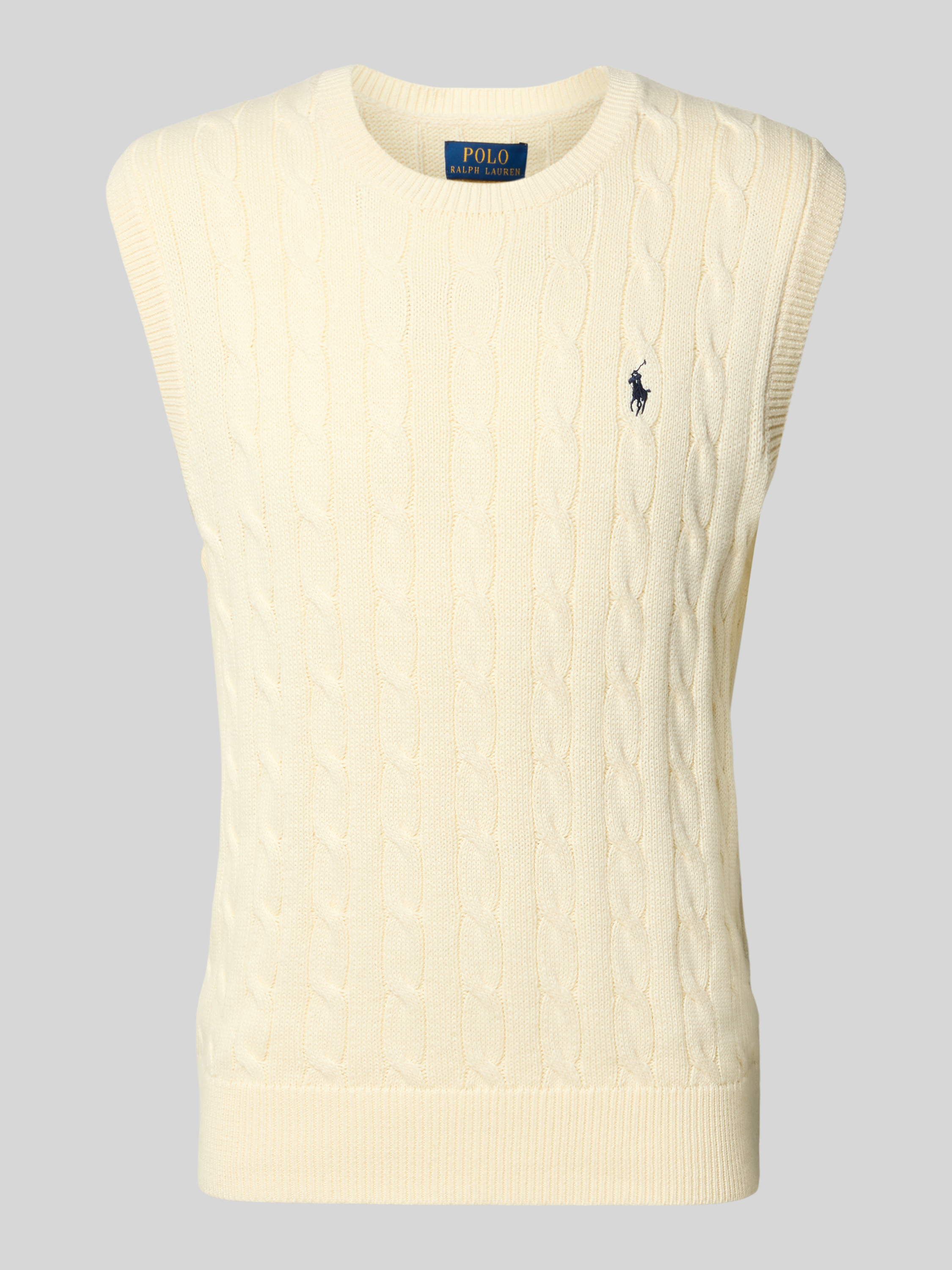 Der Pullunder von Polo Ralph Lauren vereint klassischen Stil mit moderner Eleganz. Gefertigt aus reiner Baumwolle, schmiegt er sich in Slim Fit angenehm an den Körper an. Das Zopfmuster und das dezente Label-Stitching verleihen dem Kleidungsstück eine besondere Note. Der Rundhalsausschnitt rundet das Design harmonisch ab.