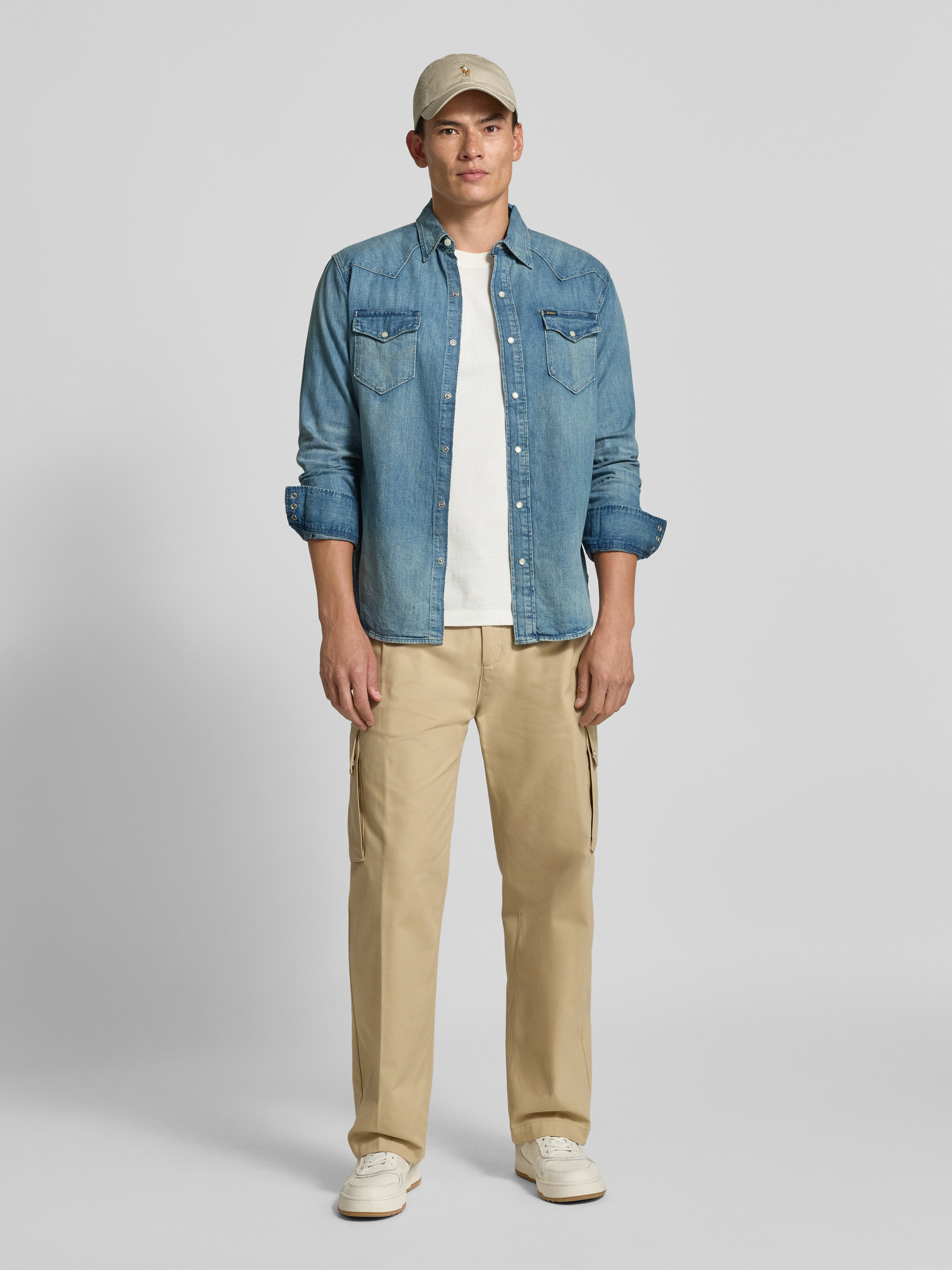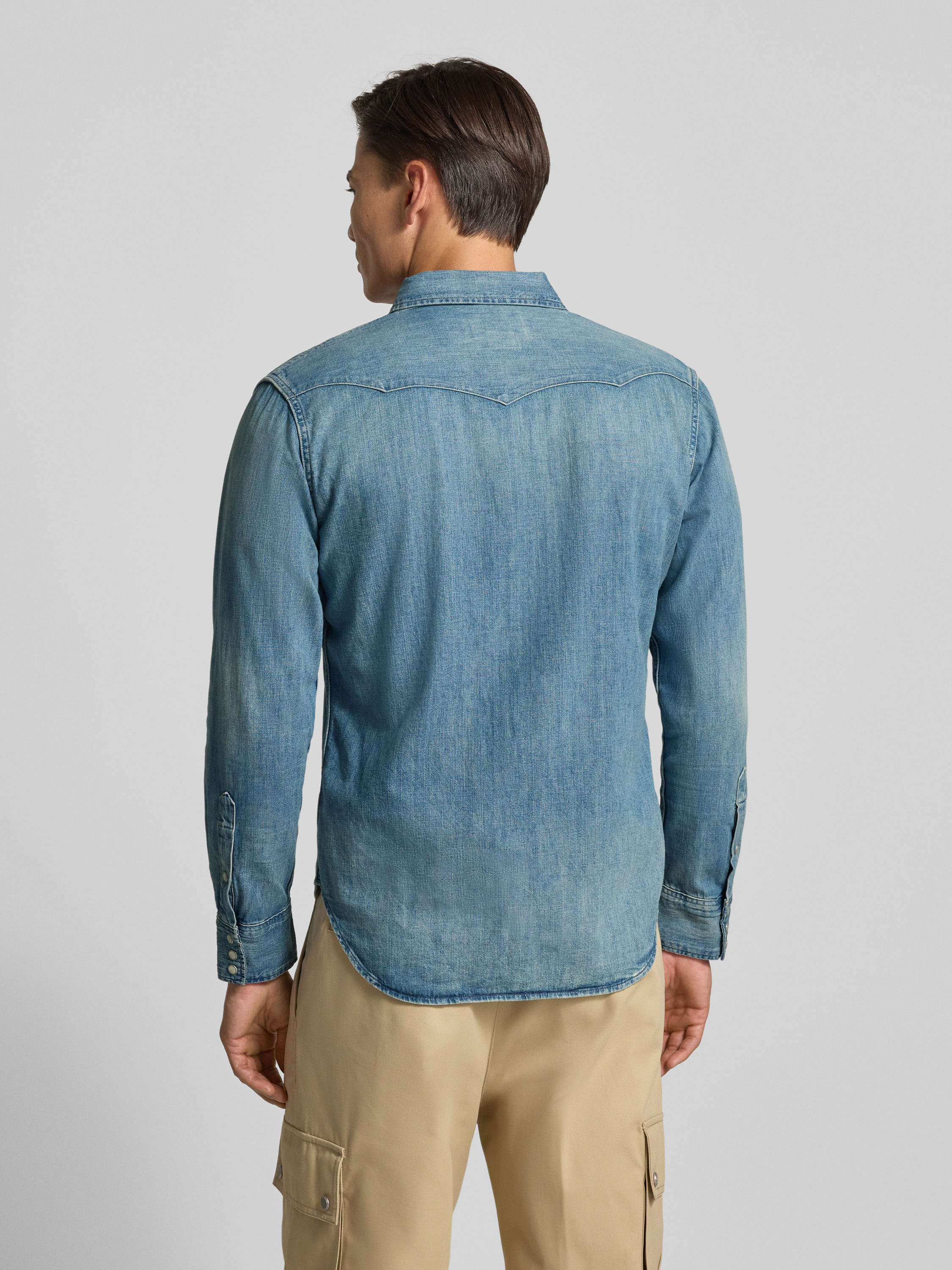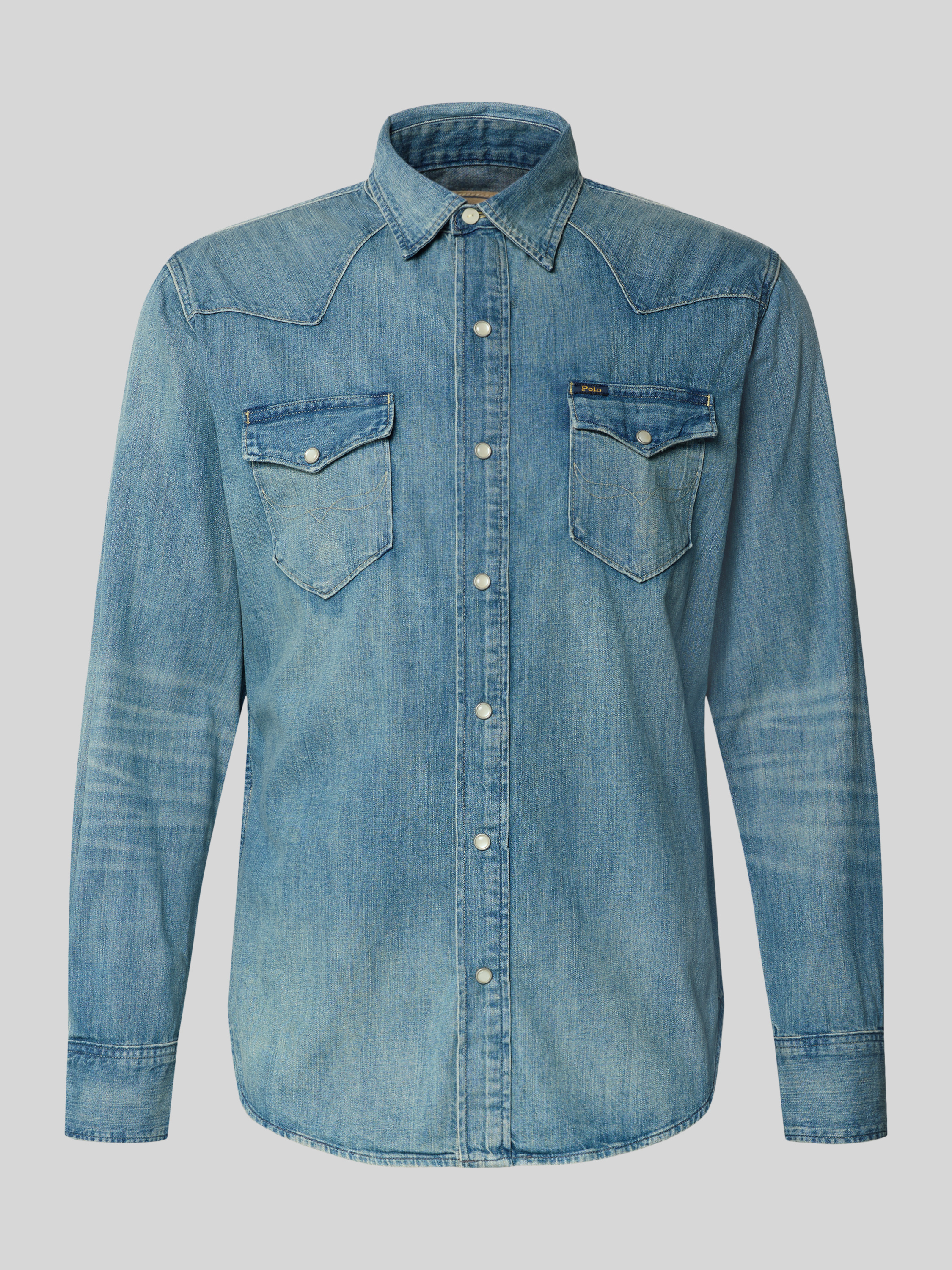 Das Herren Jeanshemd von Polo Ralph Lauren im Regular Fit Modell 'Icon' besteht aus reiner Baumwolle und liegt angenehm auf der Haut. Dank Kentkragen und Brusttaschen wirkt das Hemd lässig und vielseitig zugleich. Dezente Ziernähte und das Logo-Patch runden den Look ab.