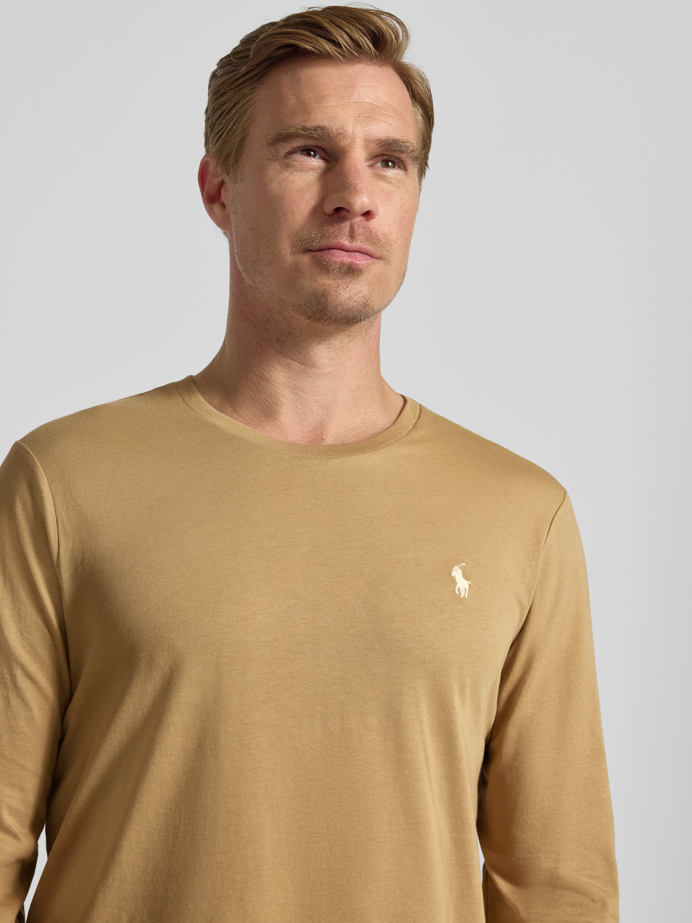 Polo Ralph LaurenRegular Fit Longsleeve mit Logo-Stitching Modell 'Jersey' in beige