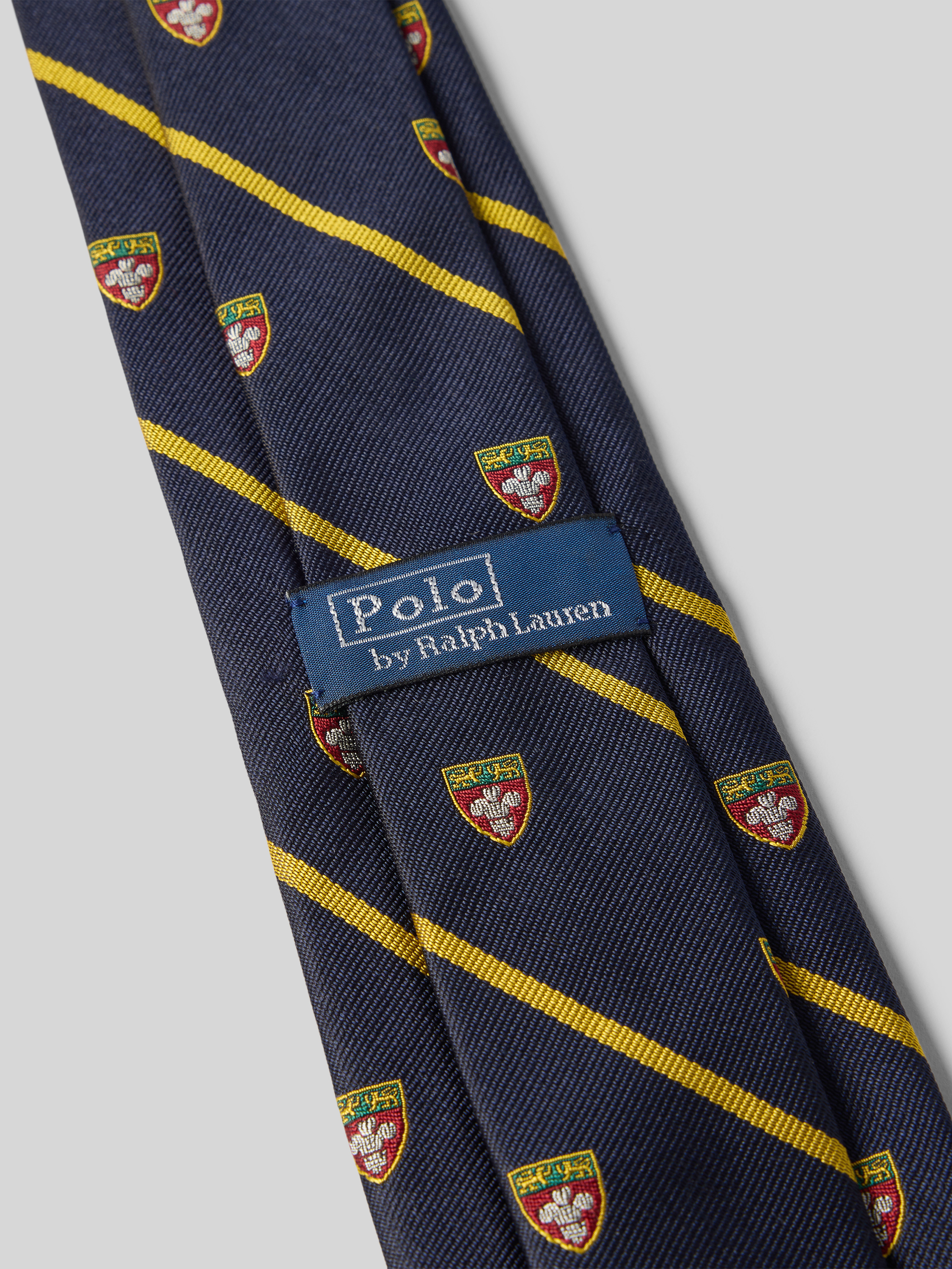 Der Herr trägt mit der Seidenkrawatte von Polo Ralph Lauren ein Accessoire, das durch reine Seide einen angenehmen Griff vermittelt. Die klassische Form sorgt für vielseitige Kombinationsmöglichkeiten im Alltag. Ein dezentes Label-Detail auf der Rückseite rundet das Design harmonisch ab.