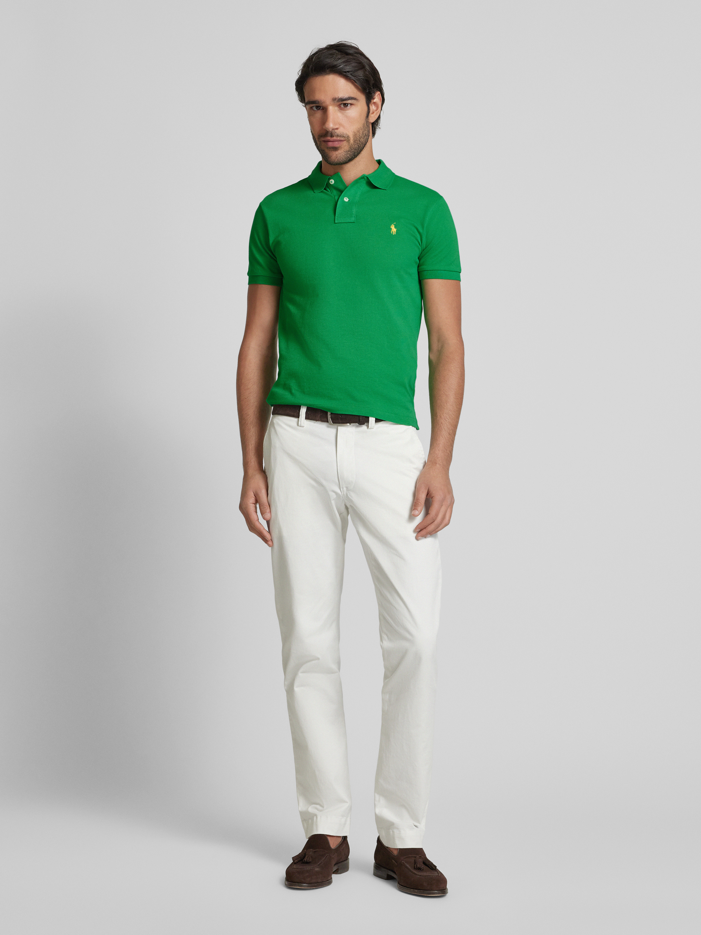 Das Herren Slim Fit Poloshirt von Polo Ralph Lauren aus reiner Baumwolle liegt angenehm am Körper und sorgt durch seinen schmalen Schnitt für eine moderne Silhouette. Ein Polokragen sowie das dezente Label-Stitching runden das klassische Design ab. Die gerippten Ärmelabschlüsse unterstützen eine gepflegte Optik.