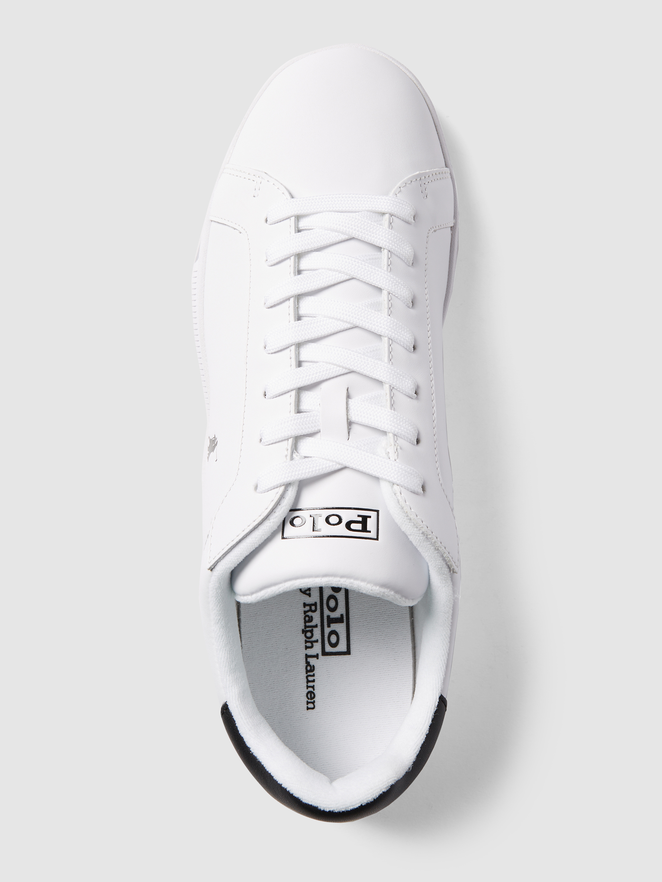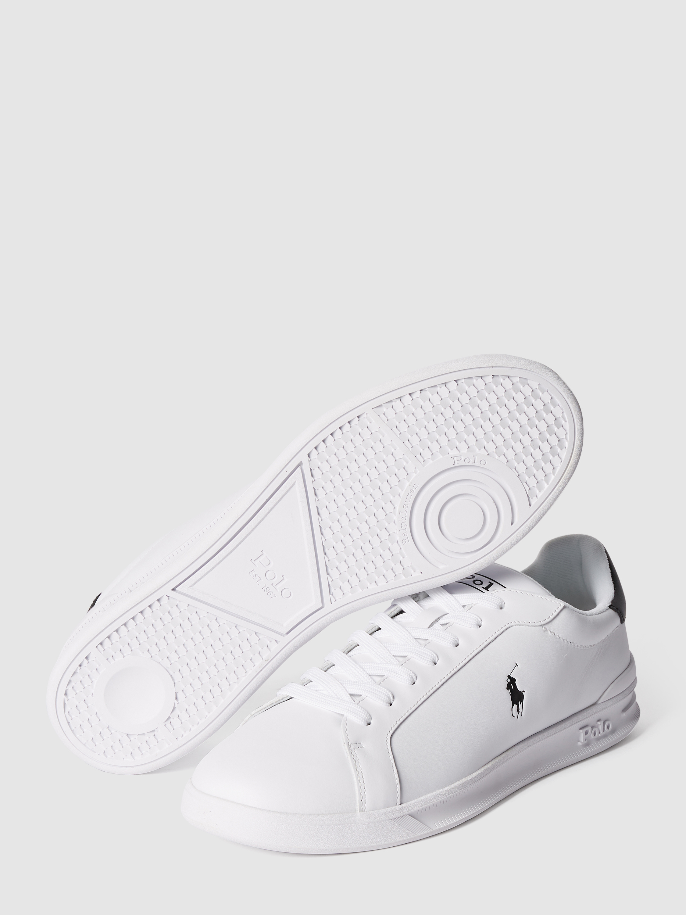Die Sneaker von Polo Ralph Lauren sind aus echtem Leder gefertigt. Sie zeigen sich mit Label-Print und Kontrastbesatz sowie strukturierter Sohle und Logo-Schriftzug.