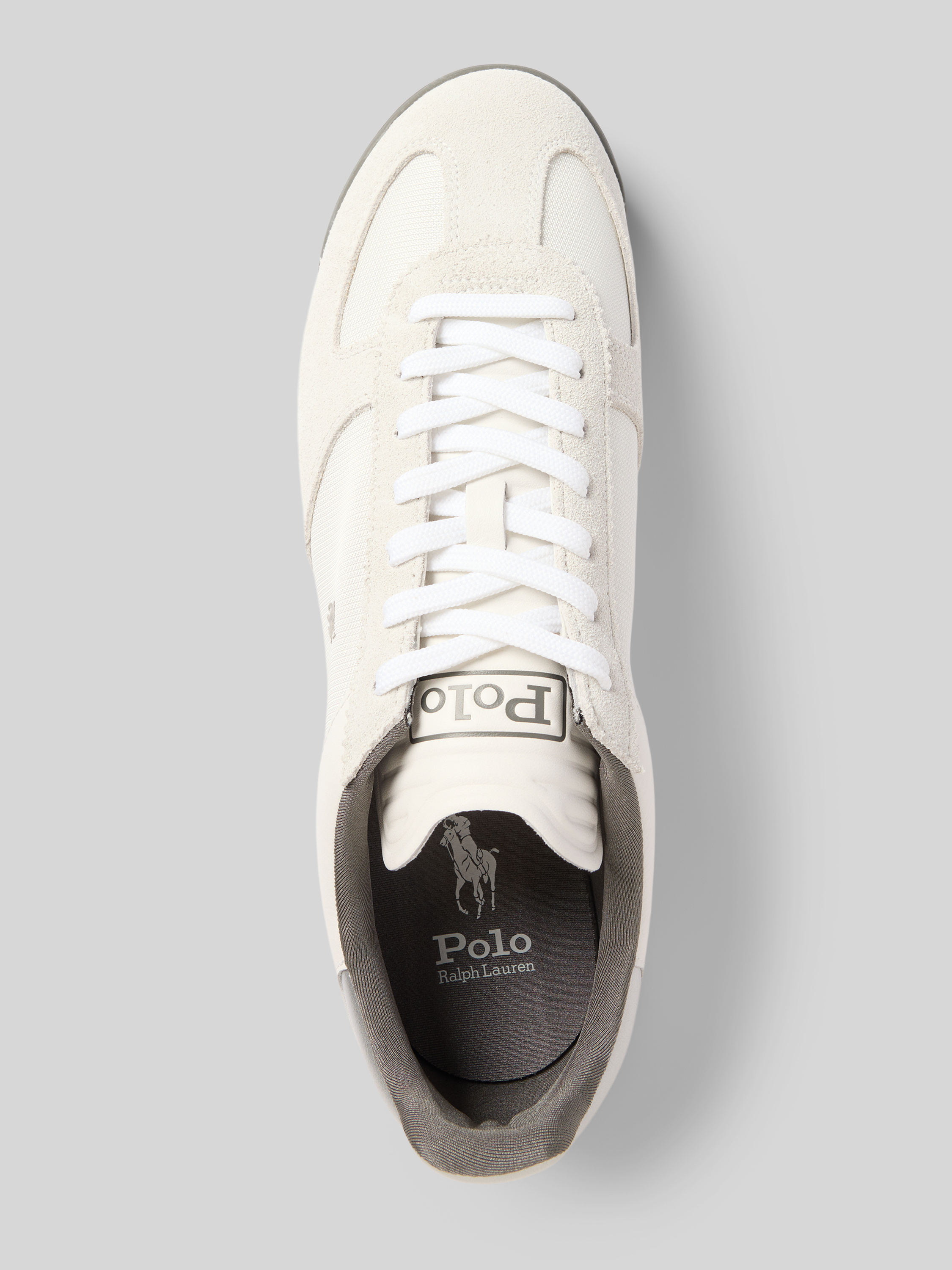 Der Herrensneaker von Polo Ralph Lauren kombiniert beschichteten Leder-Mix mit einer abgerundeten Spitze und einer strukturierten Sohle. Durch den klassischen Schnitt eignet sich das Modell für entspannte Alltagslooks ebenso wie für längere Strecken. Dezente Label-Details runden das Gesamtbild stimmig ab.