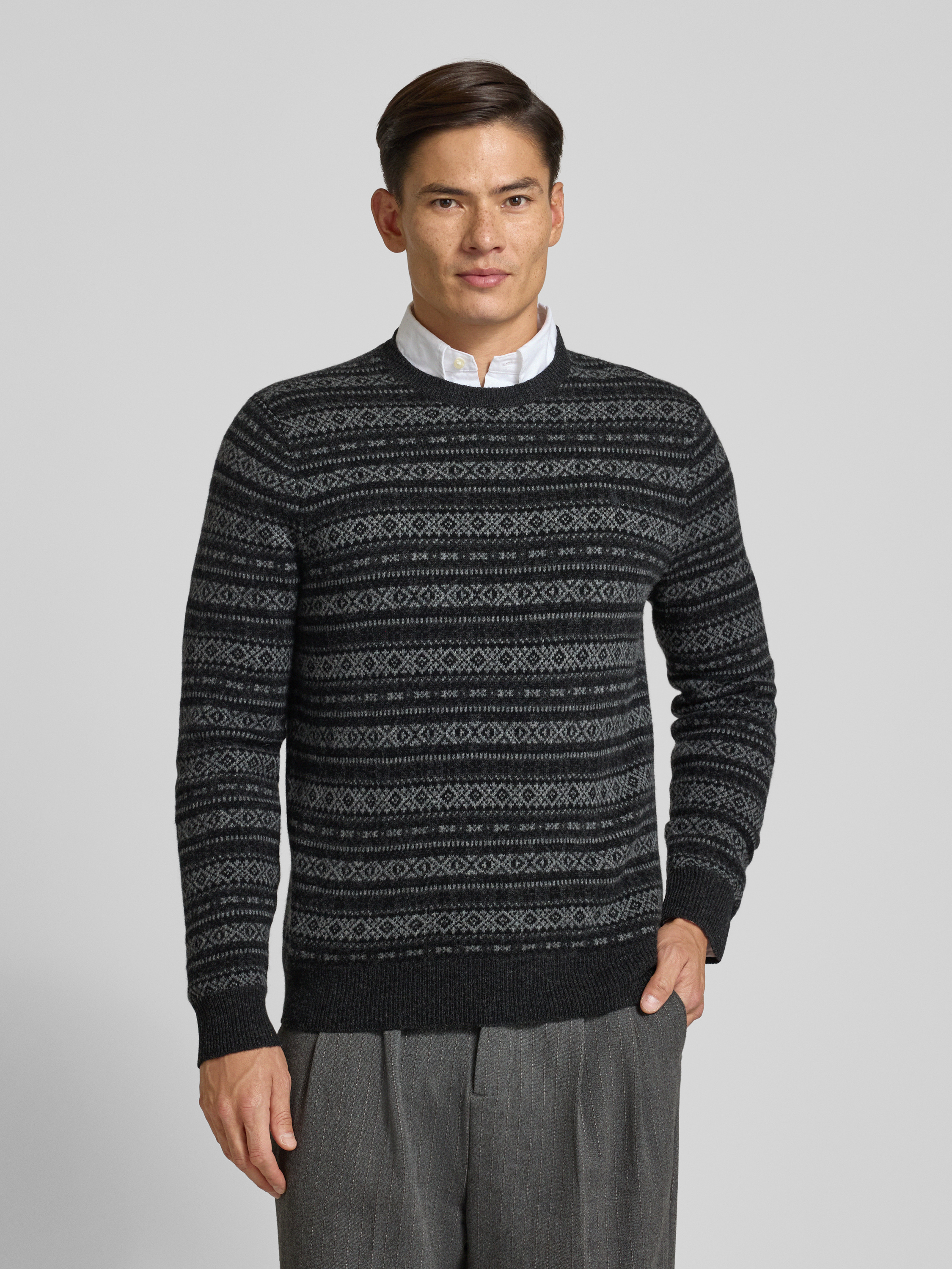 Polo Ralph LaurenStrickpullover mit gerippten Abschlüssen in anthrazit