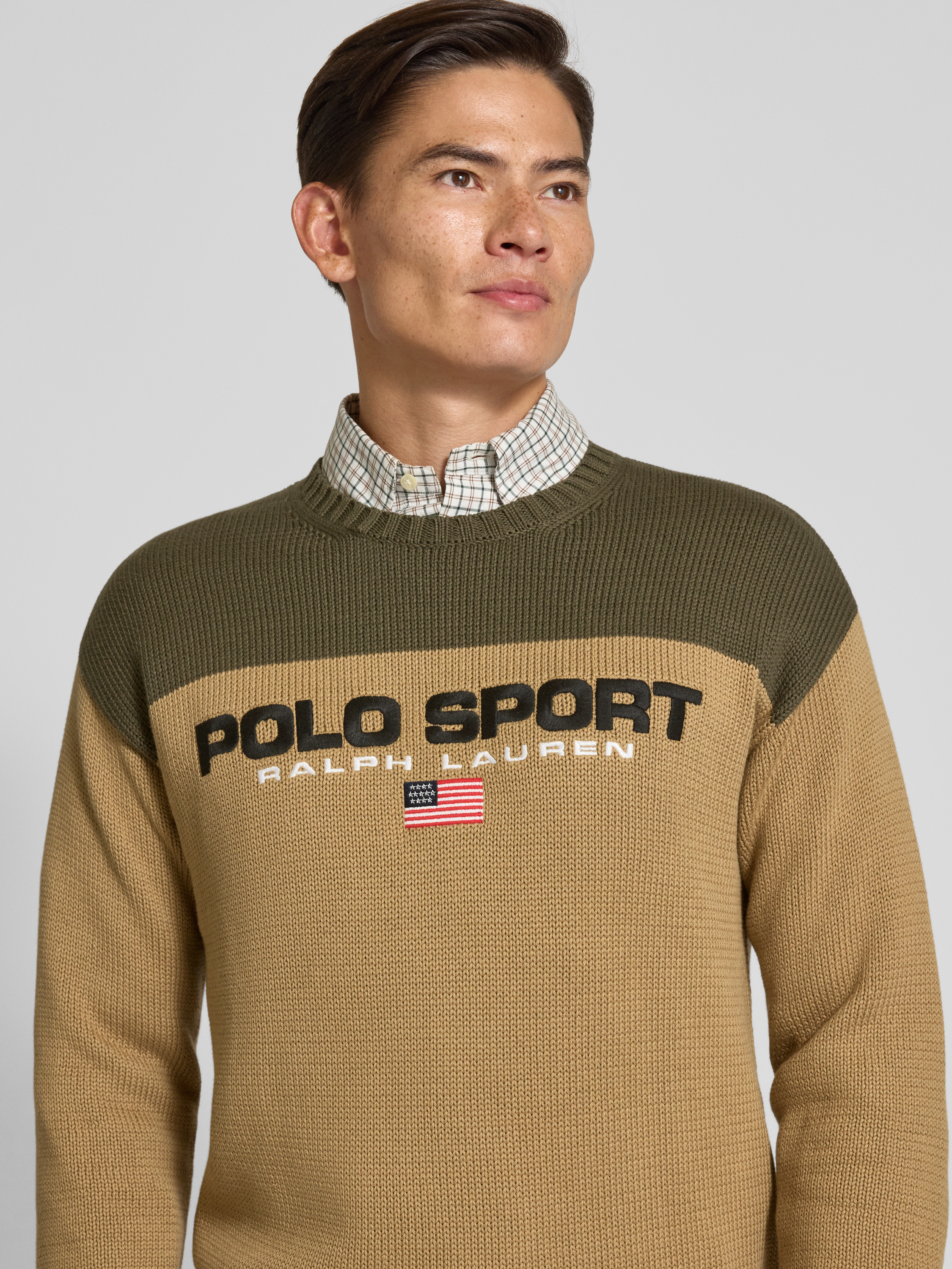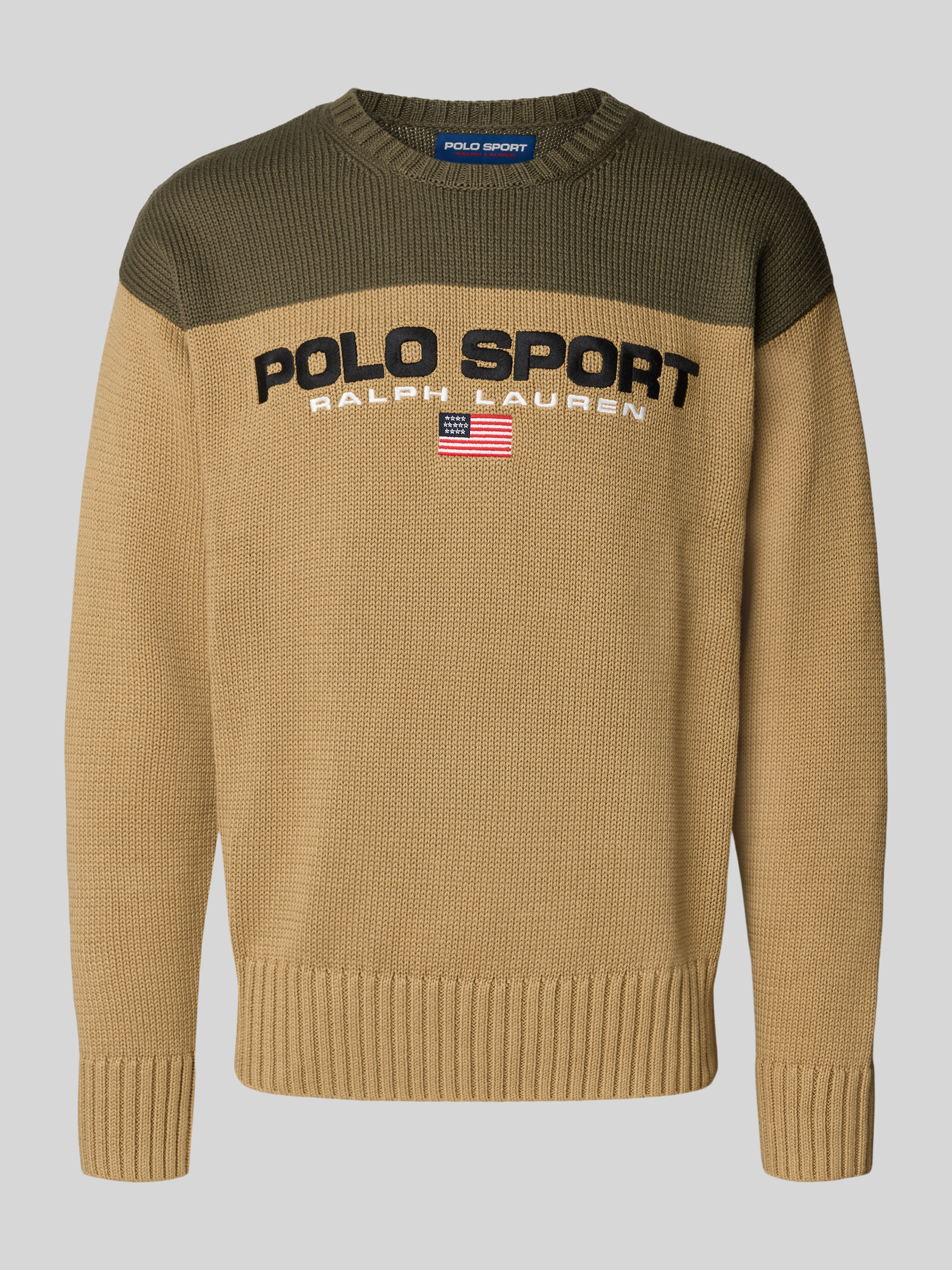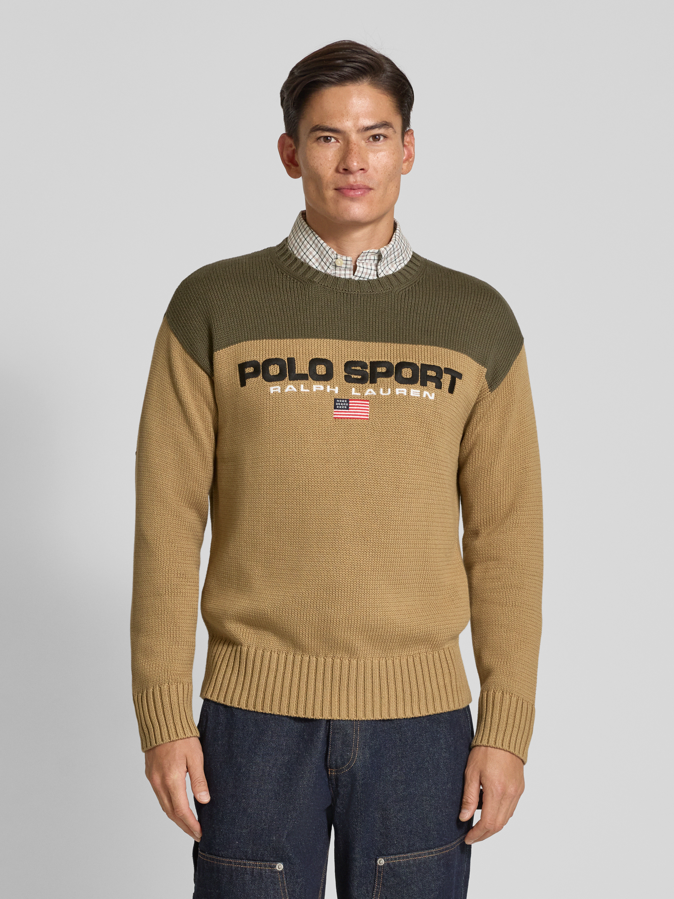 Polo Ralph LaurenStrickpullover mit Label-Stitching und Rundhalsausschnitt in khaki
