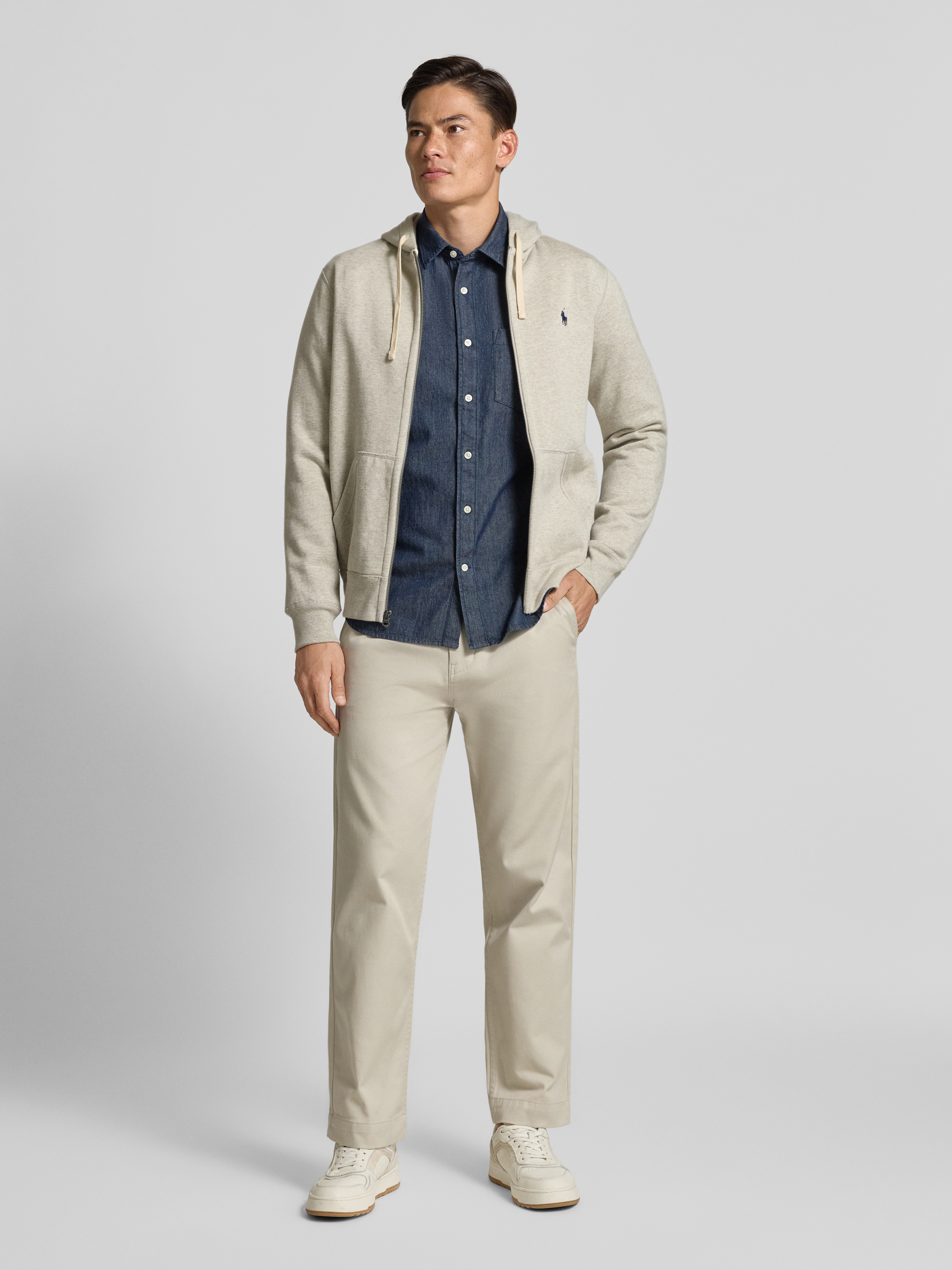 Die Herren Sweatjacke von Polo Ralph Lauren zeigt sich im Regular Fit und kombiniert einen weichen Baumwoll-Mix mit einer Kapuze samt Tunnelzug. Eingrifftaschen bieten Raum für Kleinigkeiten, während das dezente Label-Stitching einen sportiven Akzent setzt. So lässt sich vielseitiger Komfort im Alltag nutzen.