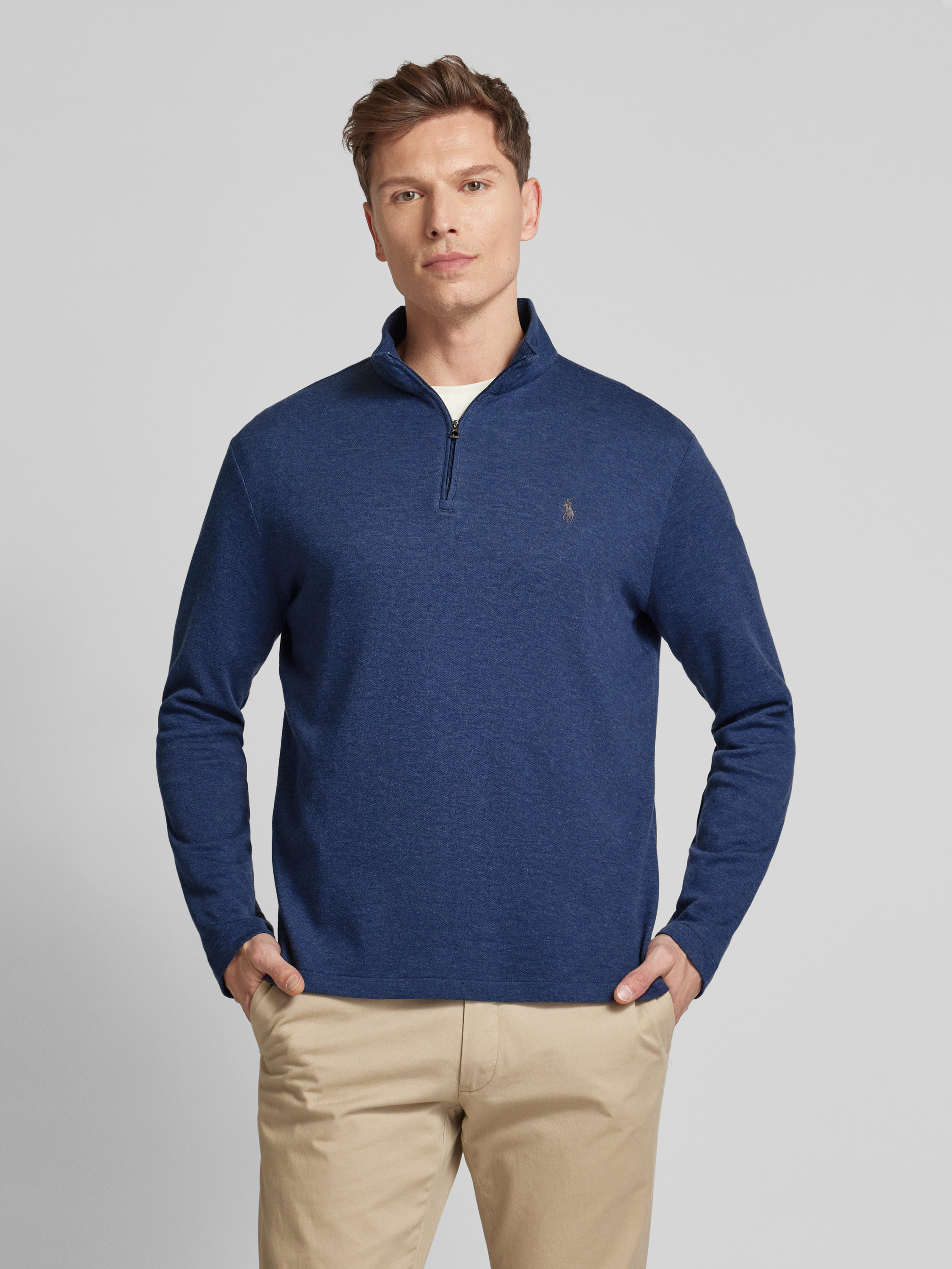 Das Herren Sweatshirt von Polo Ralph Lauren vereint Komfort mit stilvollen Details. Der bequeme Regular Fit und der hochwertige Baumwoll-Mix sorgen für ein angenehmes Tragegefühl, während der Stehkragen mit kurzem Reißverschluss praktische Vielseitigkeit bietet. Das dezente Label-Stitching verleiht dem Modell eine raffinierte Note.