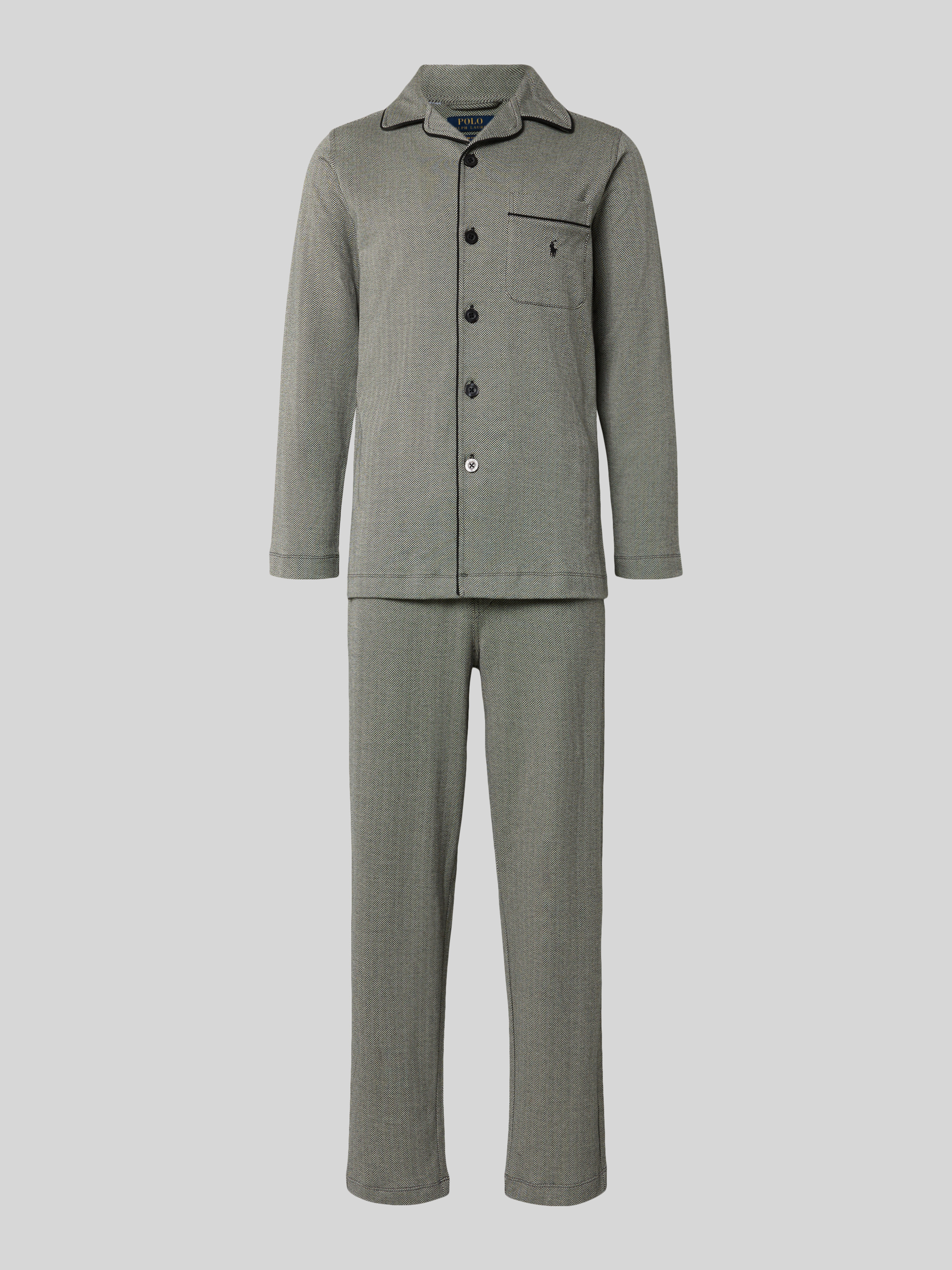 Der Herren Pyjama von Polo Ralph Lauren Underwear aus weichem Flanell legt sich angenehm auf die Haut und sorgt für ein behagliches Tragegefühl. Das Pyjama-Oberteil mit Umlegekragen und Label-Stitching bringt eine klassische Note ins Schlafzimmer, während die Brusttasche praktisch bleibt. Dank Regular Fit und elastischem Bund an der Hose lässt sich Bewegungsfreiheit genießen, ohne auf Komfort zu verzichten.
