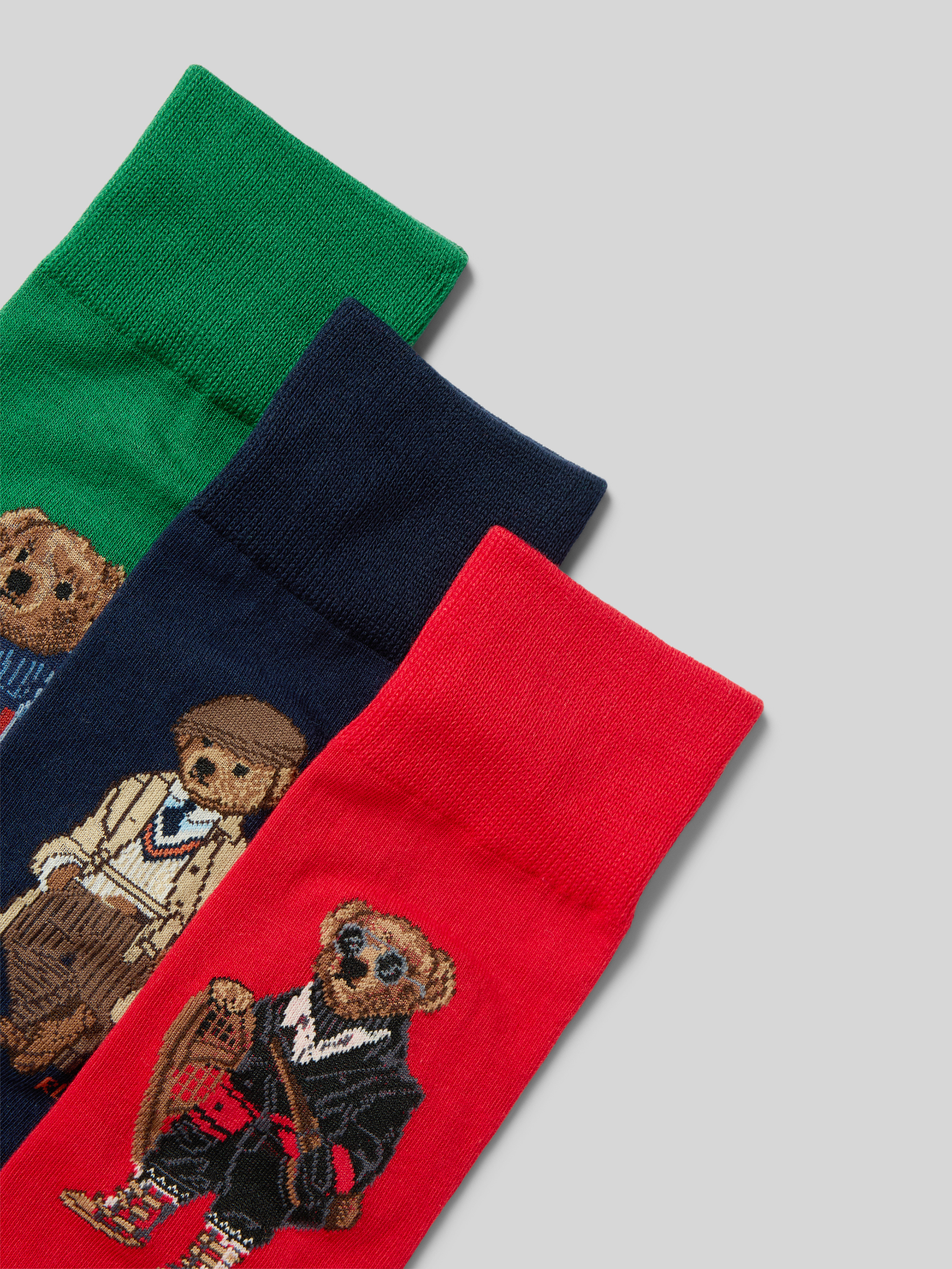 Die Herren Socken von Polo Ralph Lauren Underwear liegen dank körpernahem Schnitt angenehm an und schenken ein komfortables Tragegefühl im Alltag. Durch den Baumwoll-Mix mit Stretch-Anteil schmiegen sie sich flexibel an den Fuß. Ein Label-Print setzt dezente Akzente im 3er-Pack.