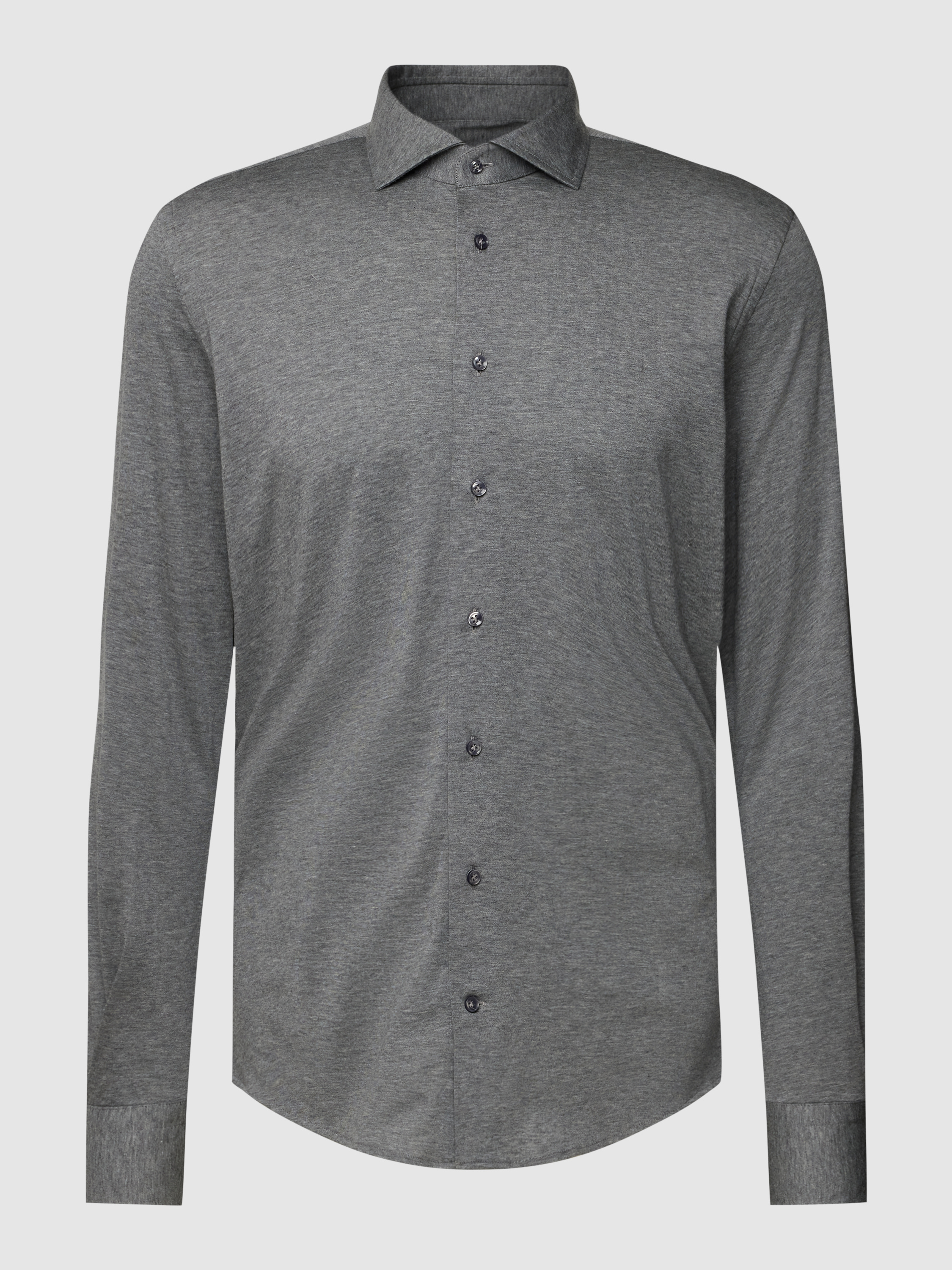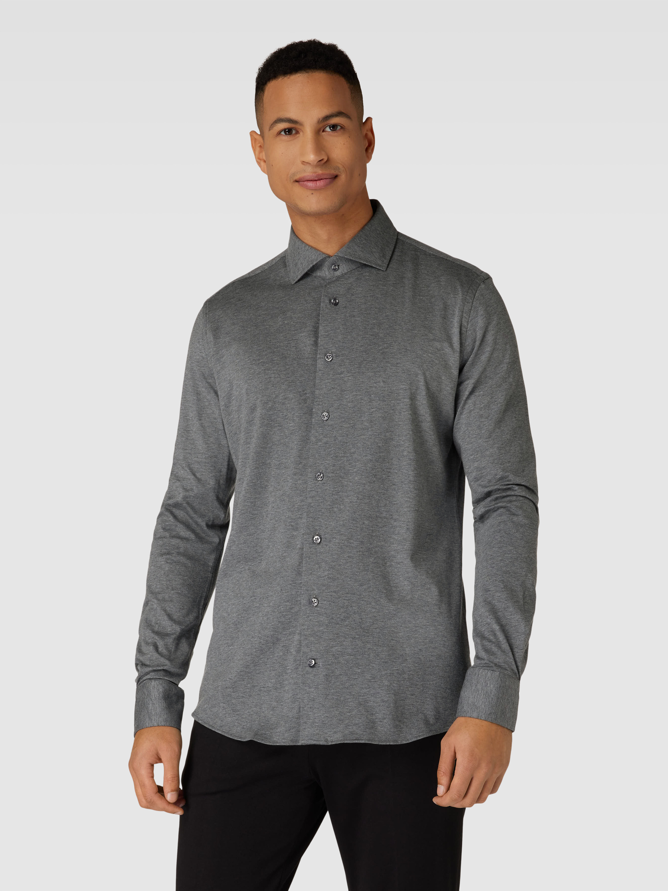 ProfuomoSlim fit Fit Businesshemd aus Baumwollqualität mit Stretch-Anteil in mittelgrau