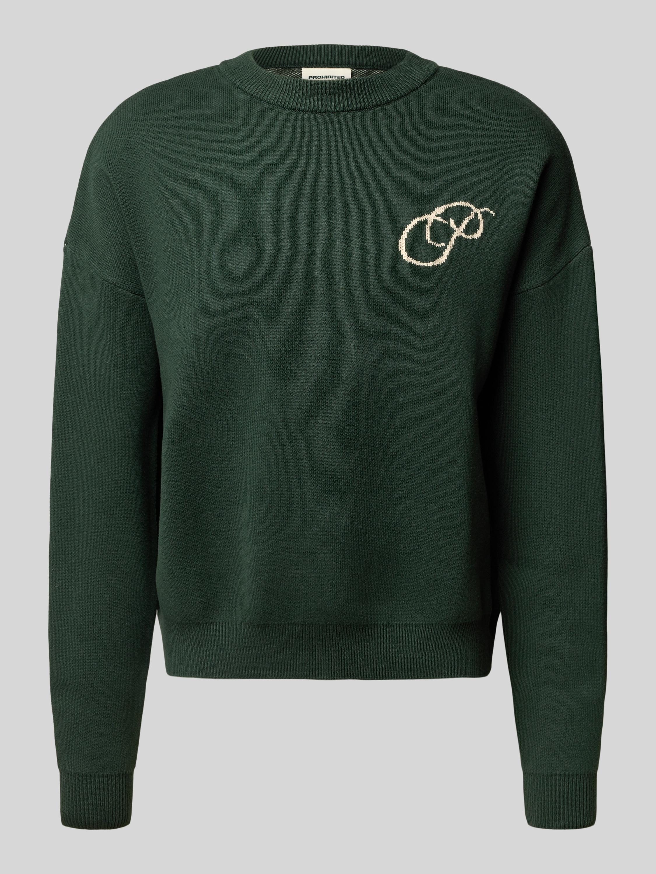 PROHIBITEDOversized Strickpullover mit Label-Print in dunkelgruen