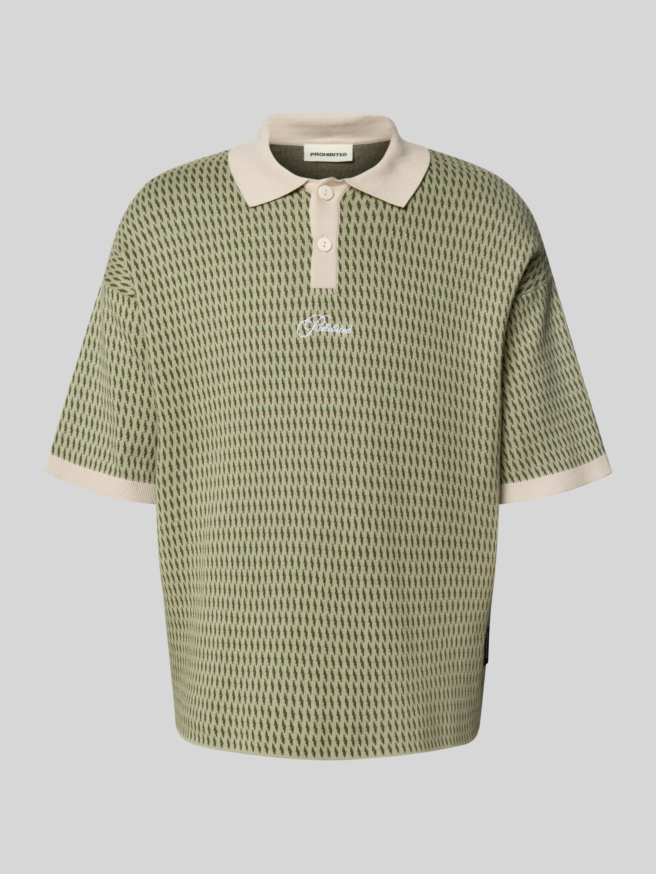 PROHIBITEDRelaxed Fit Strick-Poloshirt mit Label-Stitching in gruen